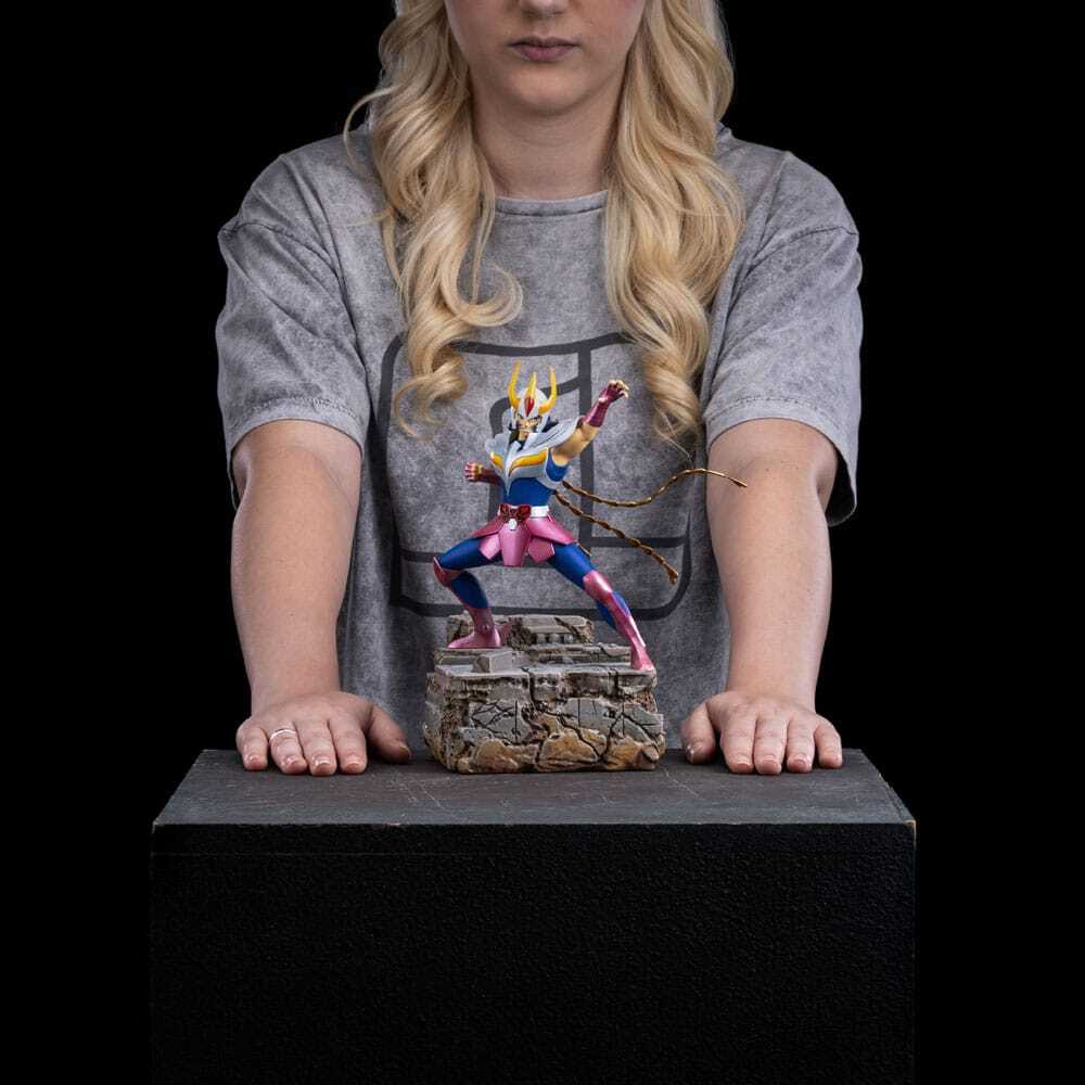 Part of the Saint Seiya Diorama line by Iron Studios, the statue Phoenix Ikki - Saint Seiya - Art Scale 1/10 measurements are 9.1 in (H) x 7 in (W) x 5.5 in (D) – 2.4 lb., which ensures an impressive display of the figure in any environment.