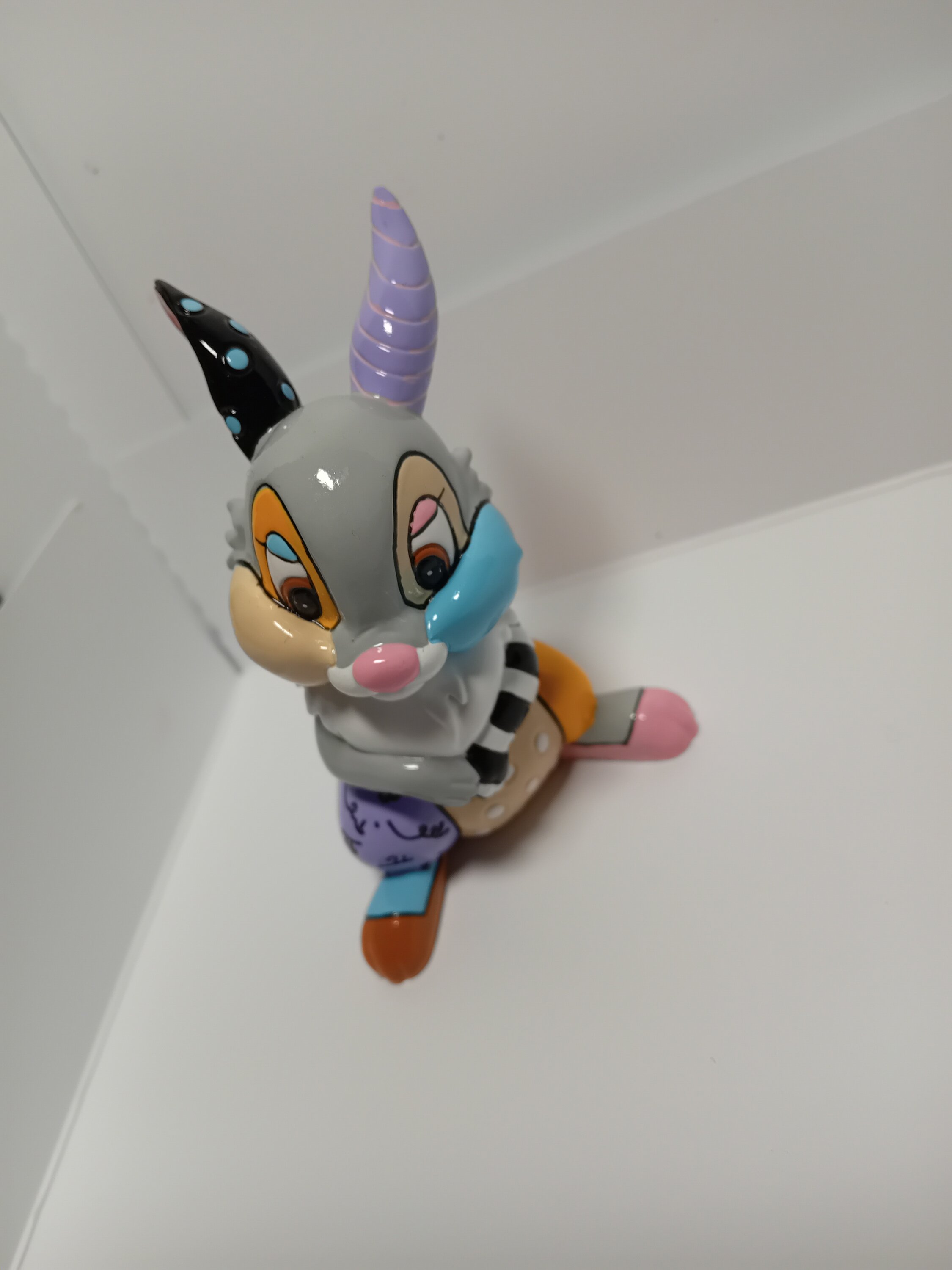 Continuing our collaboration with pop artist Romero Britto, this Mini figurine features Britto's signature patterns that complement Thumper's confident and inquisitive nature. Each hand painted piece is a work of art.