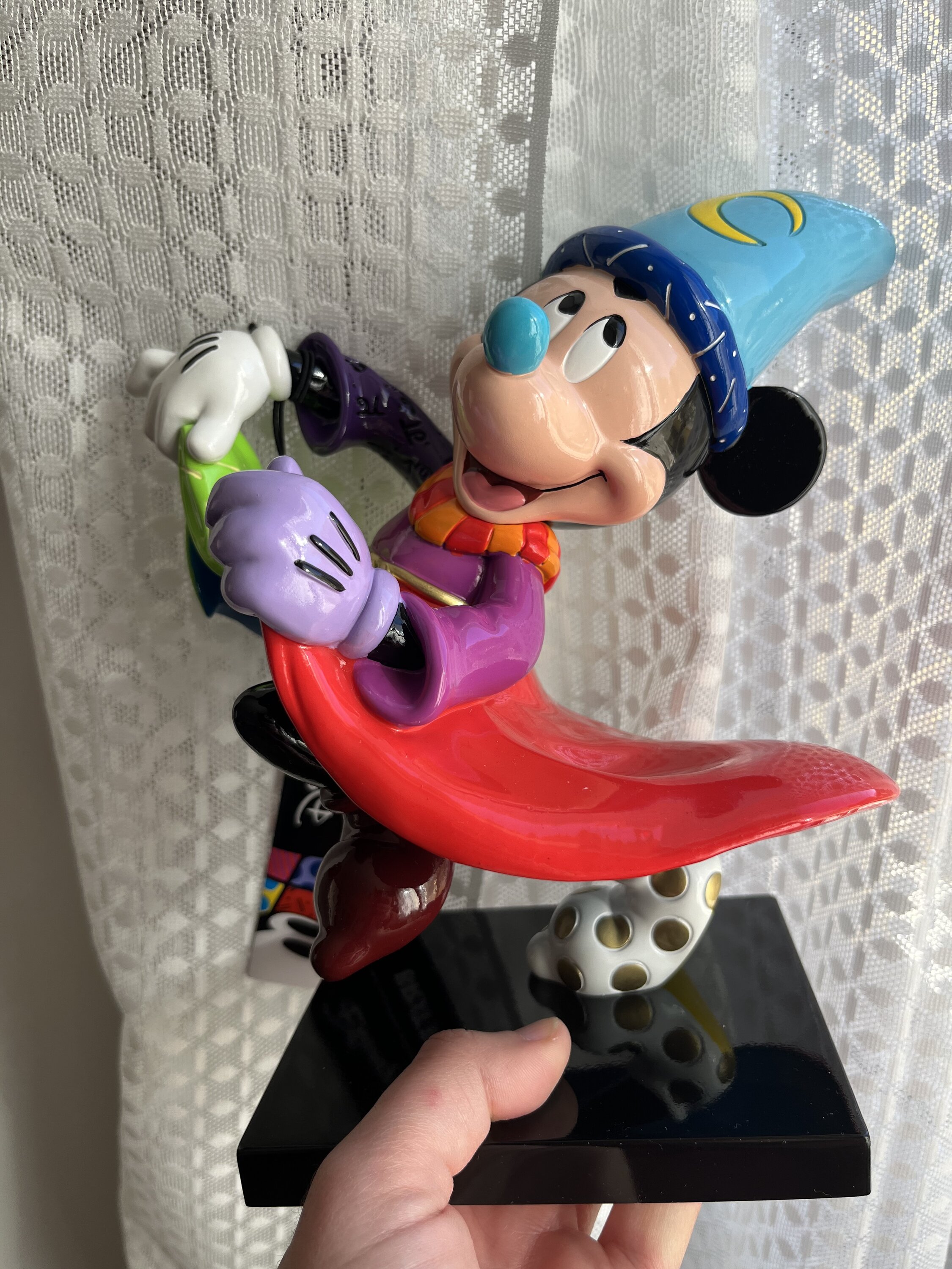 Pop Artist Romero Britto celebrates the 85th anniversary of Walt Disney's animated masterpiece Fantasia with this Sorcerer Mickey from the Sorcerer's Apprentice. Each sculpture is hand painted by skilled artisans in Britto's vibrant pop color palatte.