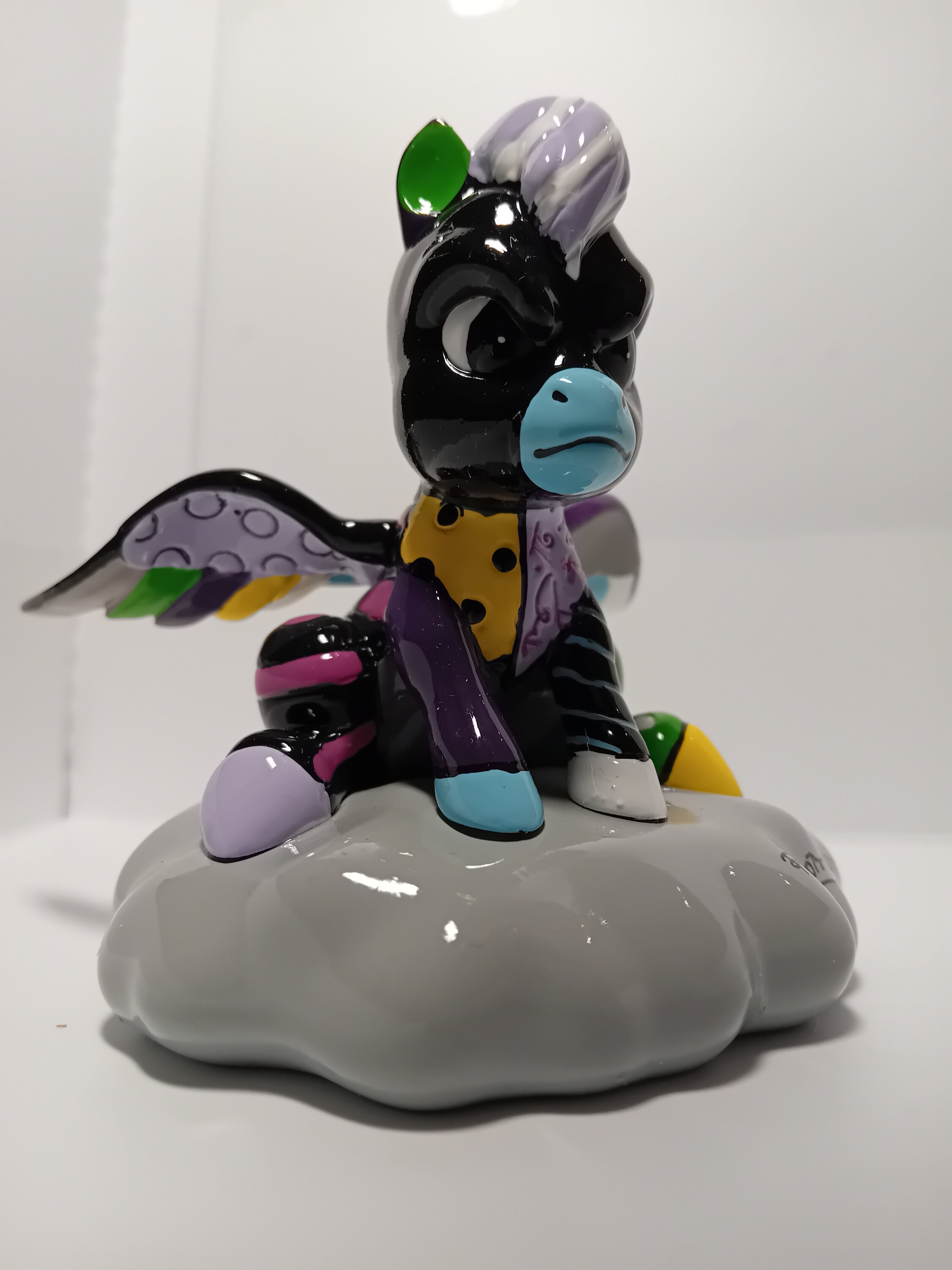 From Walt Disney's masterpiece Fantasia, the little black Pegasus looks a little less grumpy when reimagined in Romero Britto's pop art style.