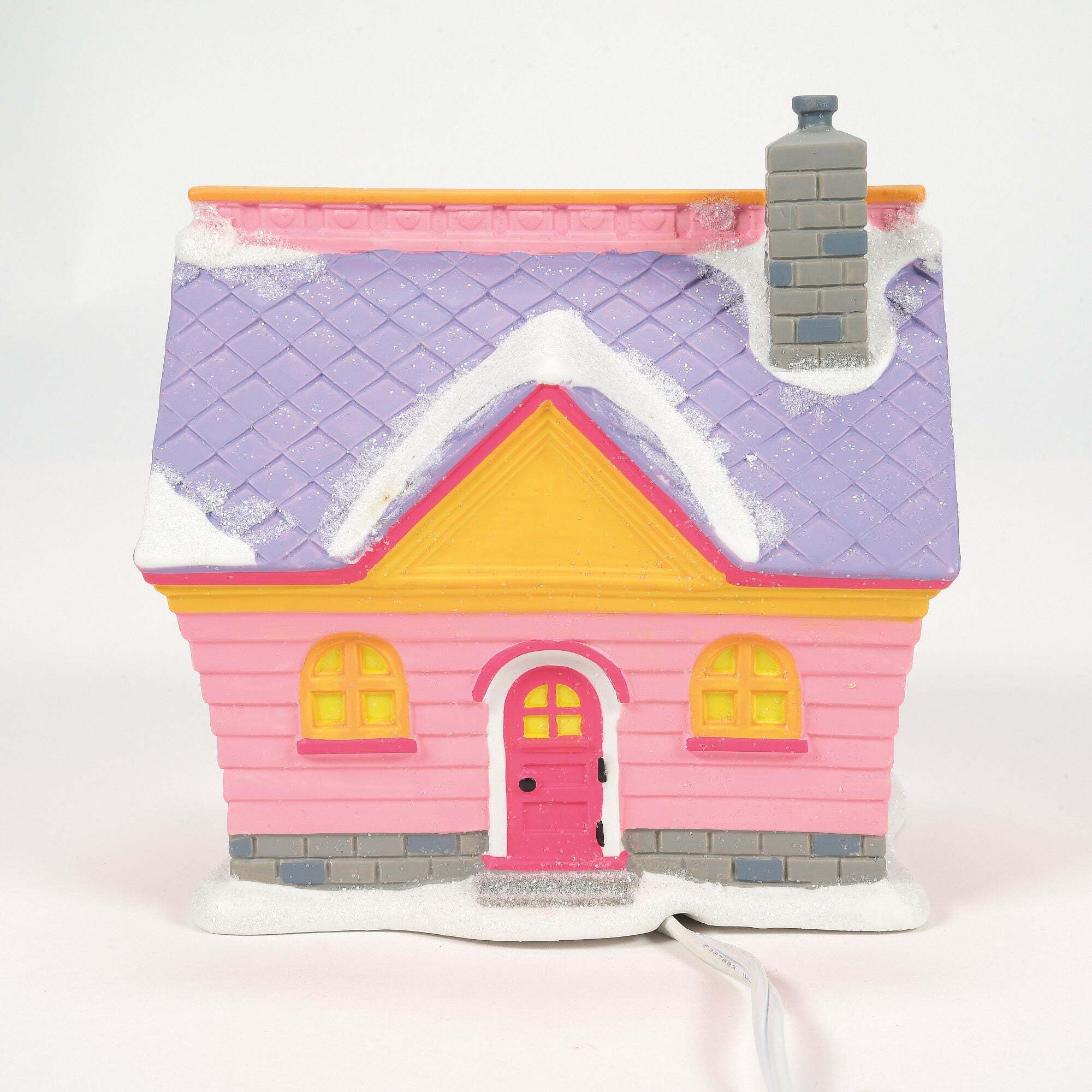 Minnie's house, handcrafted and painted in porcelain, which includes a light cord with bulb.