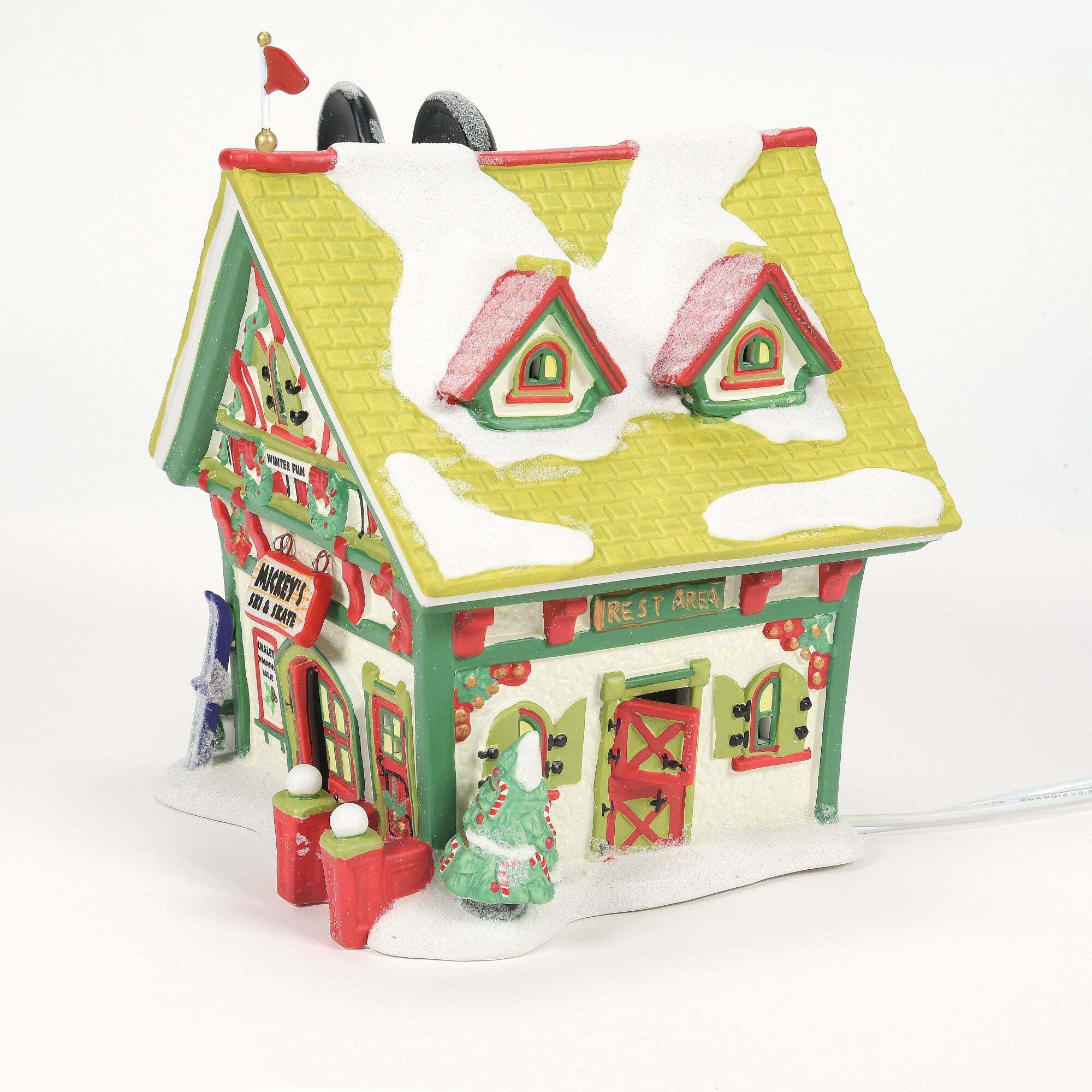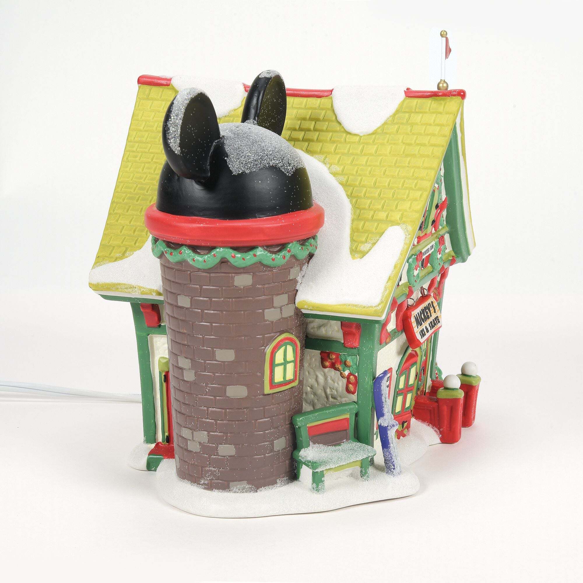 Mickey's Village comes to life with the Christmas universe. Each illuminated piece comes with a cord with switch and a light bulb, and was designed by the artists at Department 56.