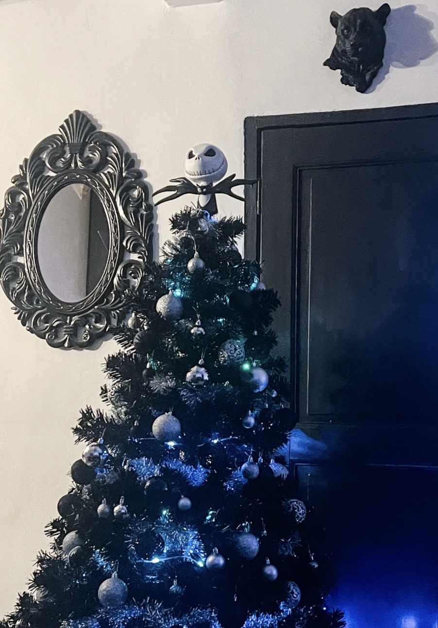 Jack Skellington tree topper ornament, perfect for any Nightmare Before Christmas fan. Perched on your Christmas tree, you can almost hear Jack say "What do I see?".