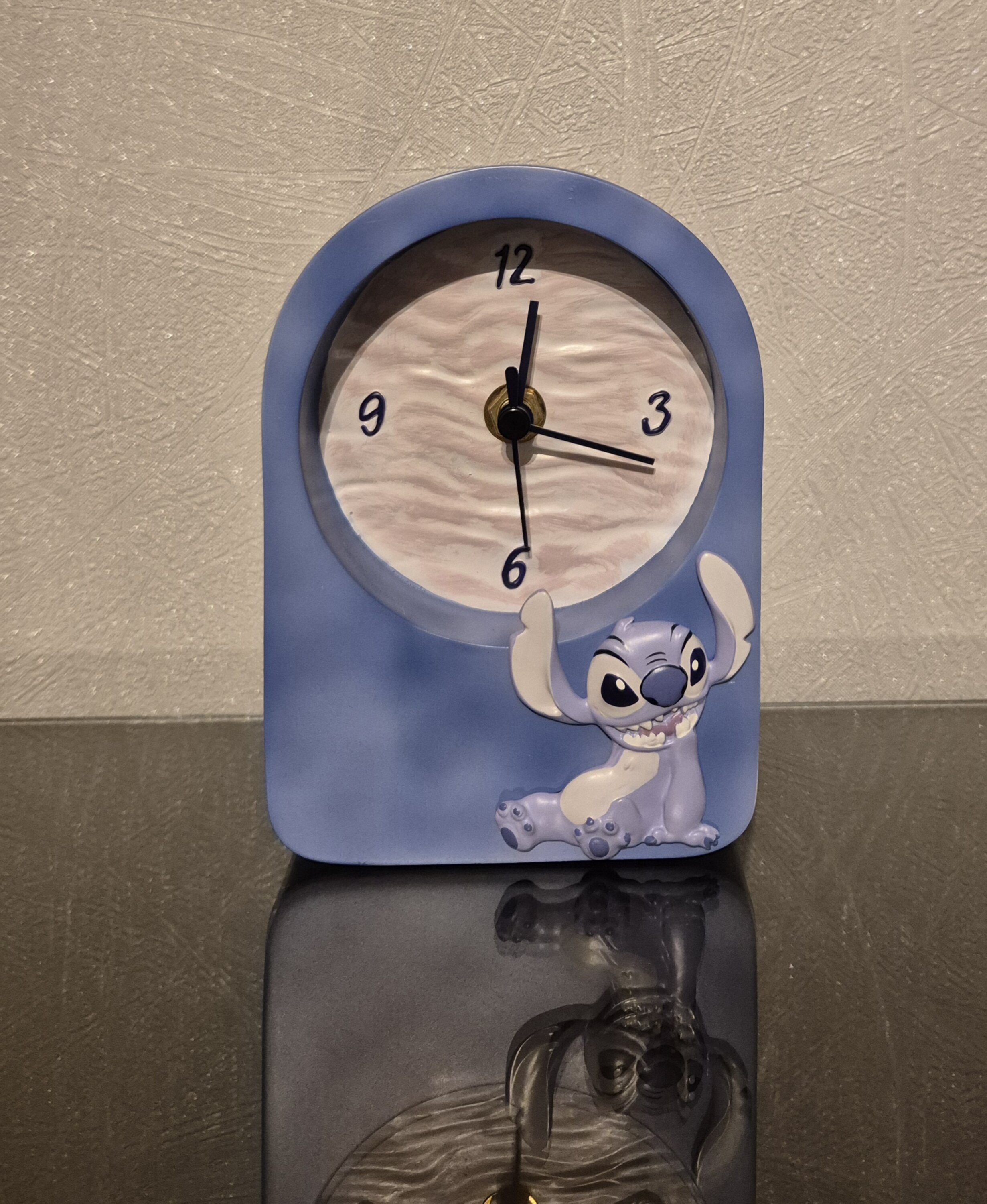 Tick-tock in Disney style| Introducing the Stitch Desk Clock-embossed with Stitch's charm on the front. This adorable timepiece brings playful energy to your workspace. Let Stitch keep you company as you navigate your day, adding a dash of Disney magic to every hour.