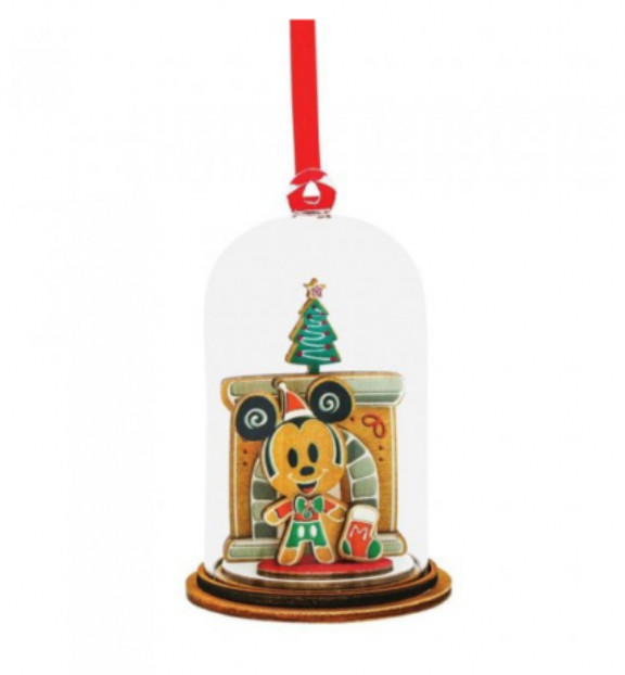 This Enchanting Disney Christmas Bell is decorated with a wonderful depiction of Mickey Mouse in gingerbread style, standing in front of a fireplace with a big smile on his face. Glass dome with a wooden base. Supplied in an Enchanting Disney branded gift box. This is not a toy or children's product. Intended for adults only.