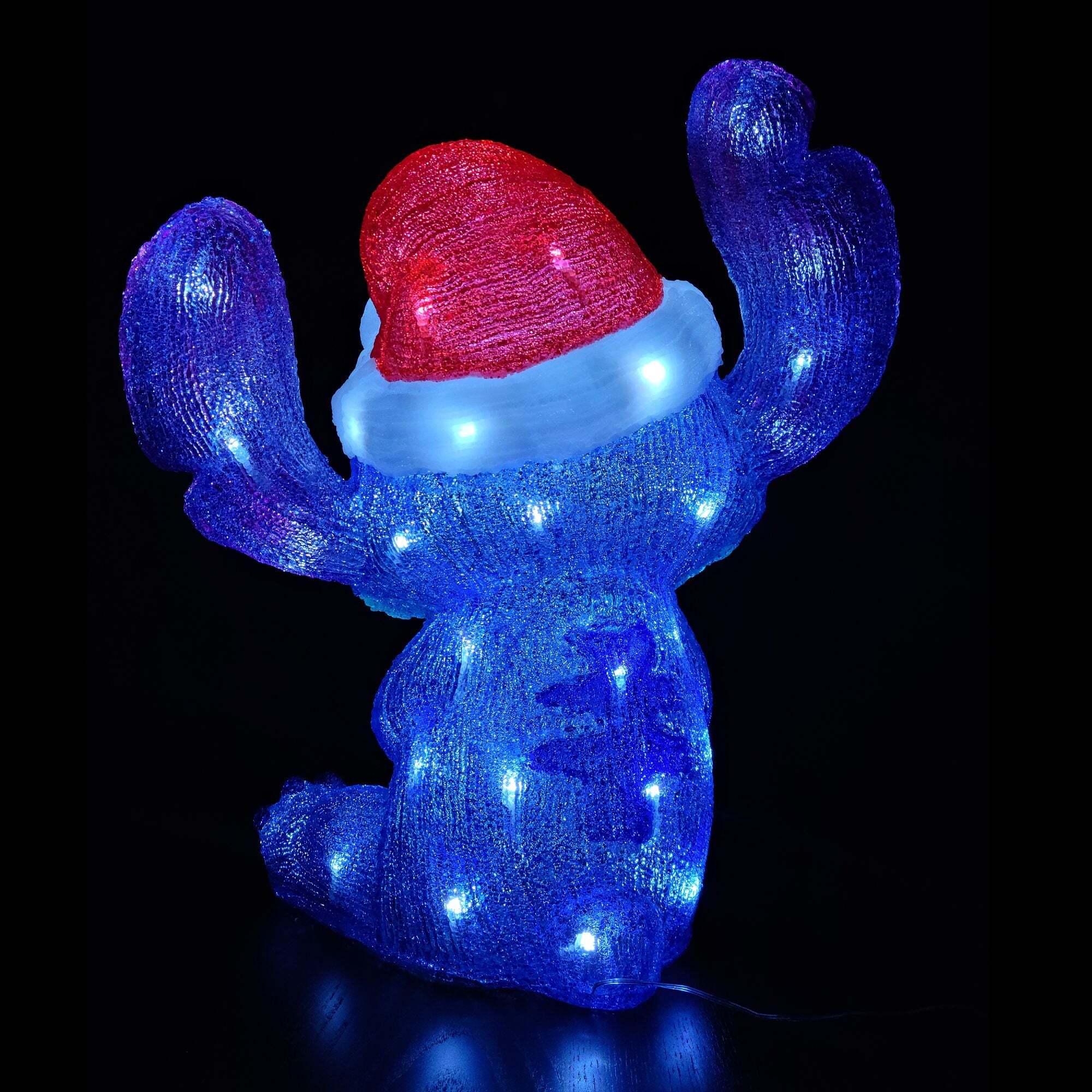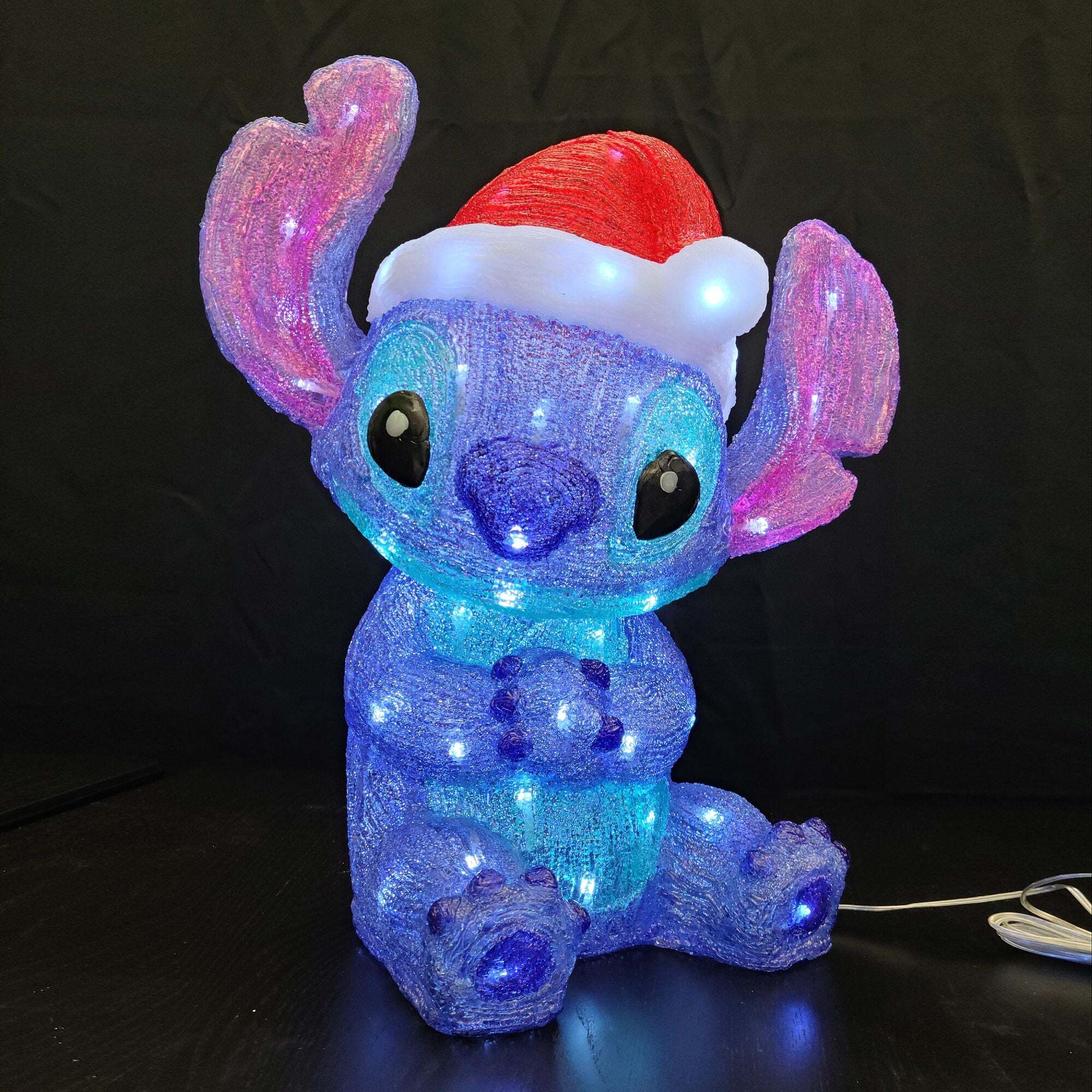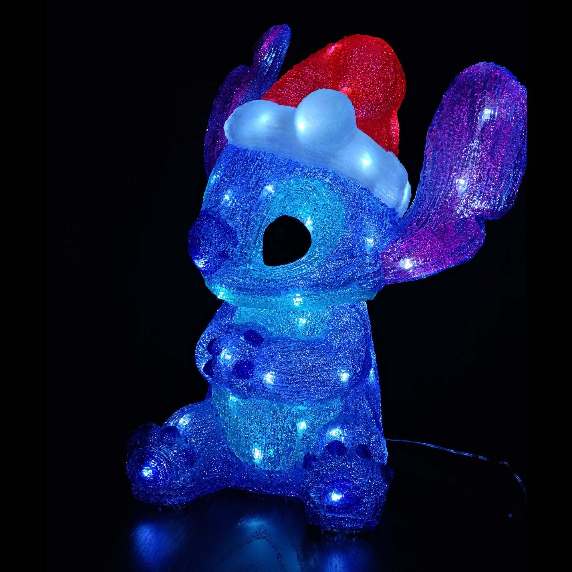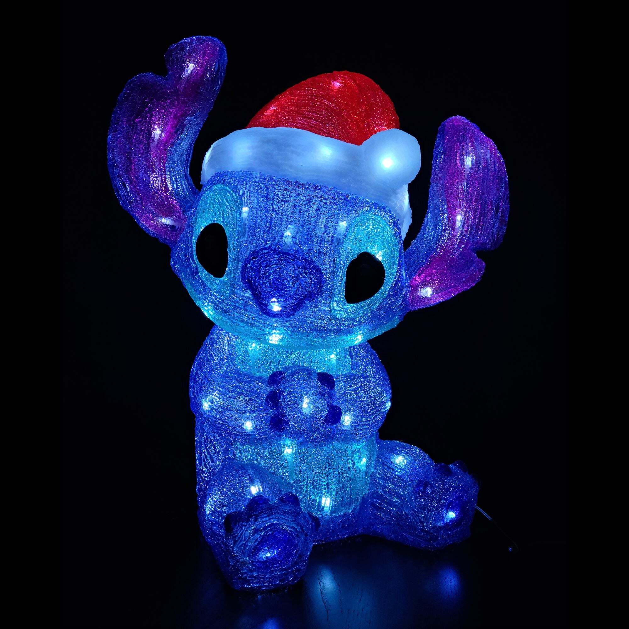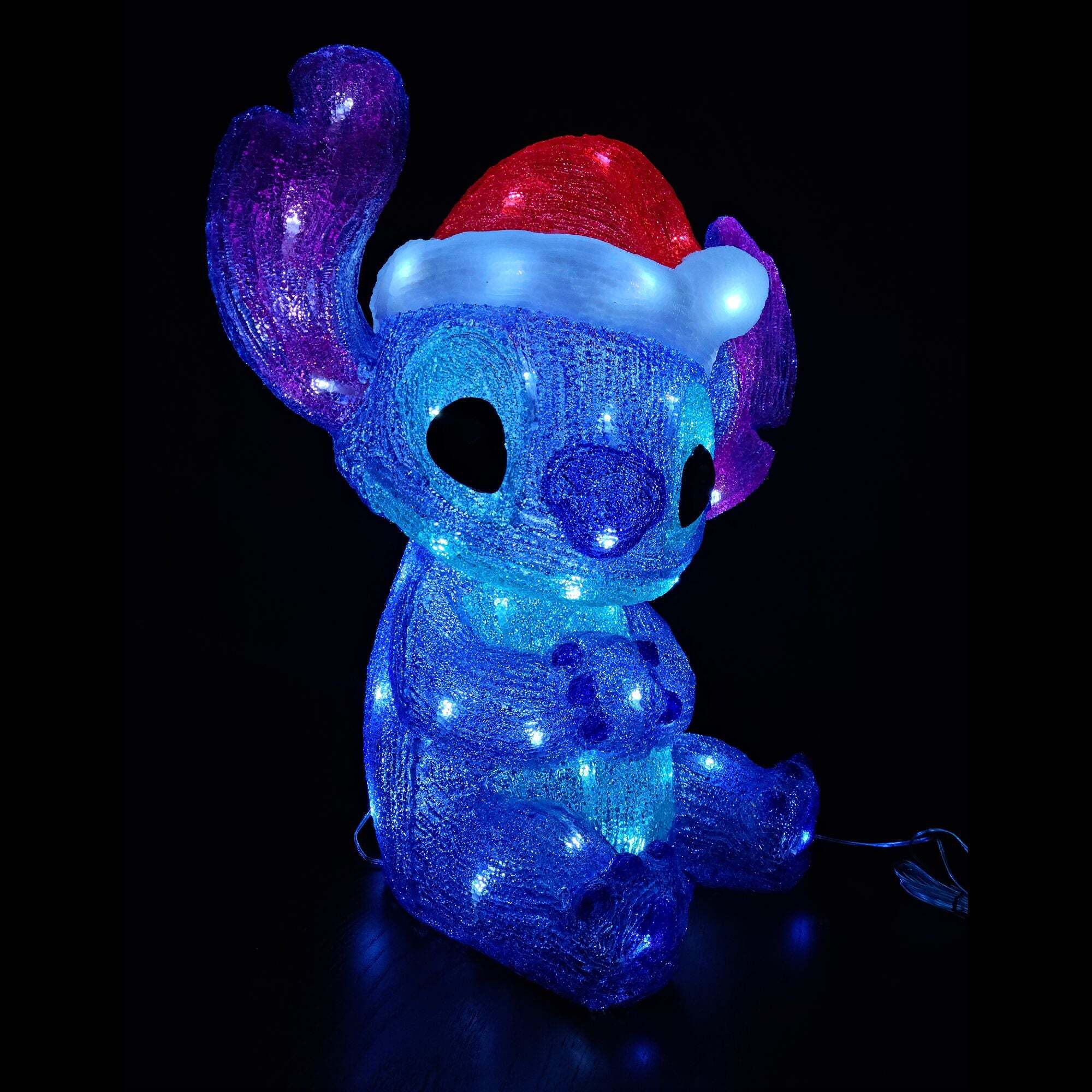 Stitch with his festive hat fits perfectly with the holiday spirit and will bring a joyful touch to your home or covered porch with this acrylic light-up decoration. Perfect for brightening up your celebrations, it easily plugs into a weatherproof outlet for a magical effect throughout the season. Power adapter included.