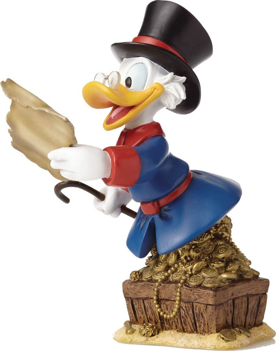 Scrooge McDuck sets off on an expedition to grow and protect his fortune with this colorful mini bust inspired by his adventures in Disney’s DuckTales TV series! Seated on a treasure chest, Scrooge is ready to seek out more riches with his map and cane in hand. This figurine stands 20 cm tall.