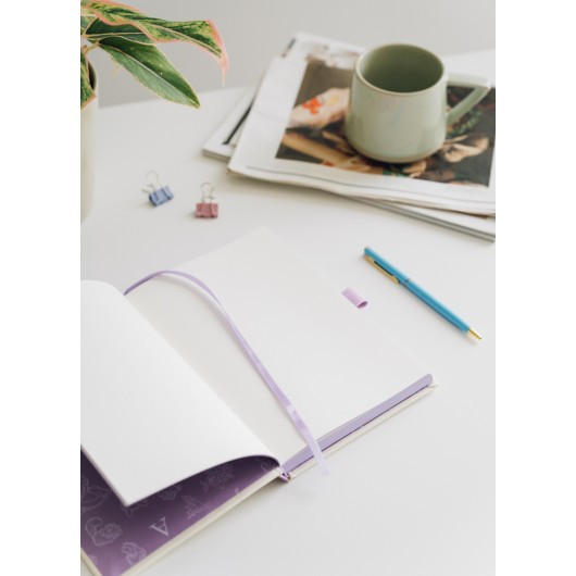 A5 hardcover notebook with pen. Features a matte laminated cover with quilted effect and soft feel, blank pages, square corners, glued binding, pocket and ribbon bookmark. Contains 96 sheets (192 pages) of 100 g/m2