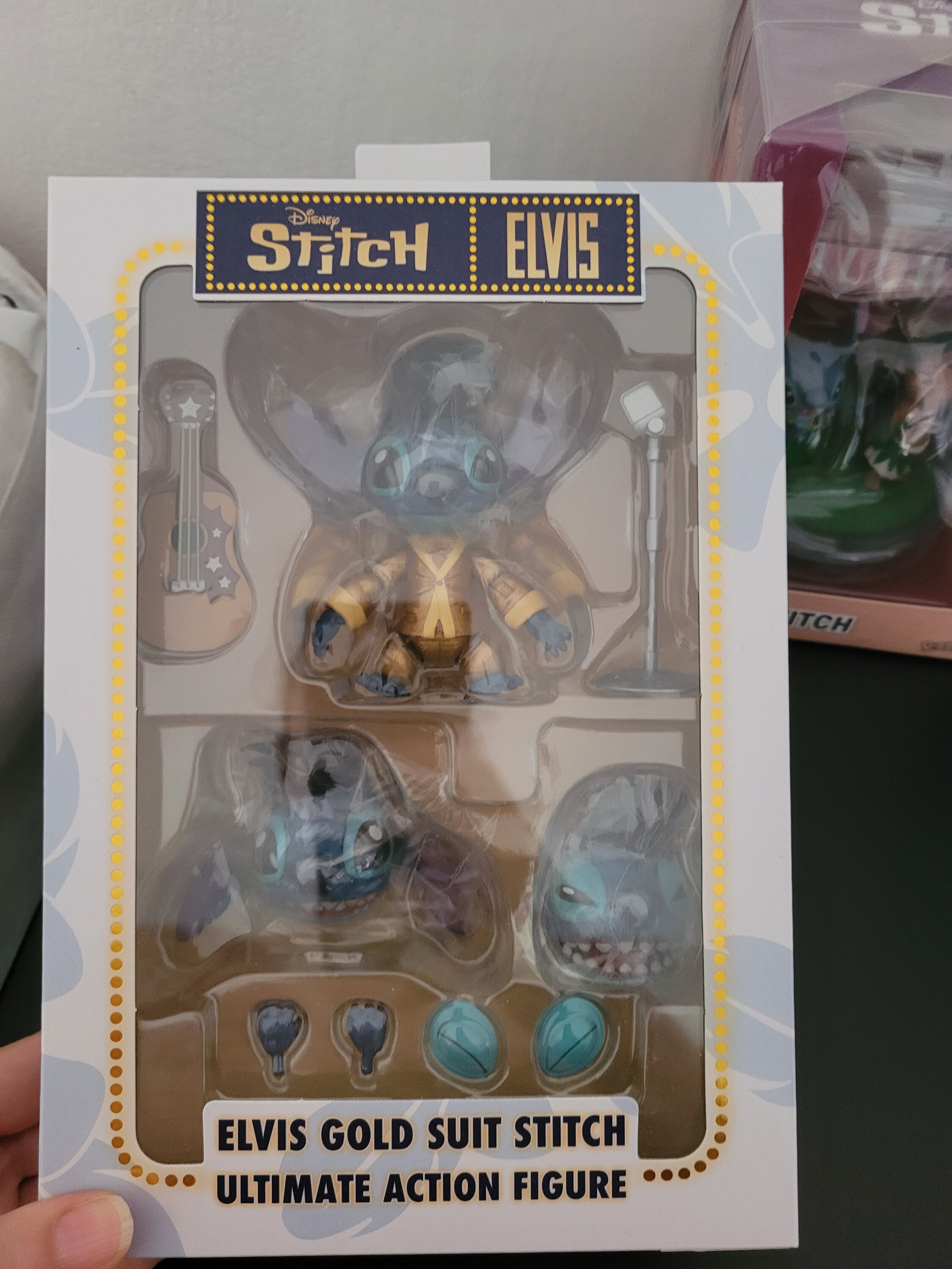 In the movie, Lilo teaches Stitch how to be a "good citizen" by using Elvis Presley as a role model. The result? A legendary scene where Stitch puts on the King's outfit, guitar in hand, ready to set the stage on fire! 🔥 This golden suit version is the perfect tribute to his admiration for Elvis, which also appears in Lilo & Stitch: The Series!