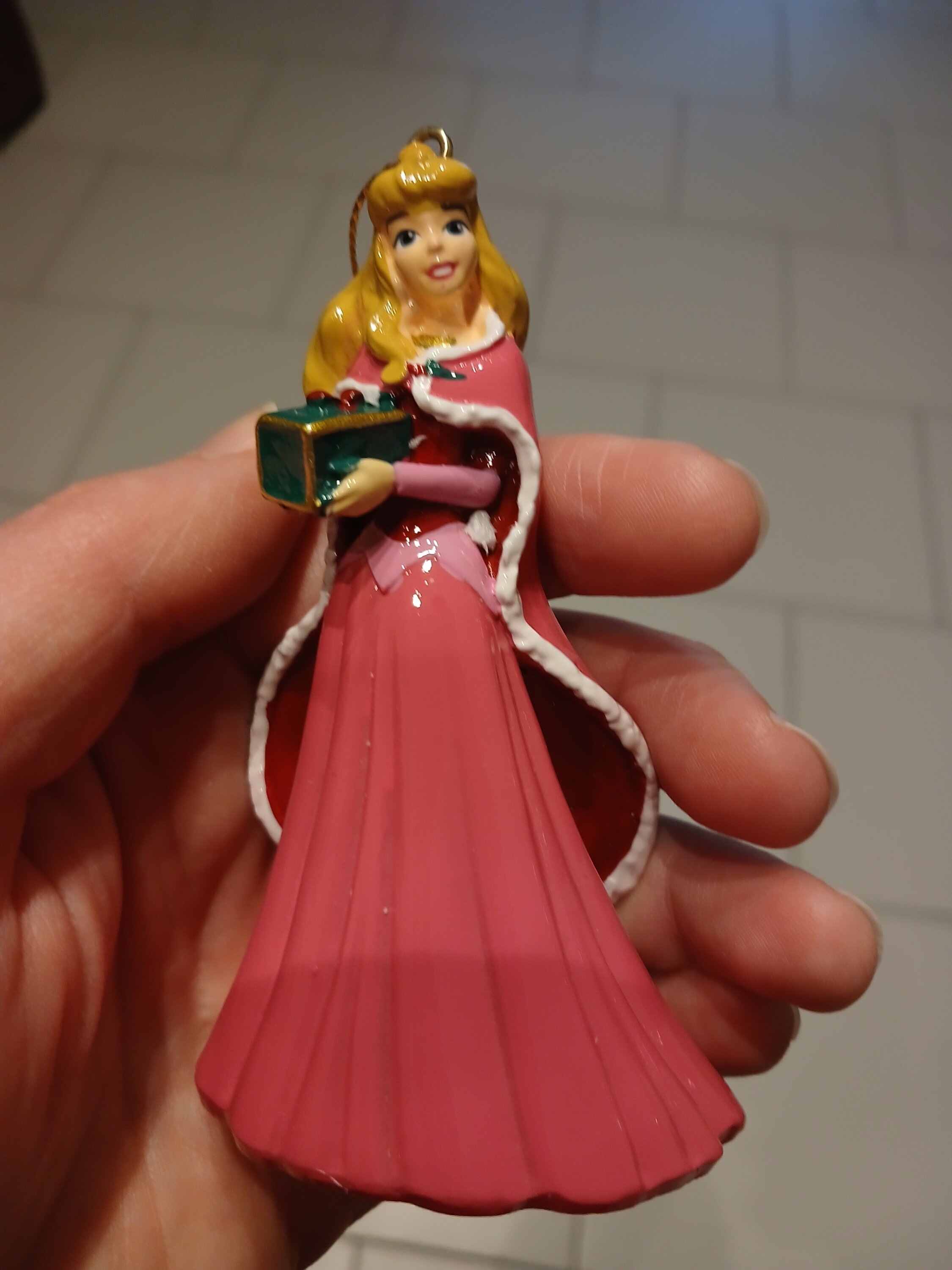 Aurora, with her gift-wrapped package, is very pretty for decorating the Christmas tree.