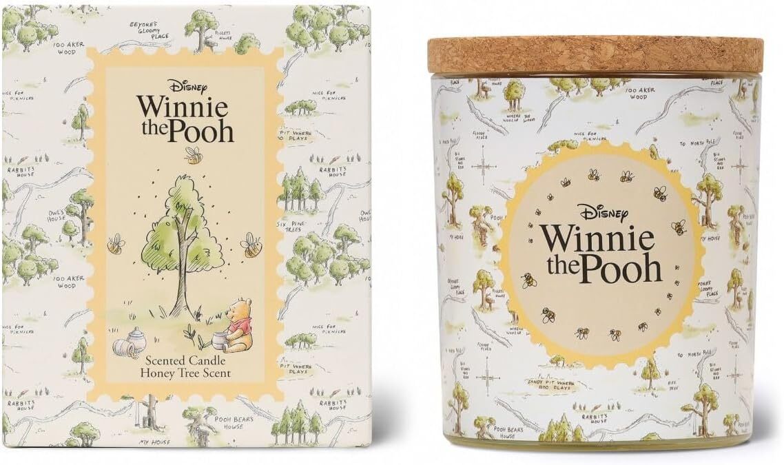 Presented in a charming Winnie the Pooh-themed glass jar with a wooden lid, this candle serves as both a decorative object and a source of comforting fragrance, ideal for Disney fans of all ages.