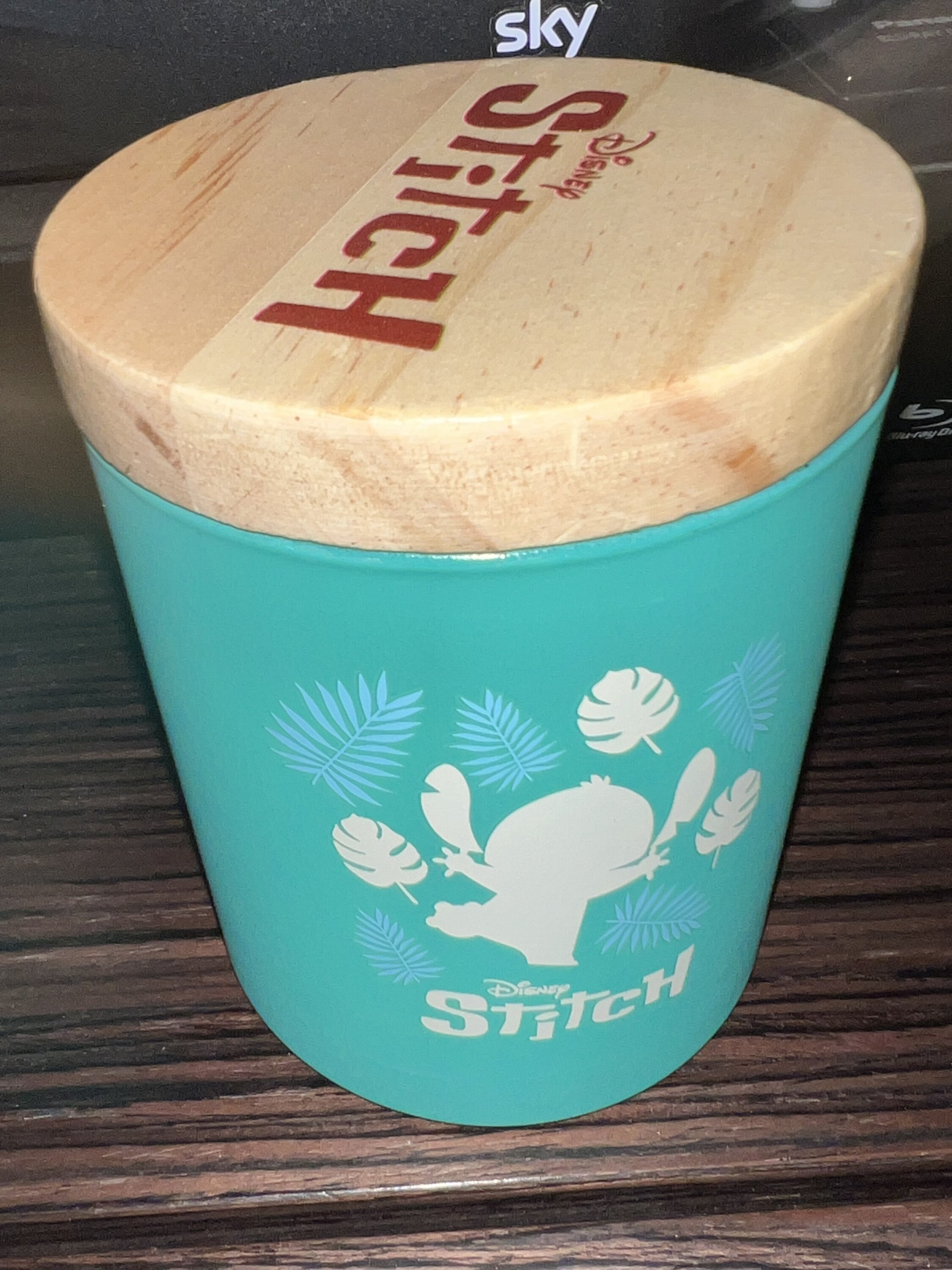 Candela grande con coperchio in legno di Stitch con ottima profumazione ma va sempre a gusti, però sempre una garanzia