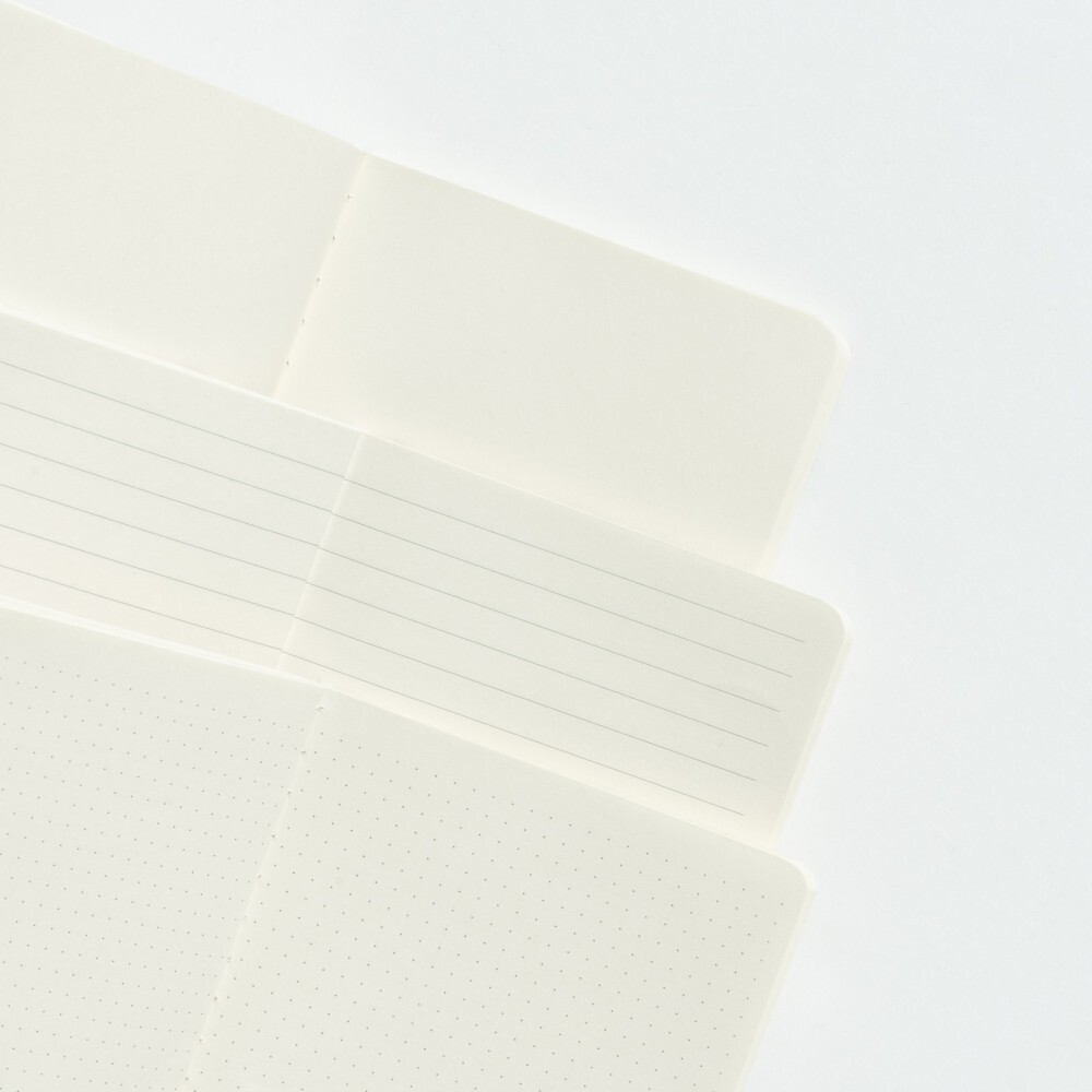 Set of 3 A6 softcover notebooks, each with a different design. Each notebook measures 10.5 x 14.8 cm and has a 300 g/m² printed paper cover. Each notebook contains 32 sheets of 80 g/m² paper (64 pages) and features a different type of interior: lined, dotted, or blank.