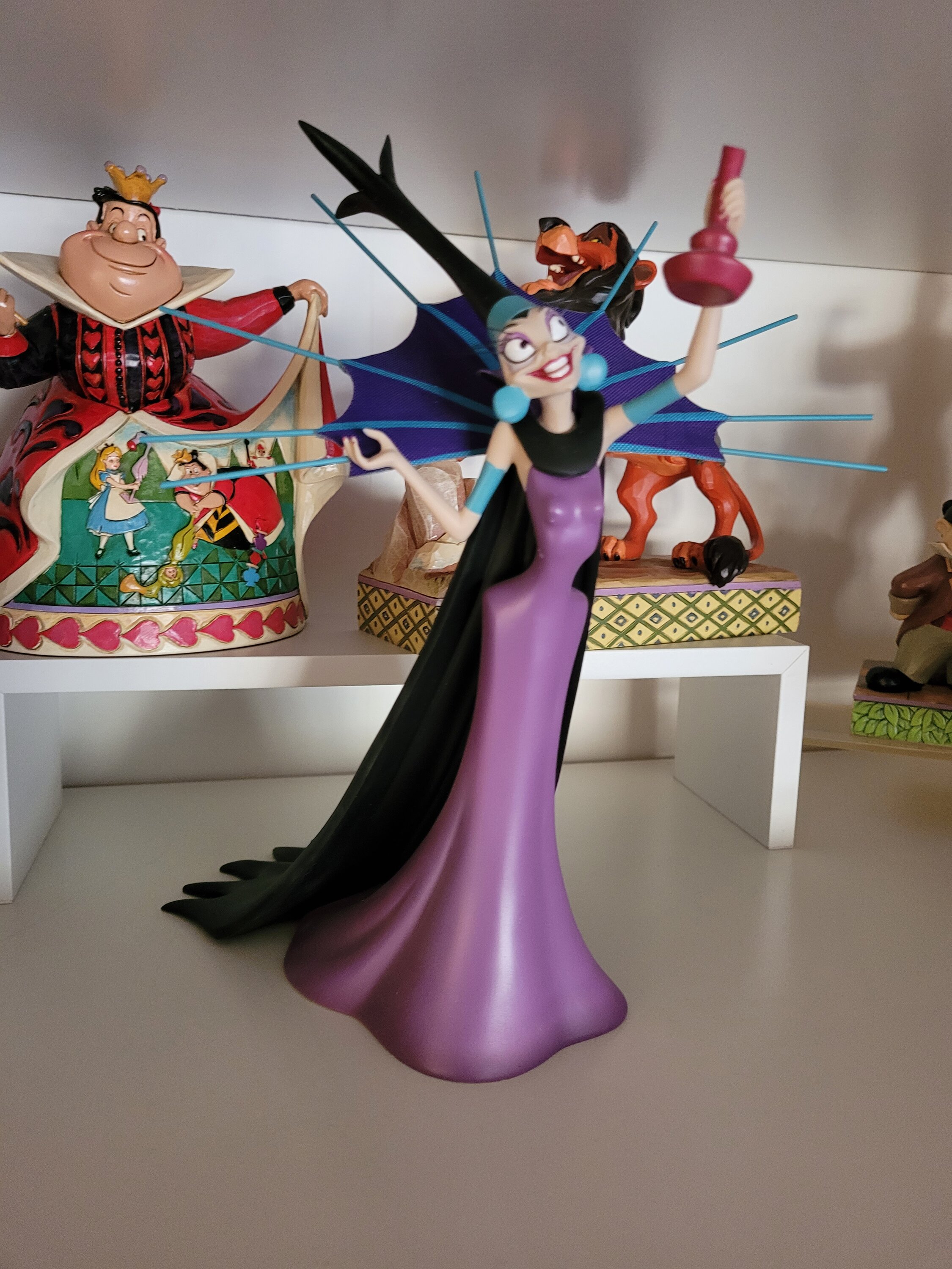 In celebration of The Emperor's New Groove 25th Anniversary, Disney Showcase Collection presents for the first time the true villain Diva, Yzma in all her glory. Using mixed media like false eyelashes and fabric collar elements, no detail was overlooked.