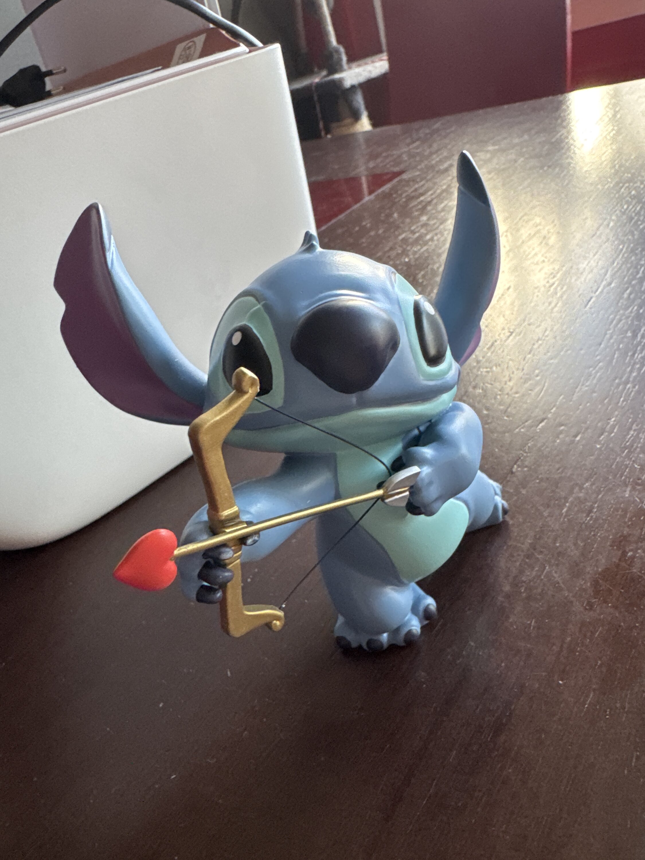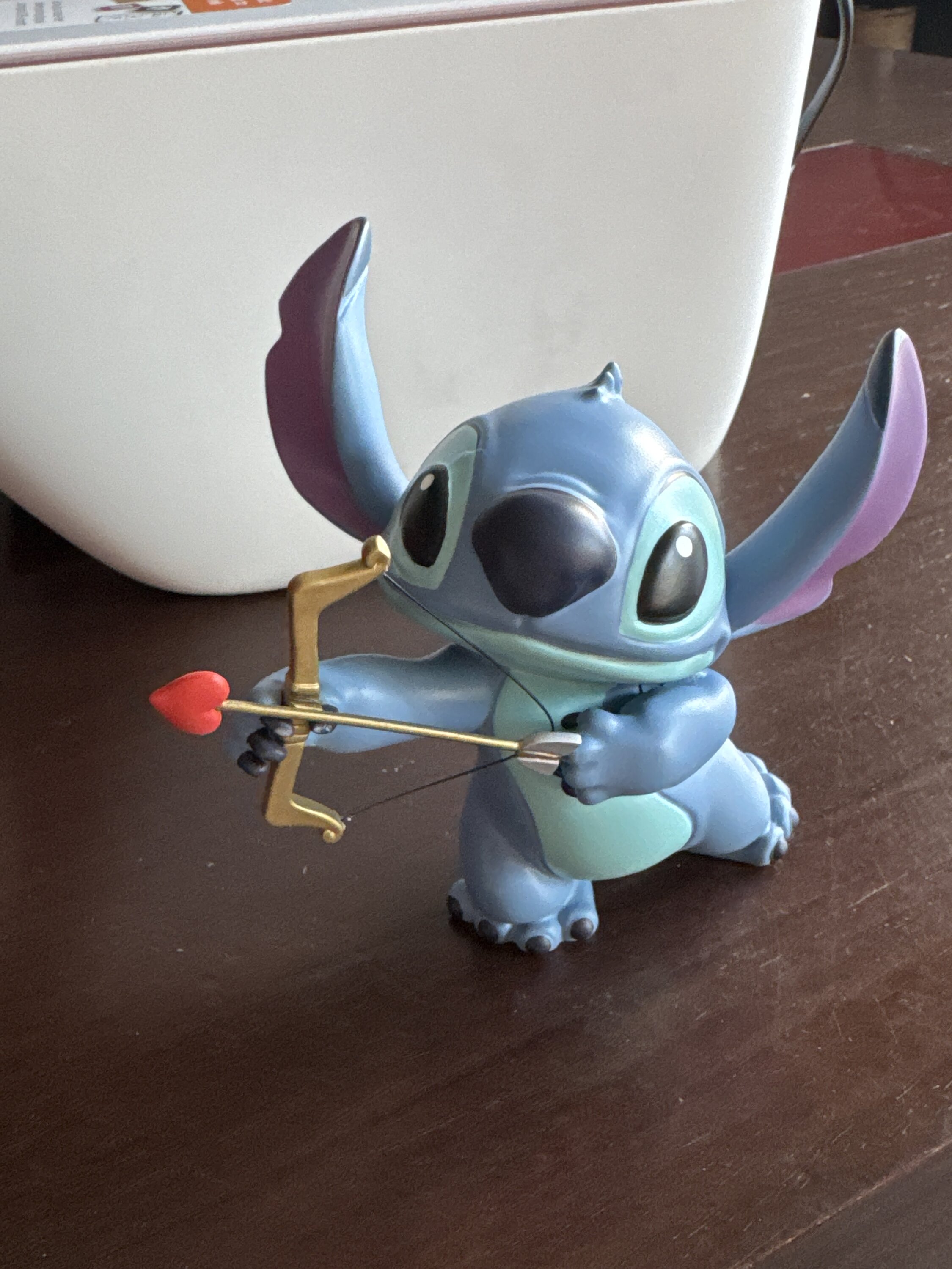 Celebrate the Holidays with everyone's favorite space experiment Stitch. Hand-crafted and hand-painted, Stitch will tug on your heart strings dressed as a cupid just in time to celebrate Valentines Day with your loved one.