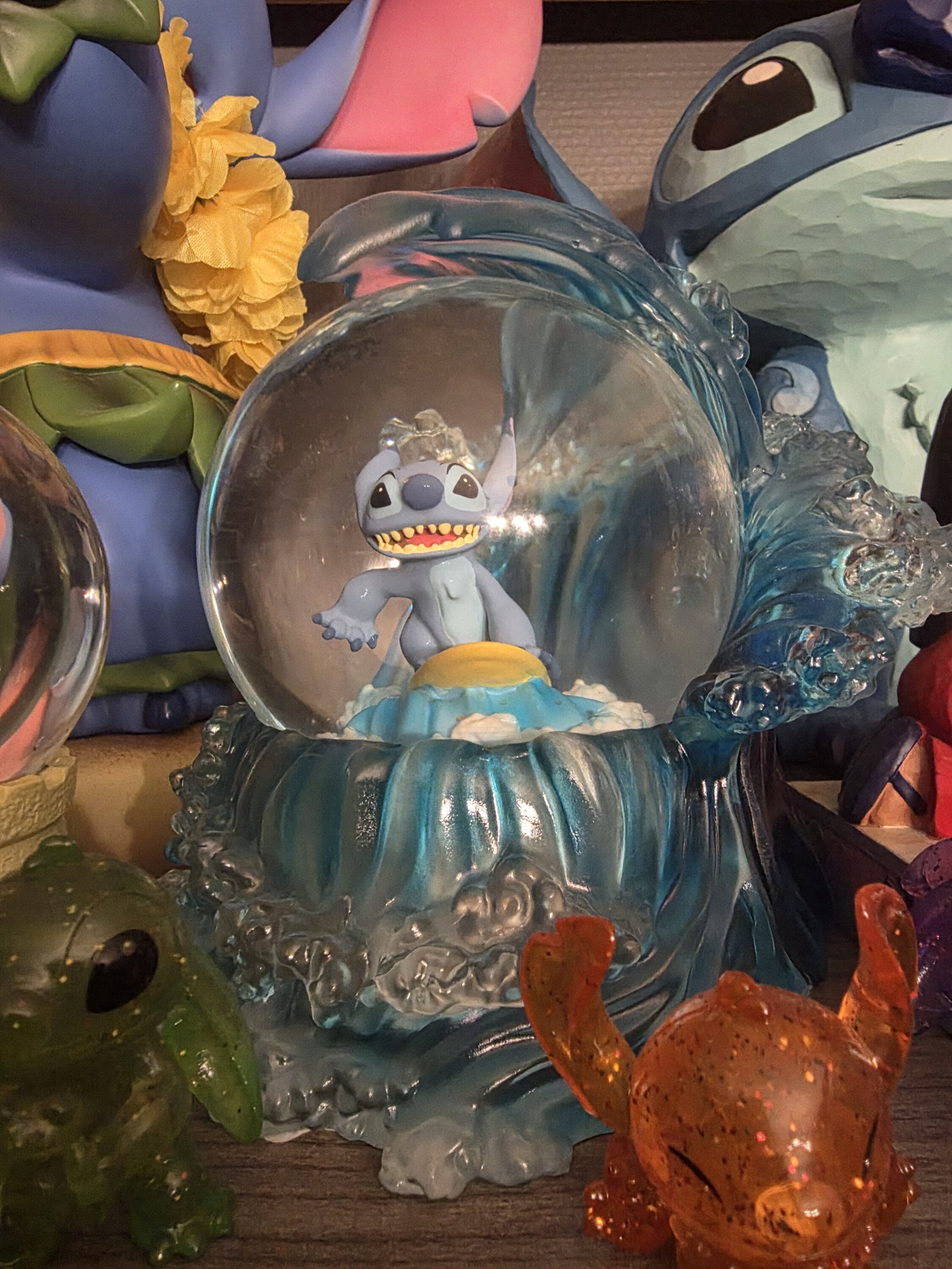 Stitch goes full aggro and makes a tubular splash in this beautifully sculpted resin water ball. Completely encased in a clear resin wave, will stitch hang ten or be a total wipe out ?