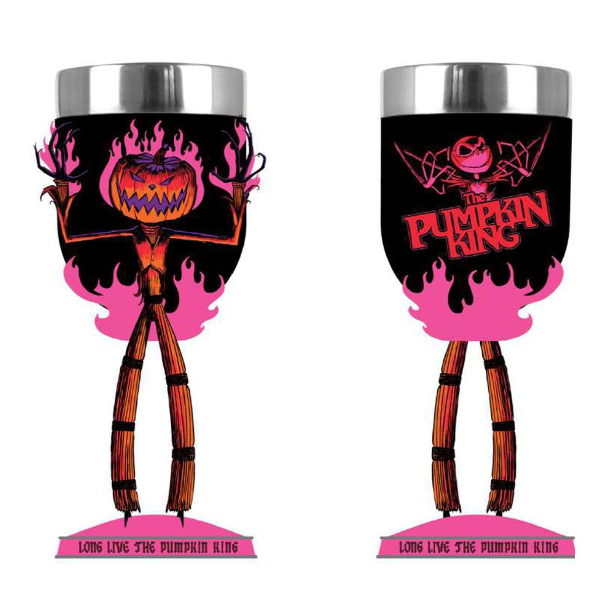 Here is the official Halloween Town Chalice! Celebrate your holidays in style with this decorative stainless steel chalice, adorned with the spooky image of the Pumpkin King. Ideal for all fans of The Nightmare Before Christmas. Handcrafted and painted with care, it comes packaged in a gift box. This product is intended for adults only and is not a toy or children's product.