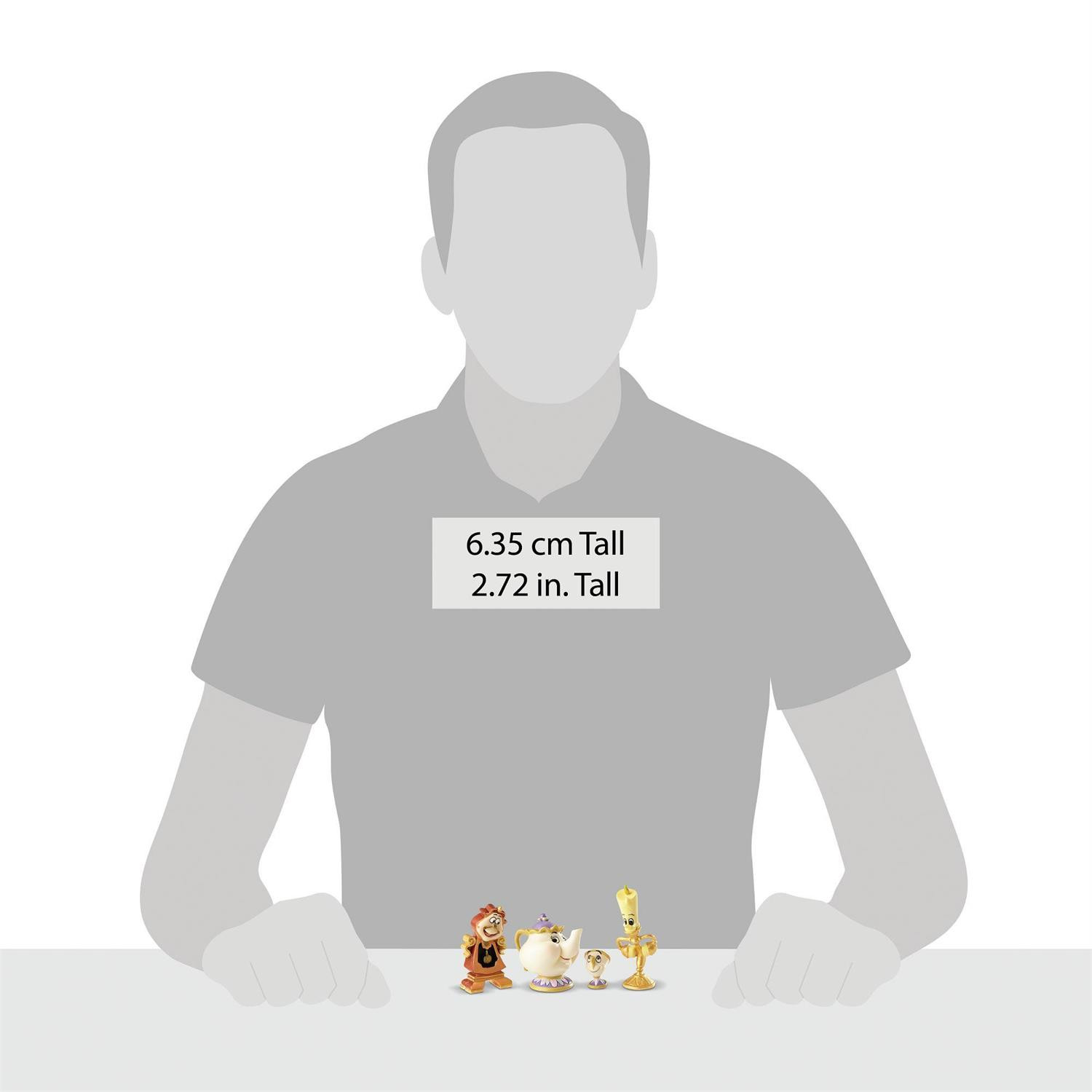 Living with the Beast can be difficult, but thanks to Belle's arrival, all of the enchanted objects can't help but smile! Lumiere, Mrs. Potts, Chip, and Cogsworth eagerly exchange excited glances in this collection of four 6,3 cm figurines.