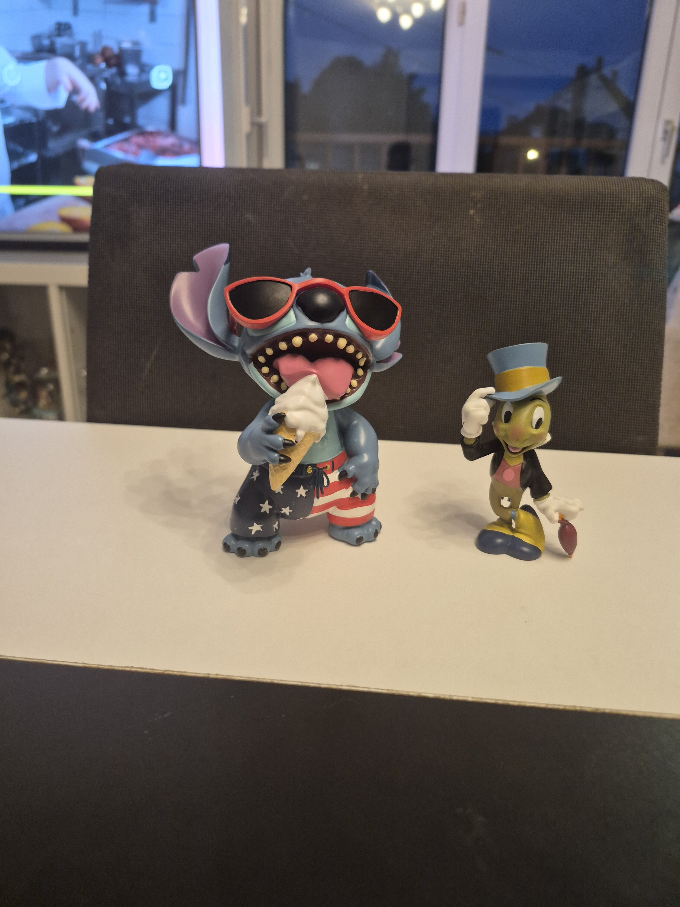 Très belles figurines, Stitch teste une glace que Jiminy approuve.