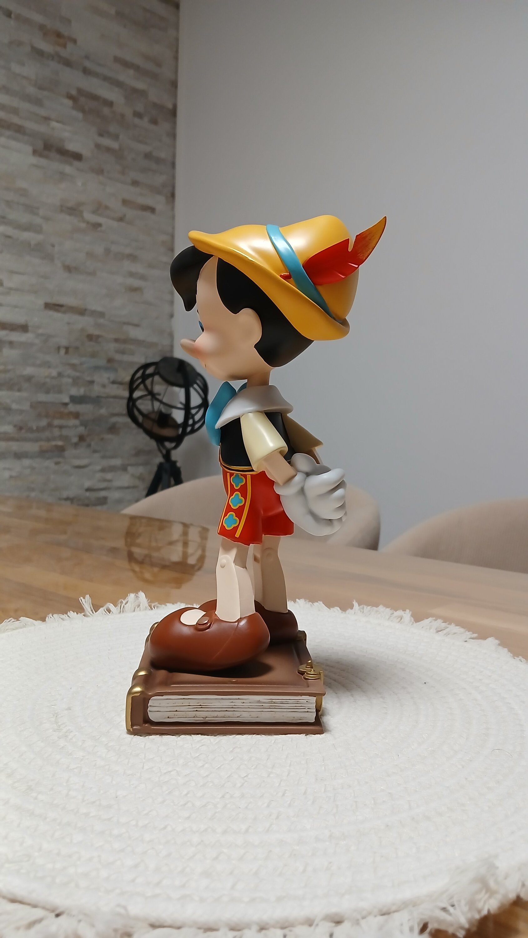 Quelle surprise lorsque je l'ai reçue! Elle est bien plus grande en réelle qu'en photo! Cette pièce est réellement parfaite,mise encore plus en valeur avec son livre sous le dessous. Une incontournable pour les fans de pinocchio. J'ai pris le Jiminy cricket de la même gamme et elles s'accordent parfaitement.