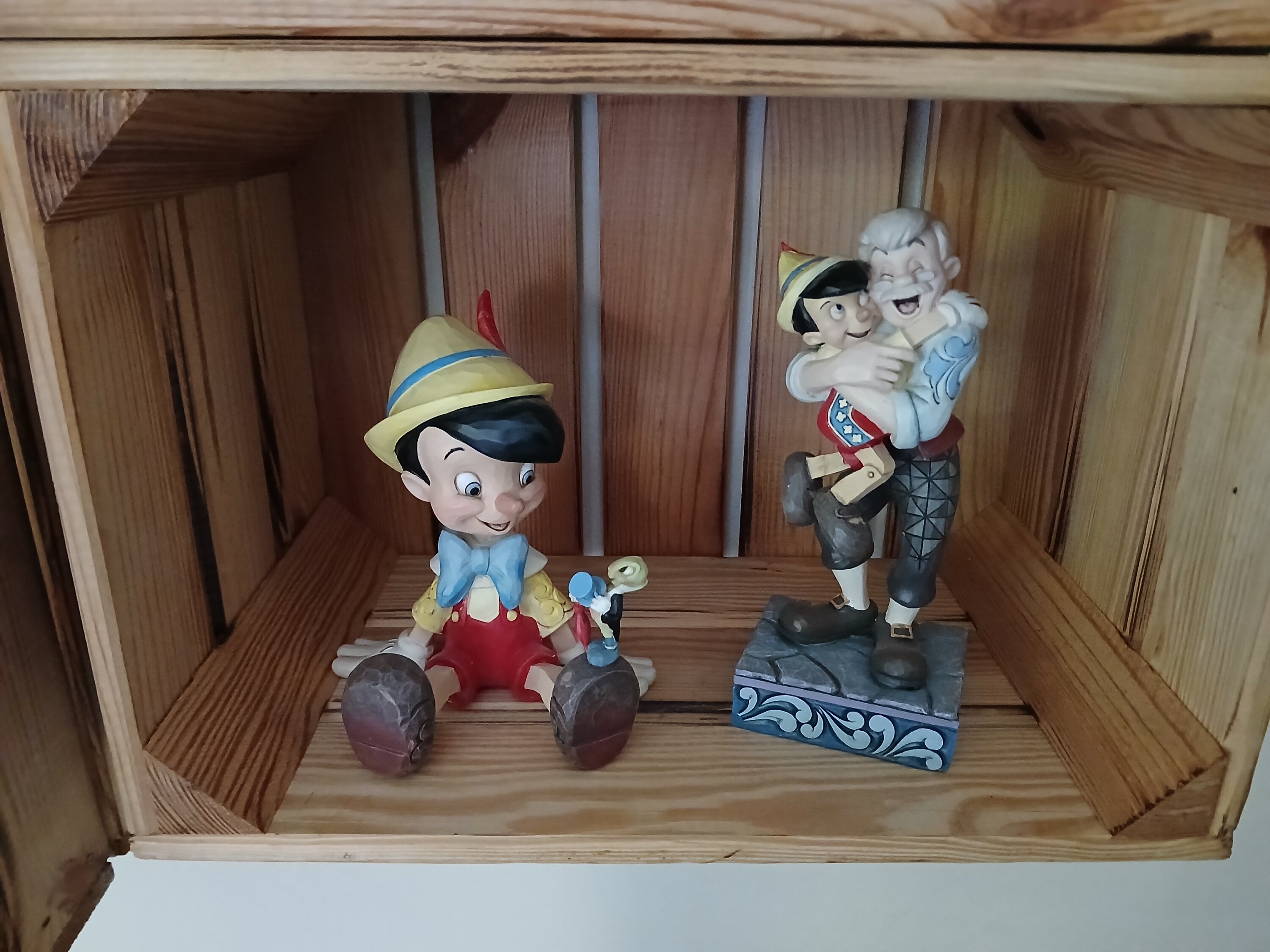 Heute wieder mich riesig darüber gefreut über meine Lieferung, weil der Geppetto und Pinocchio so irrsinnig gut, naturgetreu rüber kommen, ein wunderschöner Blickfang, gleich bei anderen Figuren von diesem Motiv einen Platz bekommen