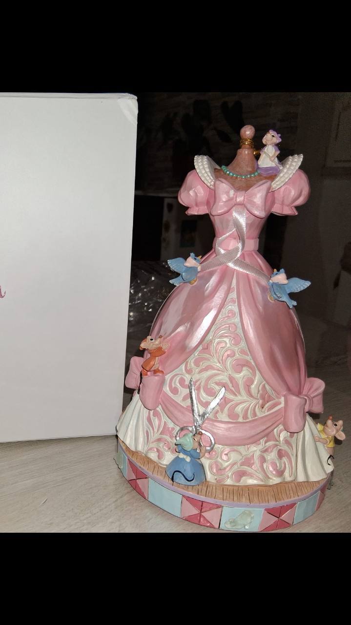 Wonderful piece from Disney Traditions. It perfectly reflects the scene of the dress being made, with the birds and the mice, adding a piece of fabric to the bow. It includes a mechanism to listen to the song “A Dream is a Wish your Heart Makes.” It is worth it, without a doubt. Perfect shipping. Fast and well protected. To repeat as many times as necessary. First of many purchases.
