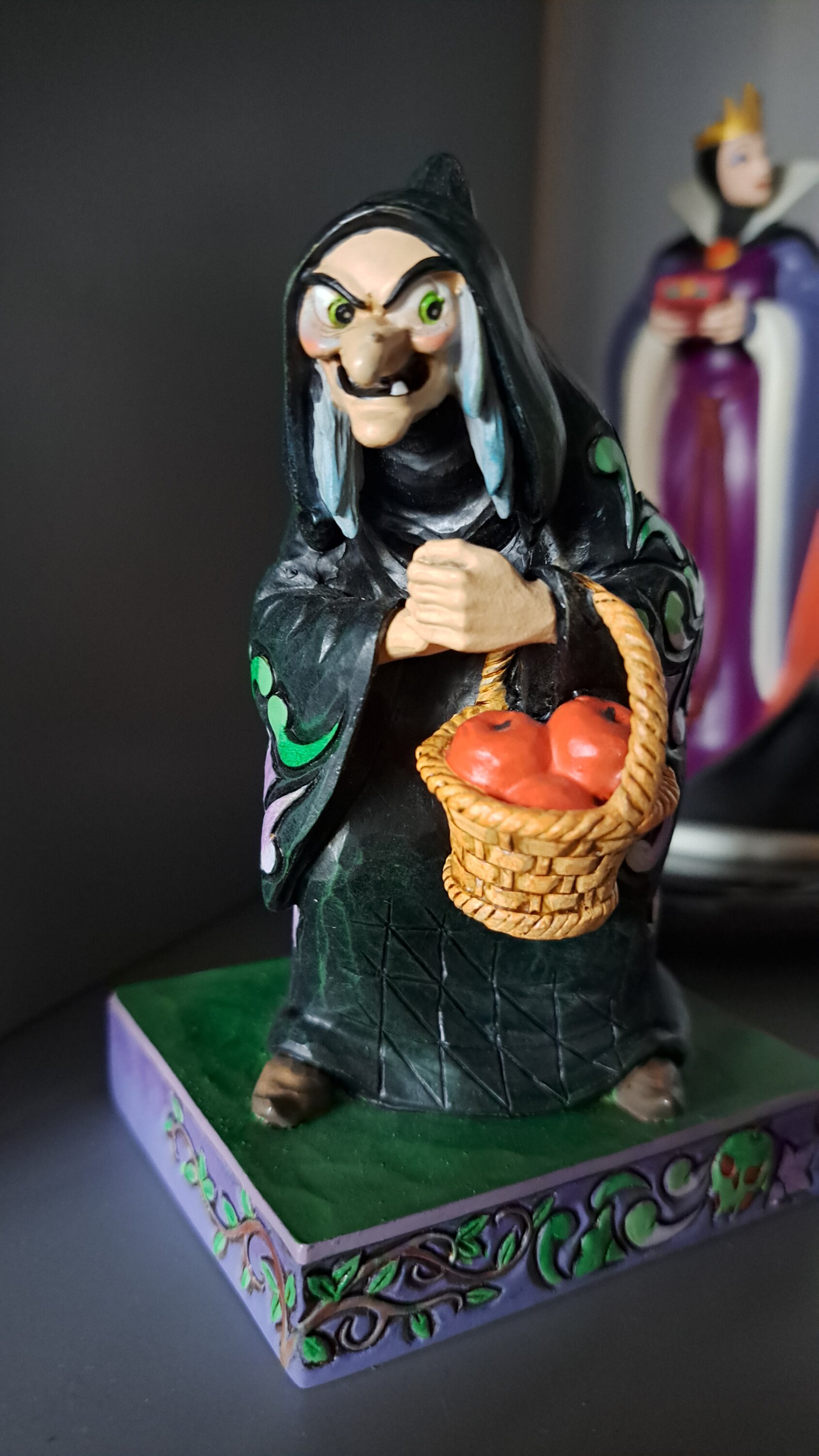 One of the rare depictions of the evil queen from Snow White as a witch.. With her basket of apples, she is very well done and her face is well detailed.