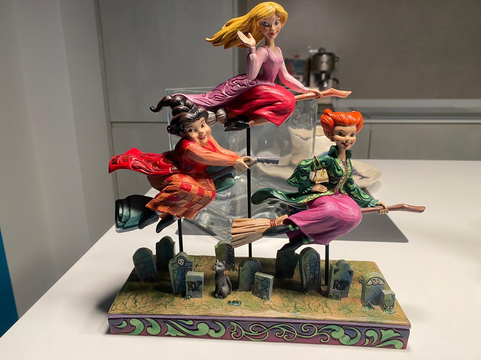 I wasn't familiar with this Disney Traditions reproduction of the Sanderson sisters by Jim Shore, and it was love at first sight! This product has some critical points, as the witches are depicted in flight, mounted on a thin pole. However, it arrived perfectly packaged and on time. I'm in love with these three witches and I also have them in Funko Pop versions, but these Jim Shore ones are spectacular! Next purchase: the three witches around the cauldron! I recommend checking out this site for hard-to-find models. Happy and satisfied, ready for Halloween!