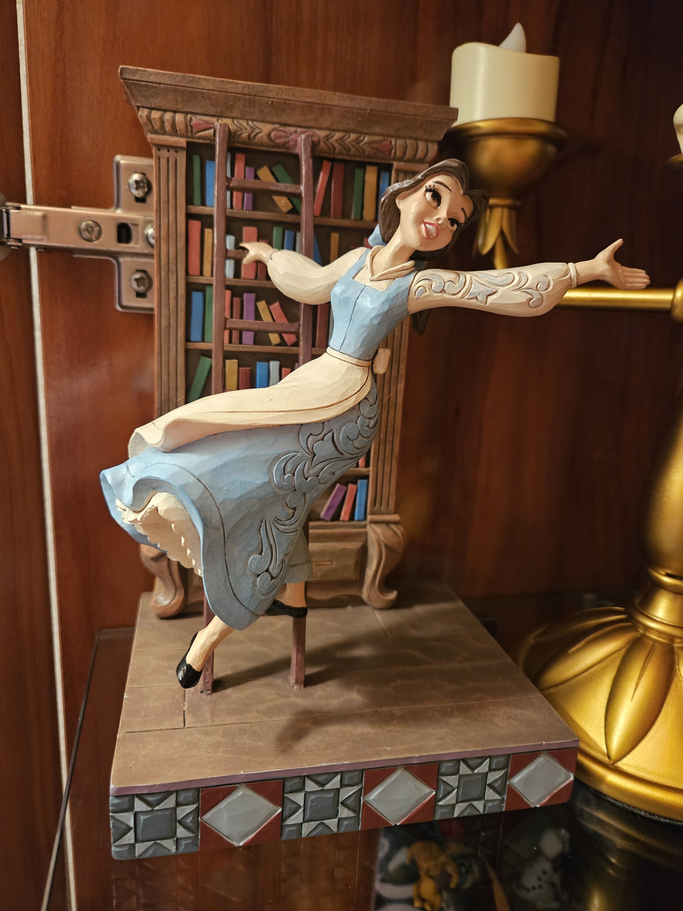 Magnificent figurine of Belle pacing the Beast's library.