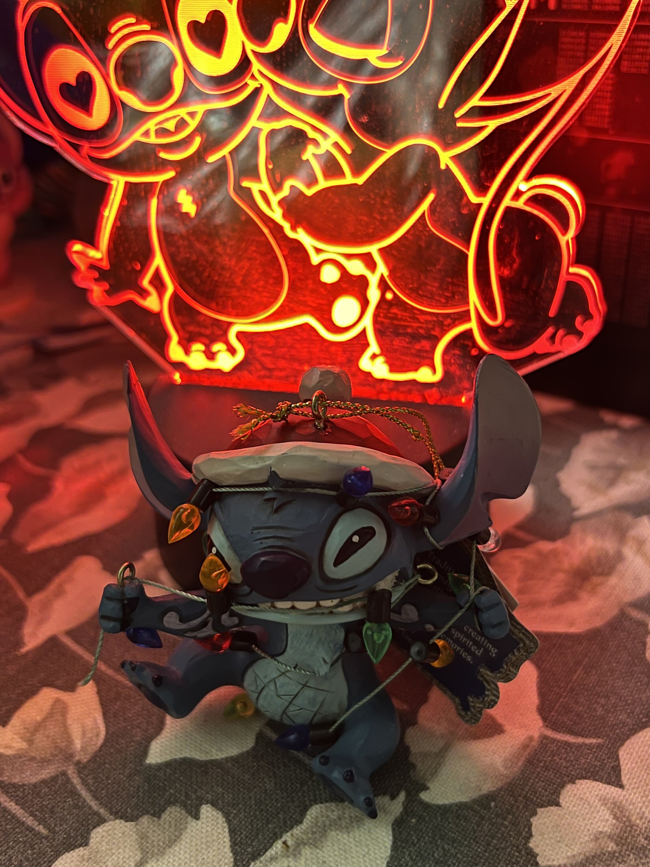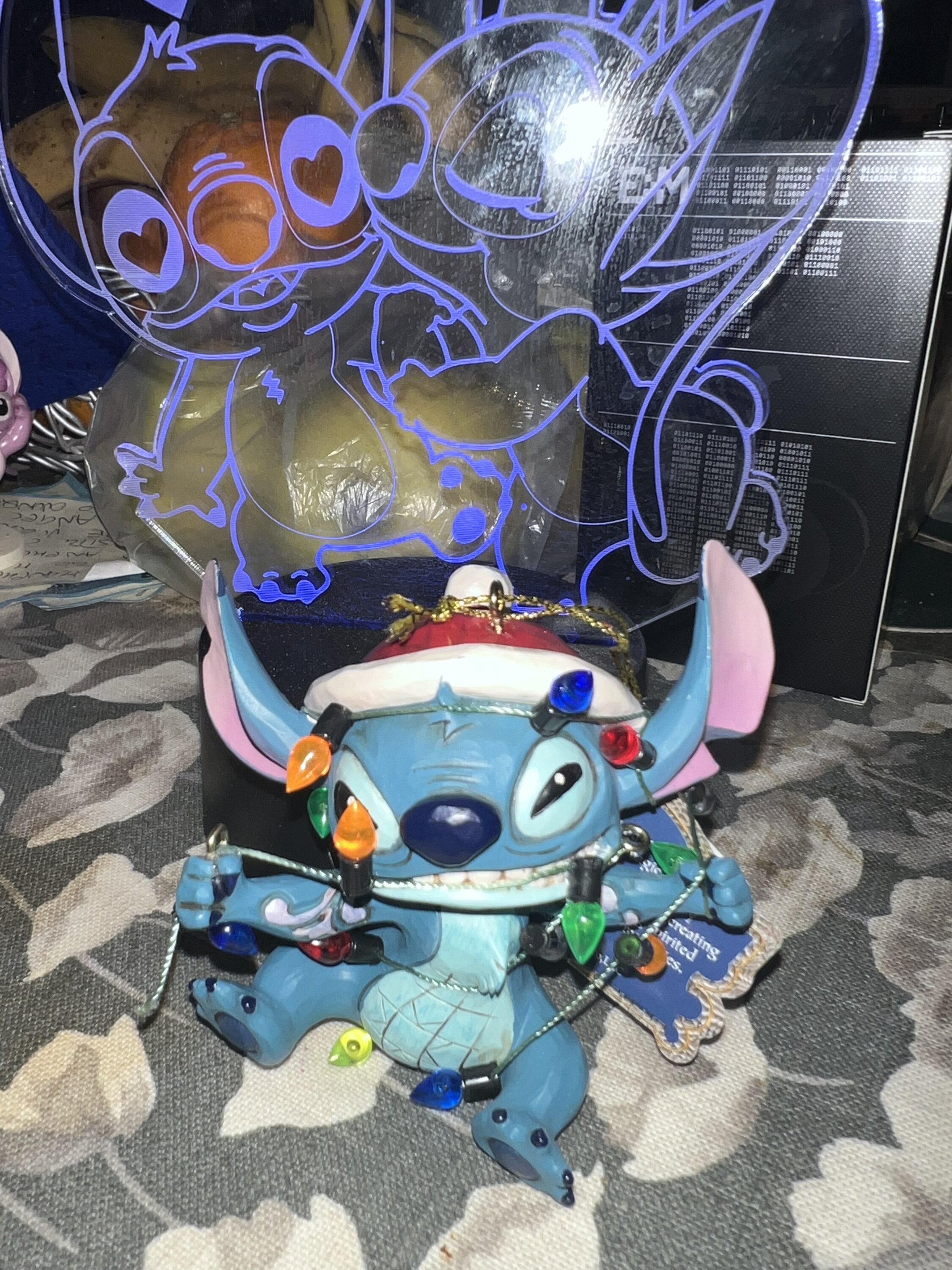 Stitch gets into the Christmas spirit, even if he's in a bit of a pickle. Wrapped in his fairy lights, he makes a fun addition to your Christmas tree. These figures are not children's toys. Intended for adults only.