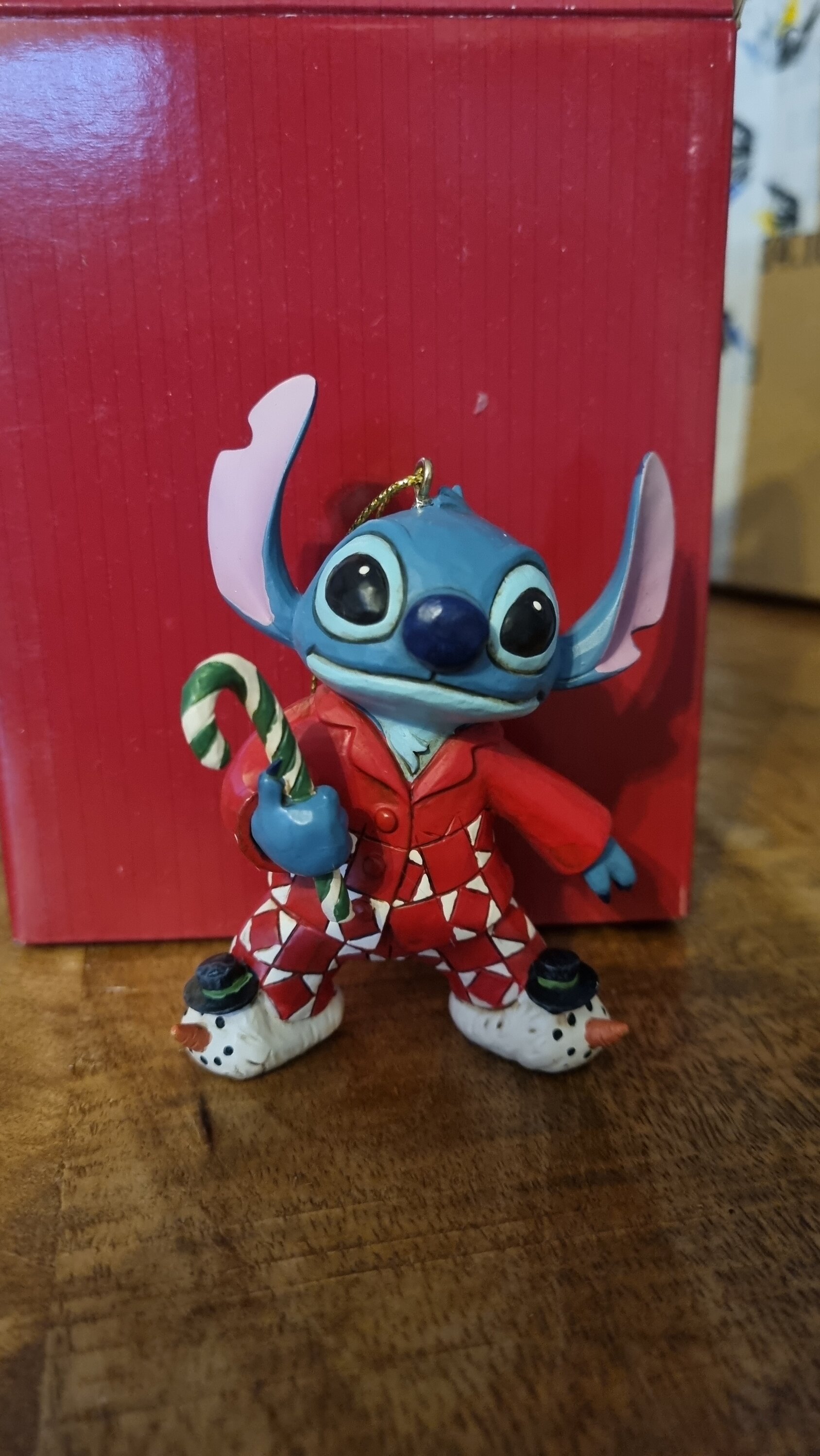 Stitch is ready to discover what Christmas has brought for Christmas morning. This hanging ornament is perfect for decorating your tree this festive season. These figurines are not children's toys. Intended for adult use only.