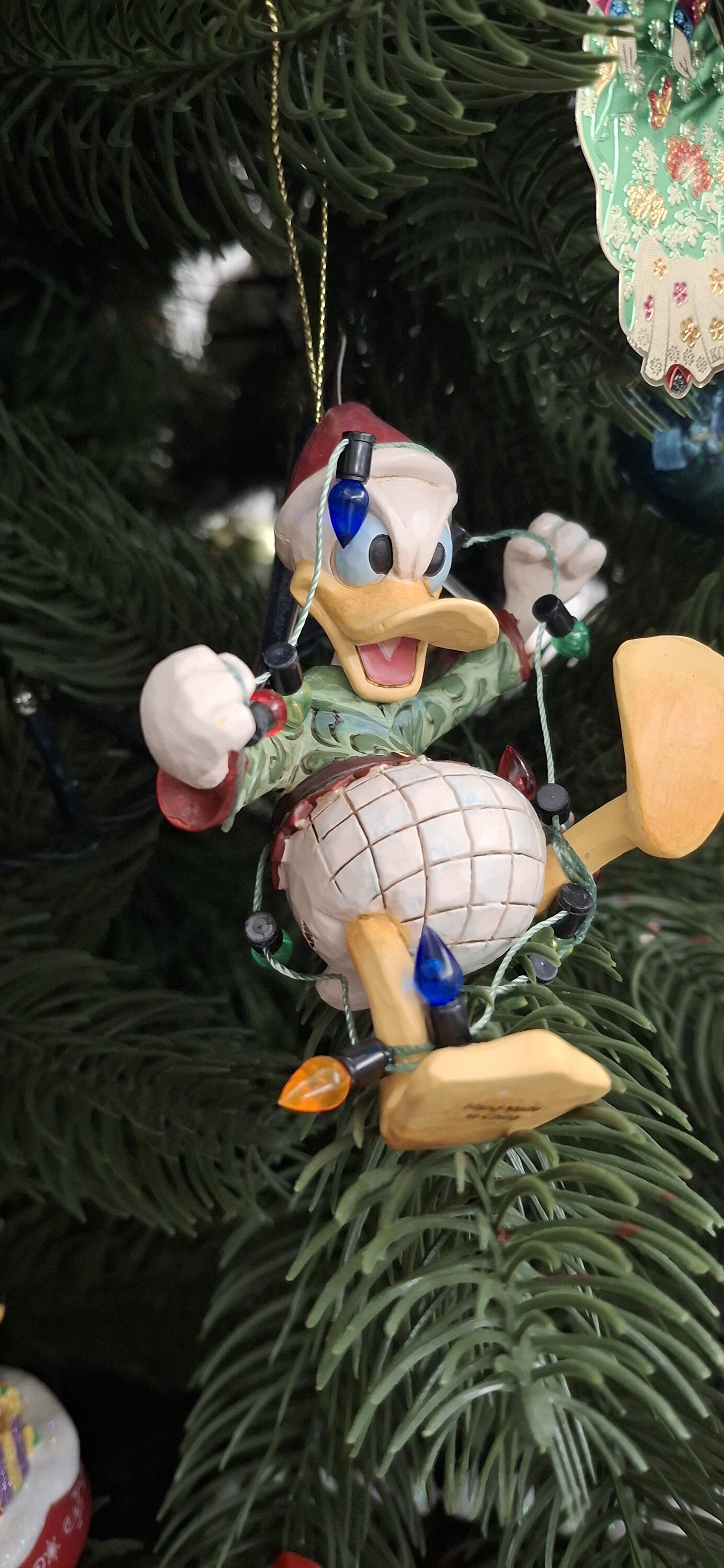 A very cute ornament, featuring Donald Duck trying to free himself from the Christmas lights. Beautifully crafted, as always. It'll be my new addition to the Christmas tree.