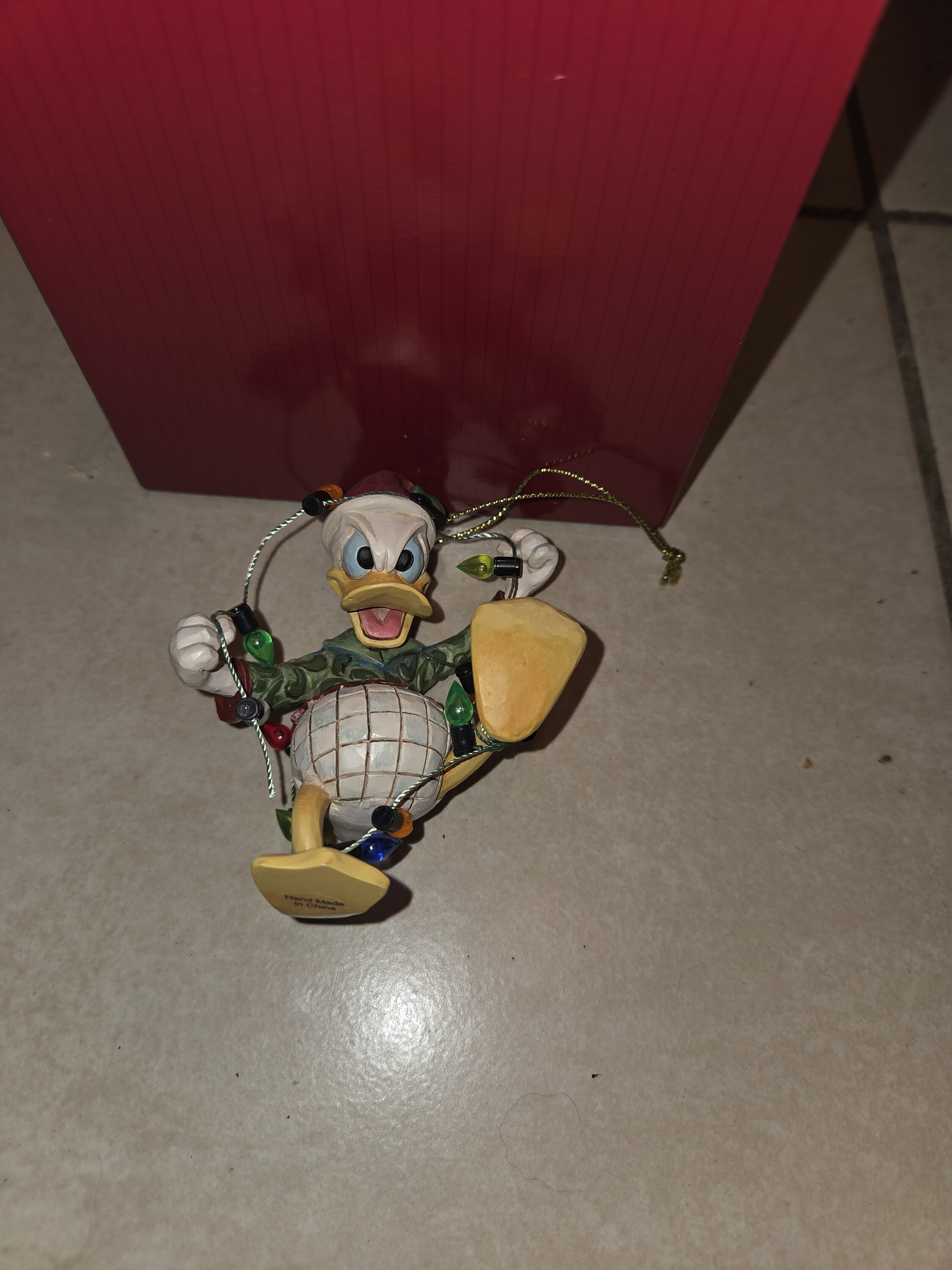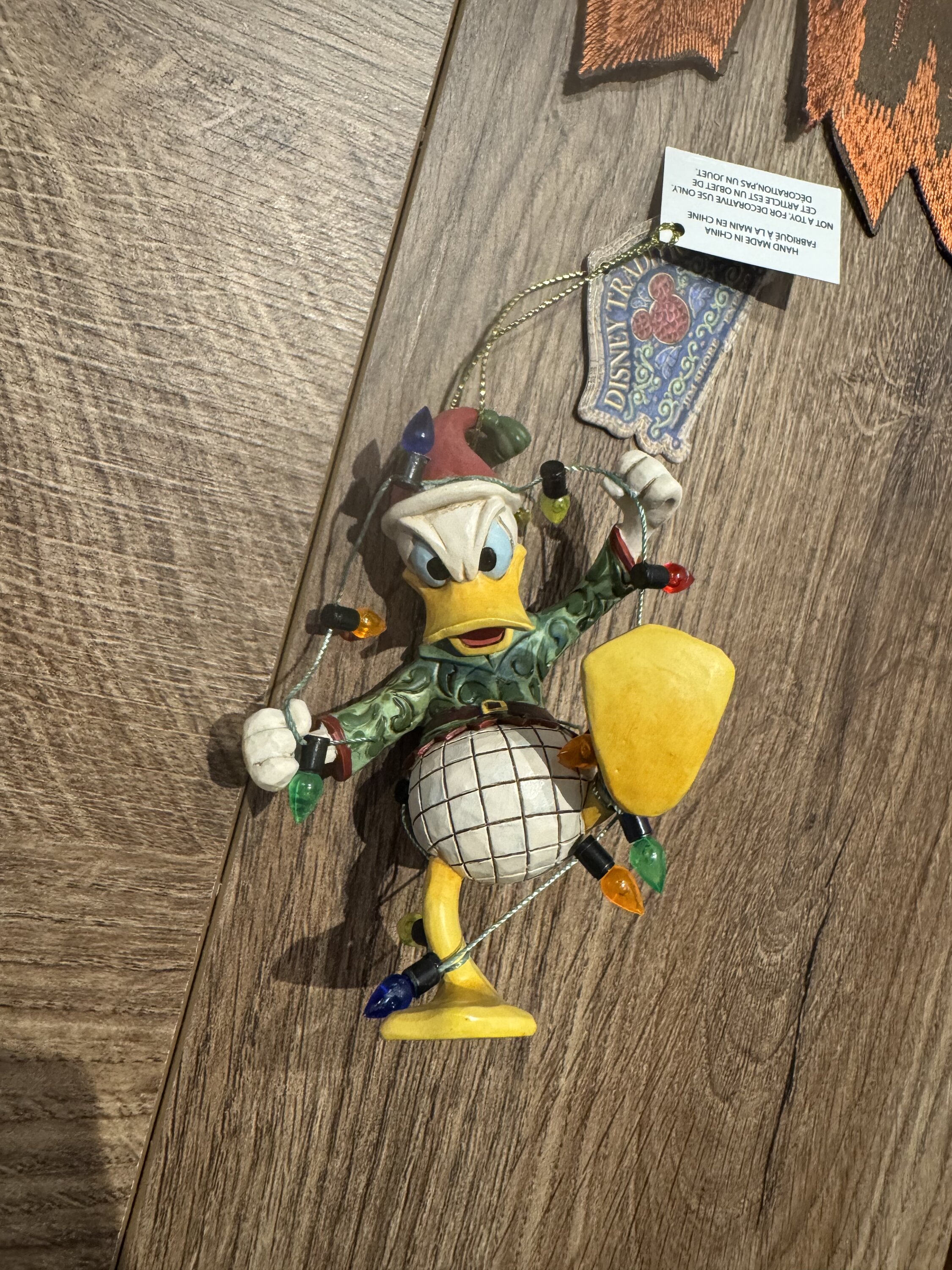 A very cute ornament, featuring Donald Duck trying to free himself from the Christmas lights. Beautifully crafted, as always. It'll be my new addition to the Christmas tree.
