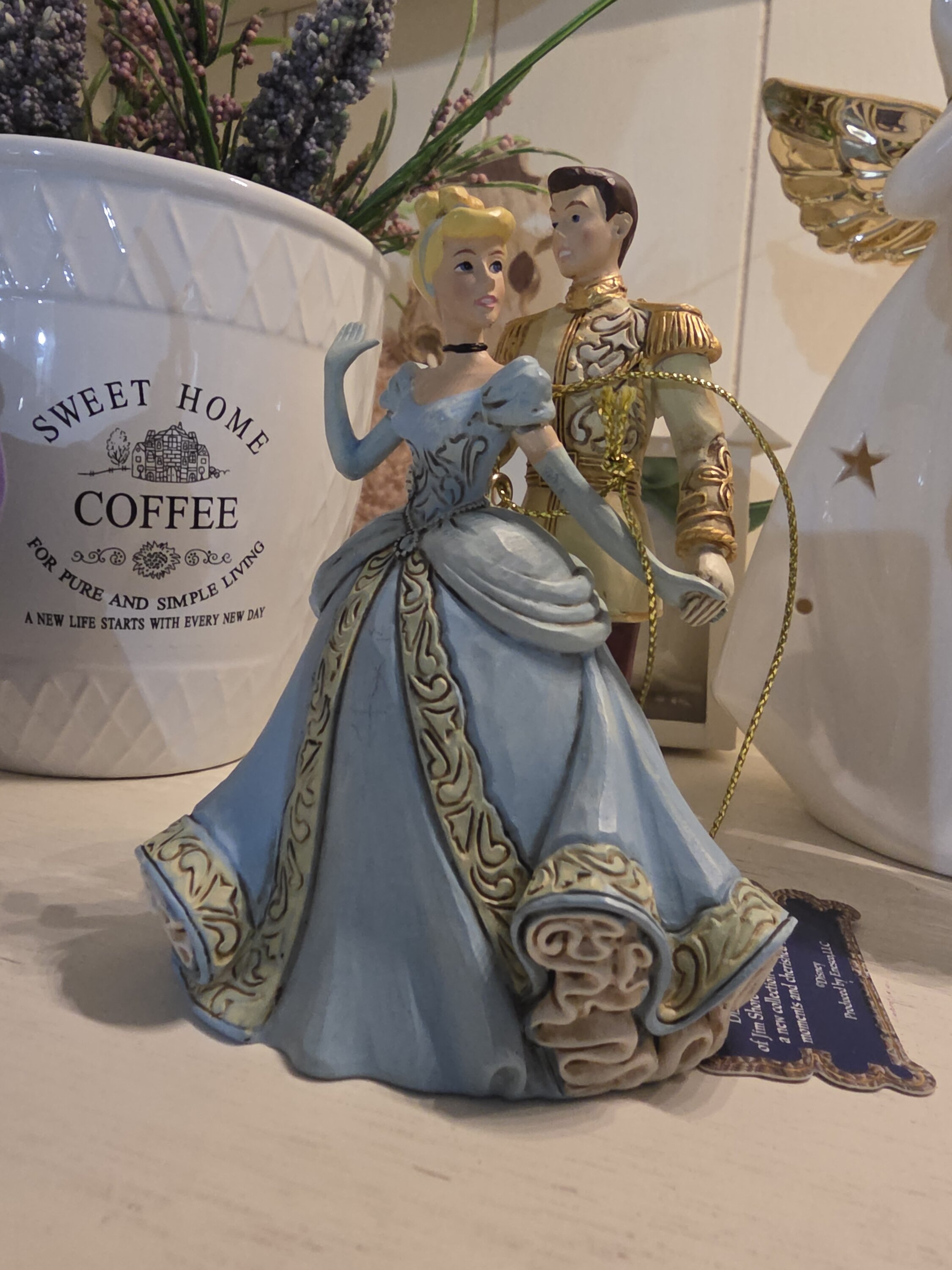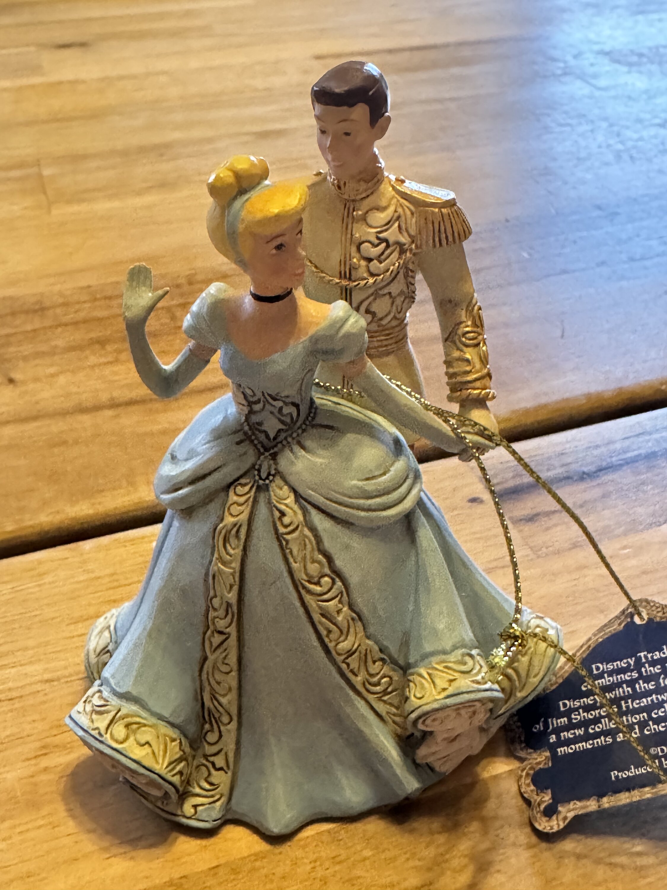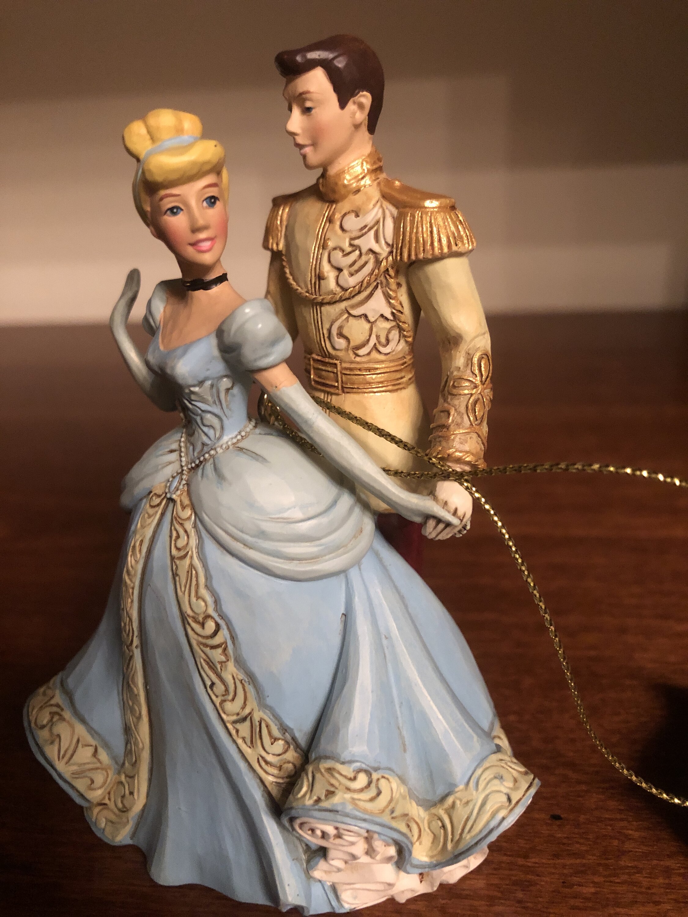 Cinderella and the Prince: more beautiful in person than in the photo. Although the figurine is designed to be hung, I loved it because it can be placed on a surface without falling.
