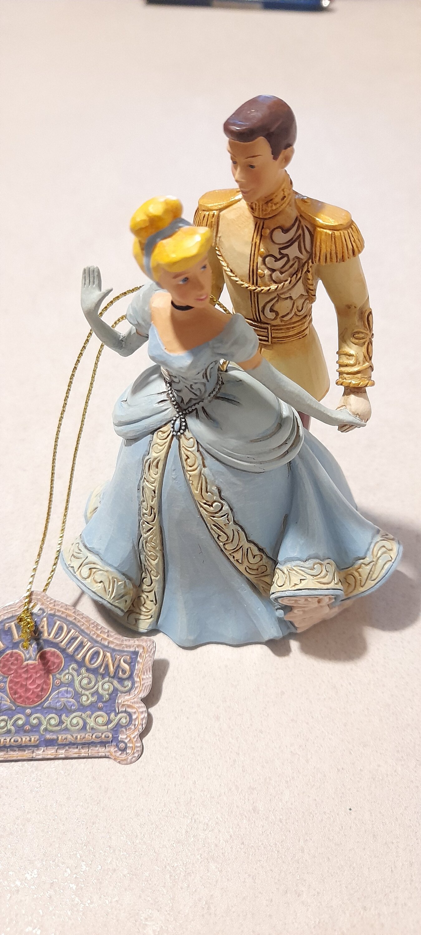 Cinderella and her Prince are the perfect couple to adorn your Christmas tree. Handcrafted and meticulously painted, they are part of Jim Shore 's Disney Traditions collection. These figurines are not children's toys. Intended for adult use only.