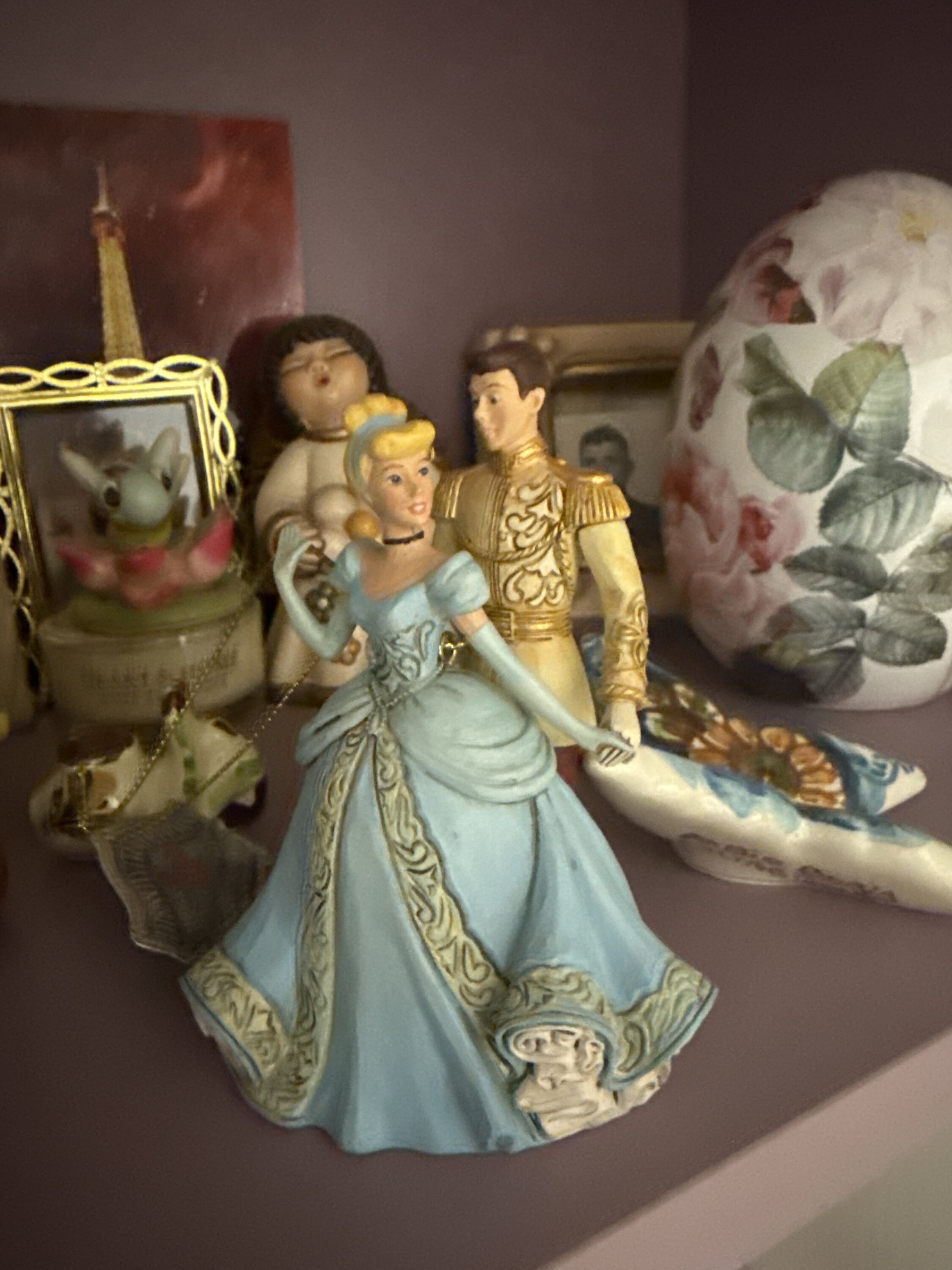 Cinderella and the Prince: more beautiful in person than in the photo. Although the figurine is designed to be hung, I loved it because it can be placed on a surface without falling.