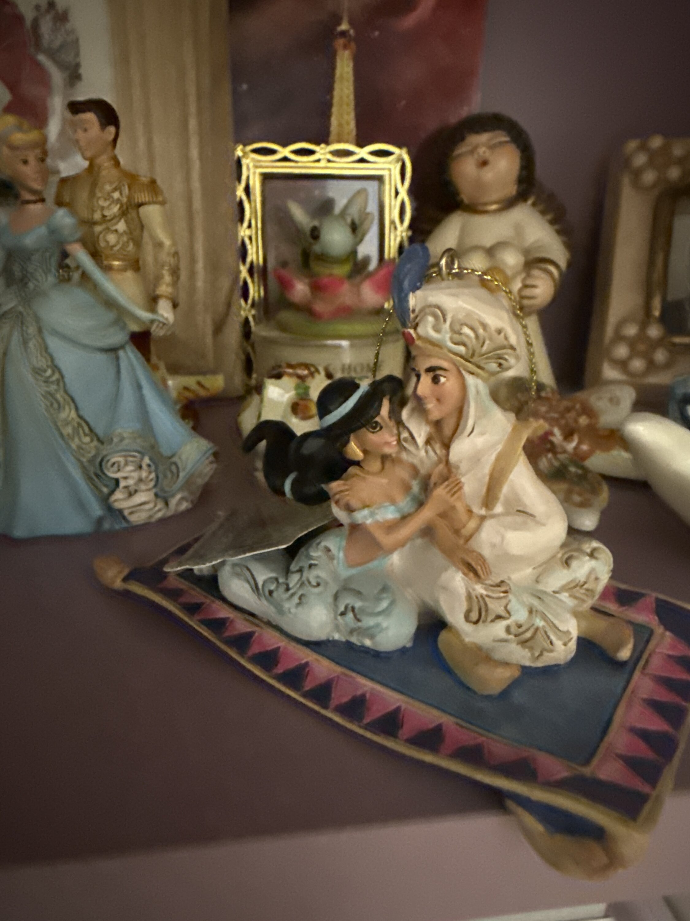 Aladdin and Jasmine pendant from Jim Shore's Disney Traditions collection. These figurines are not toys. For adult use only.