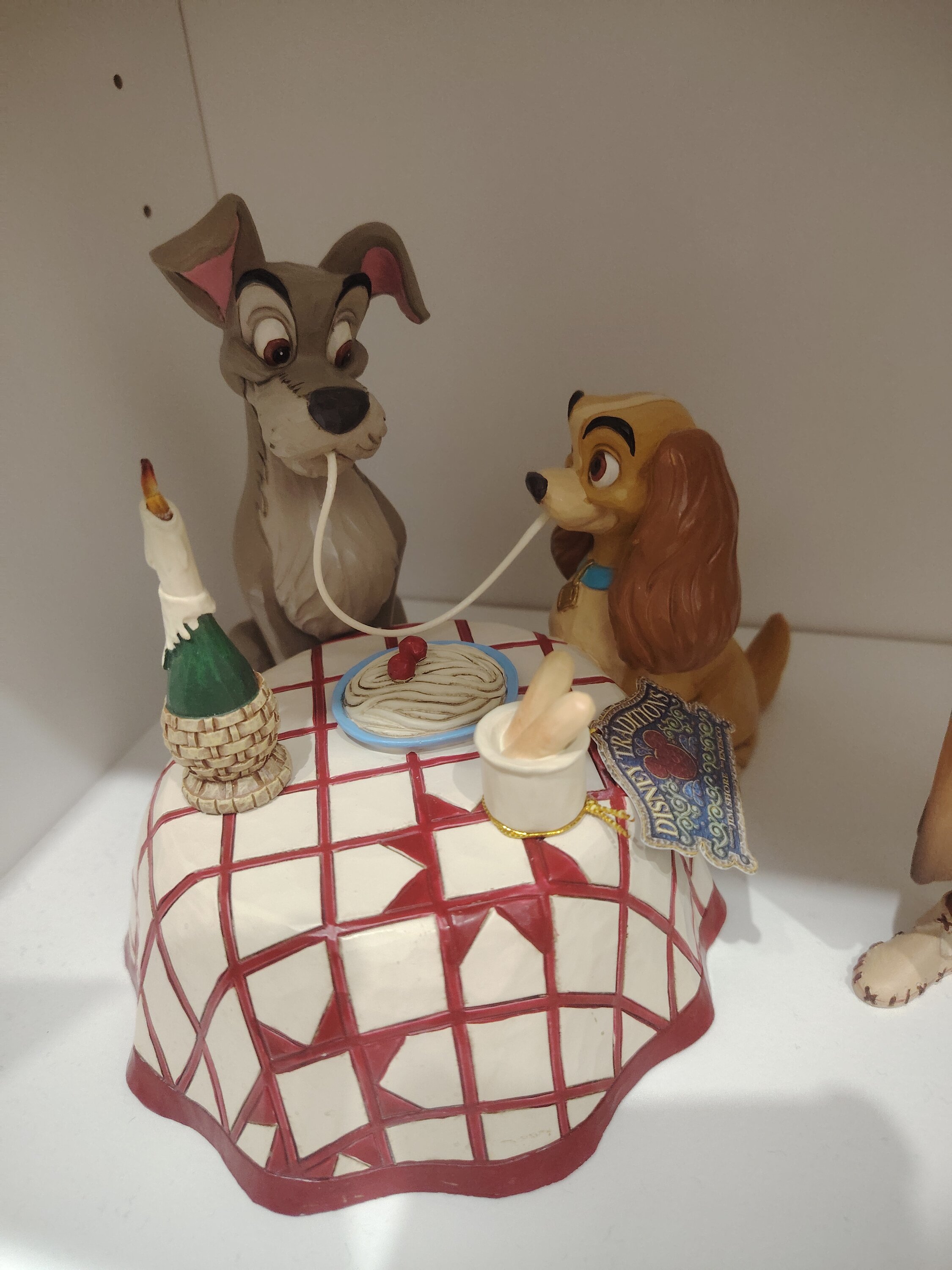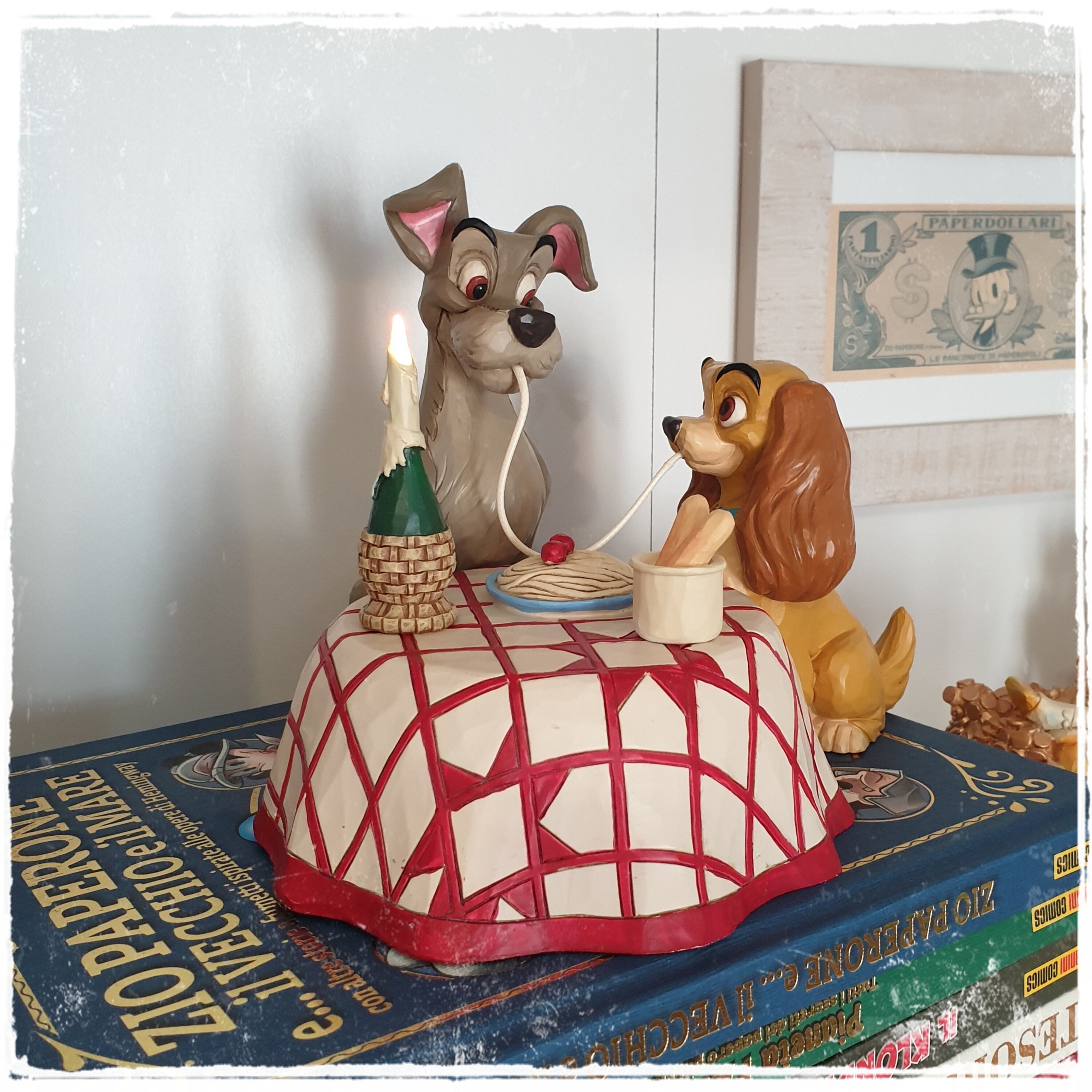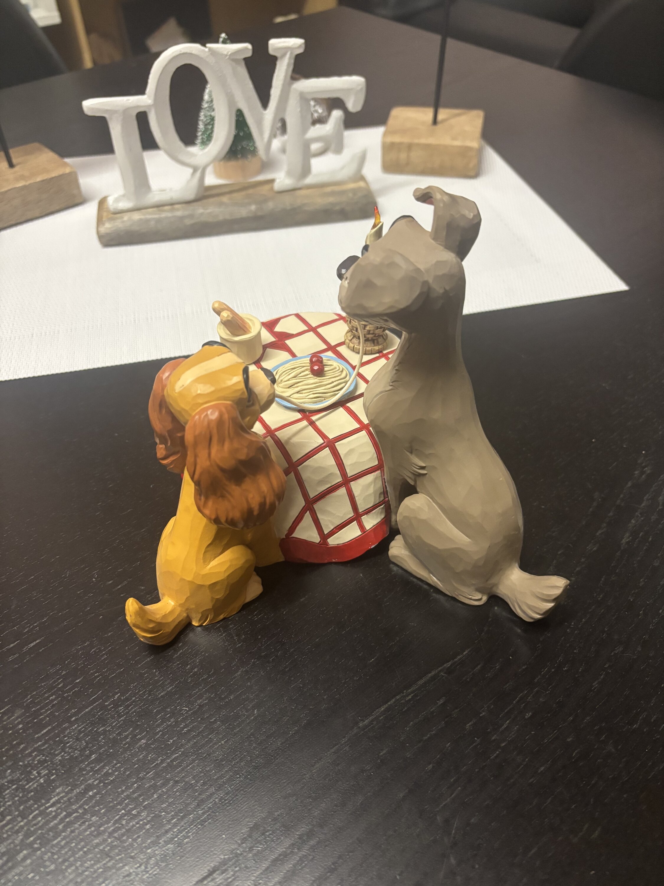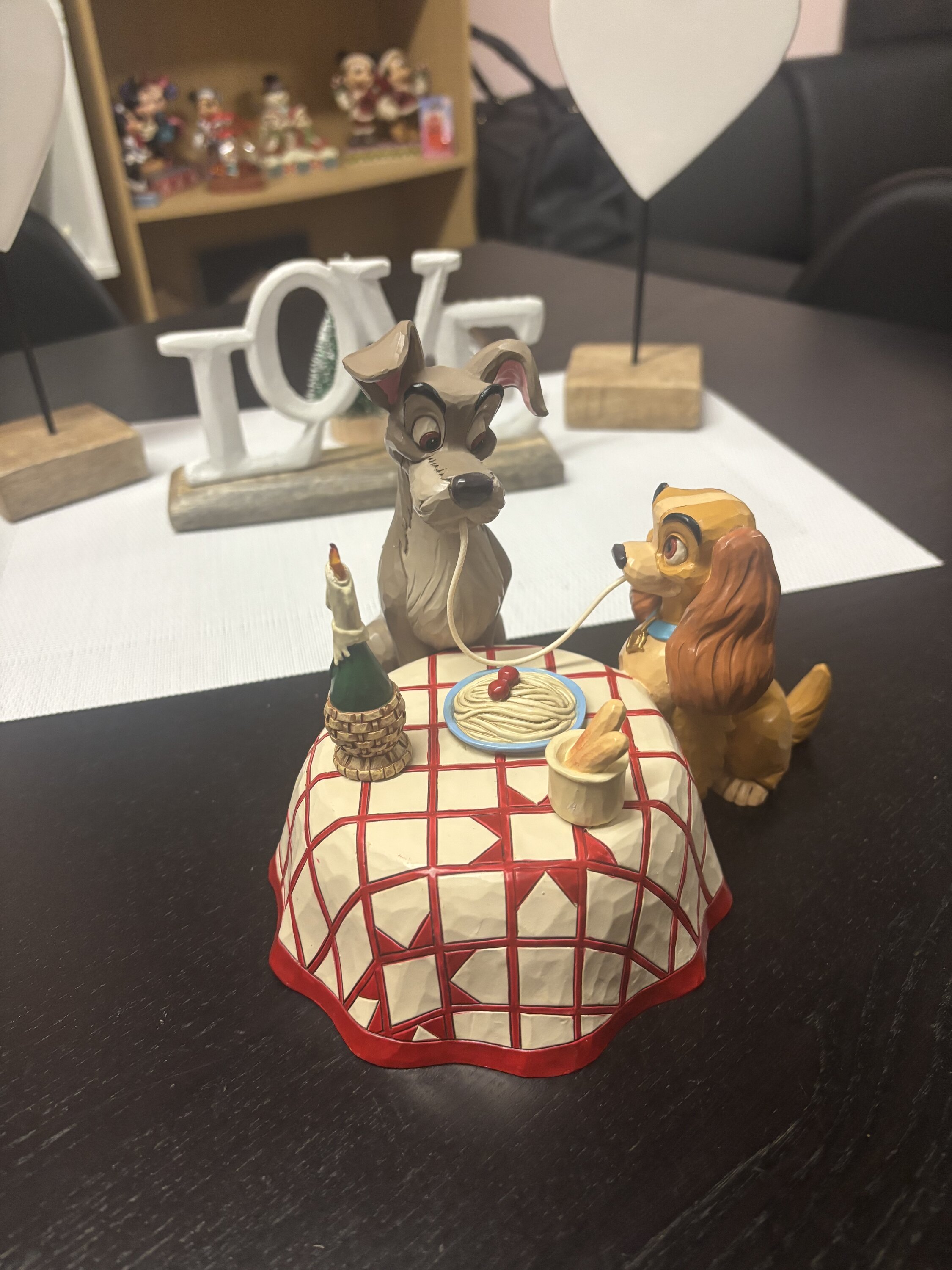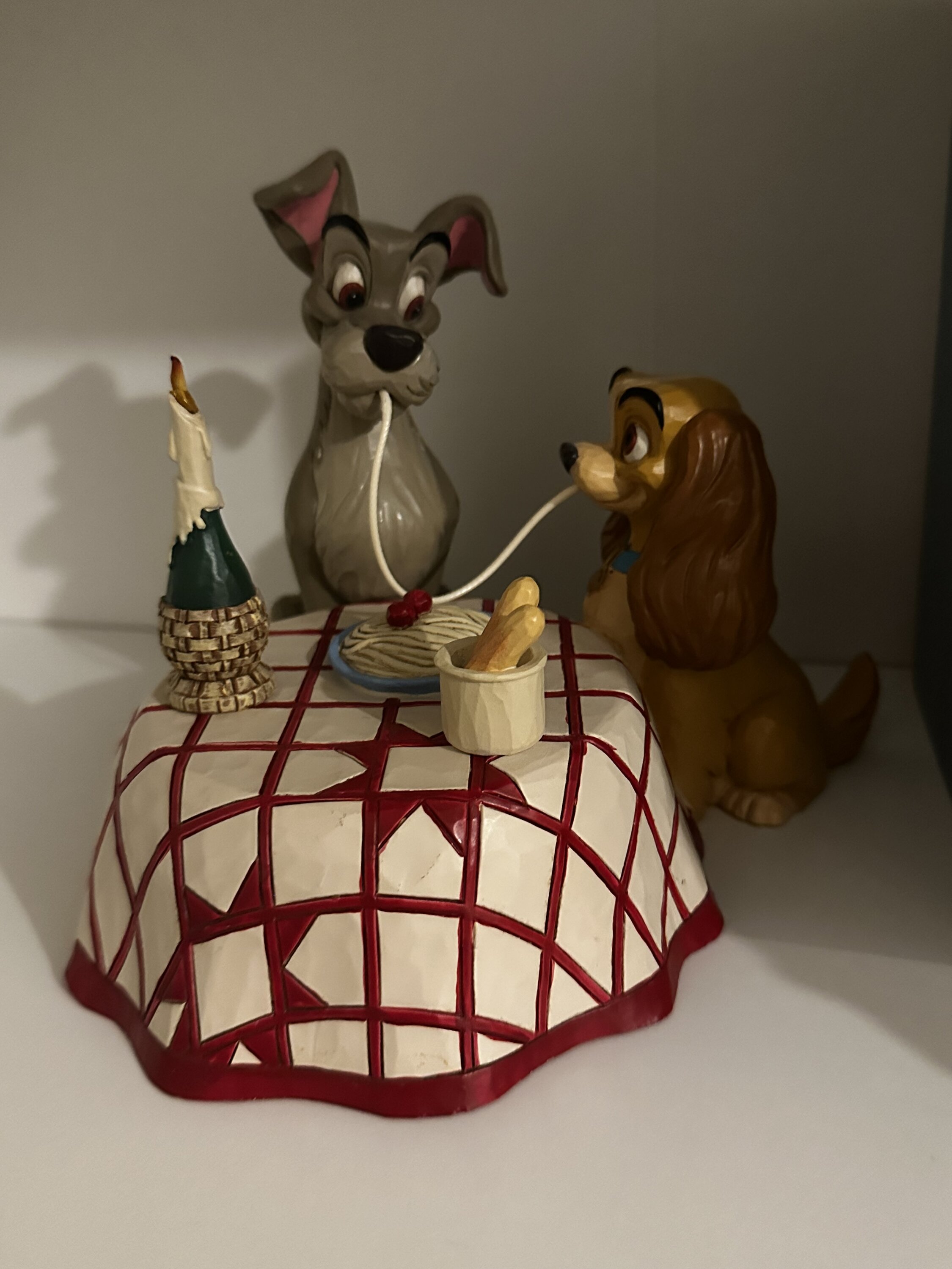 A beautiful figurine depicting the iconic scene from the movie Lady and the Tramp at the Italian restaurant ♥️. We love it. 🥰