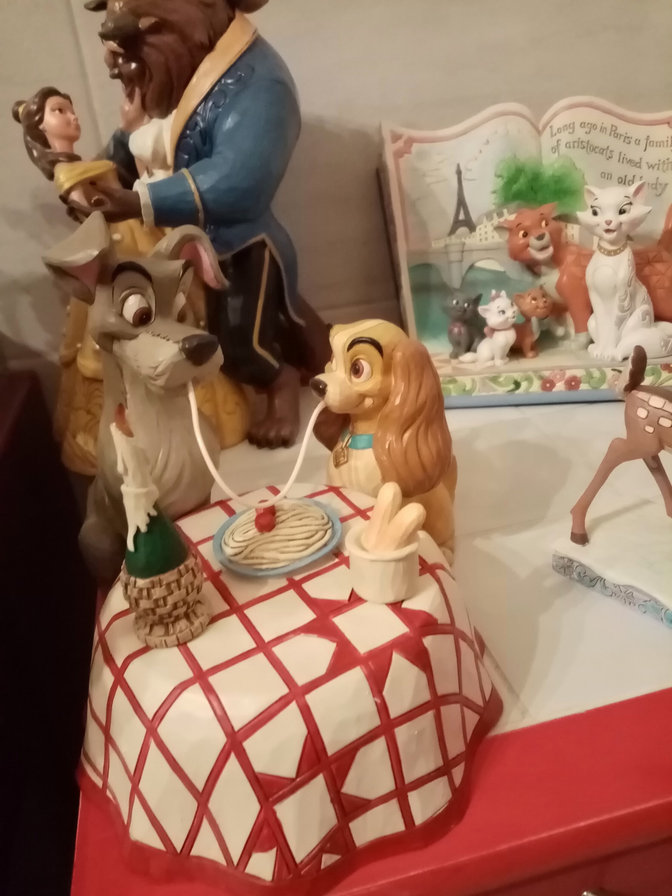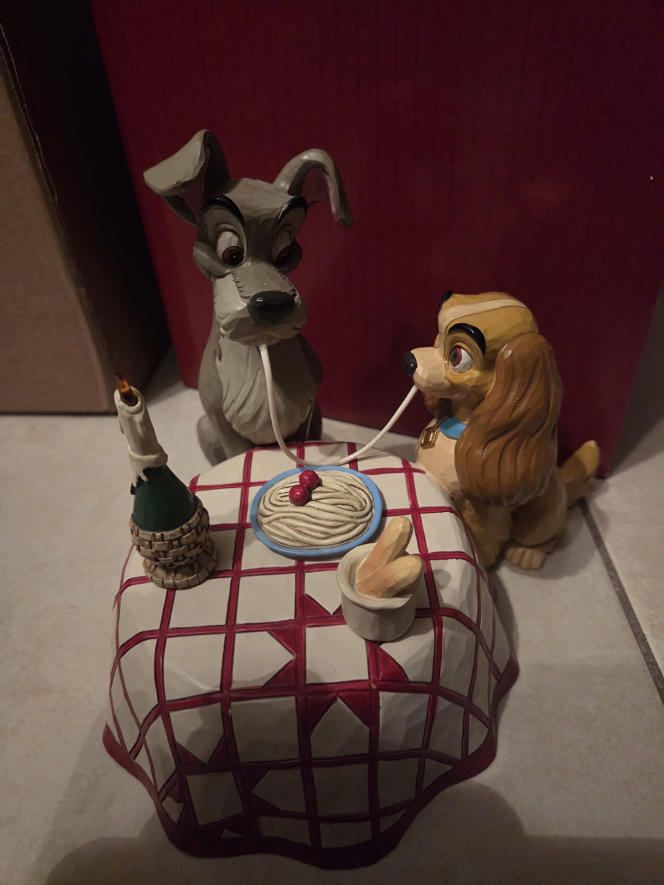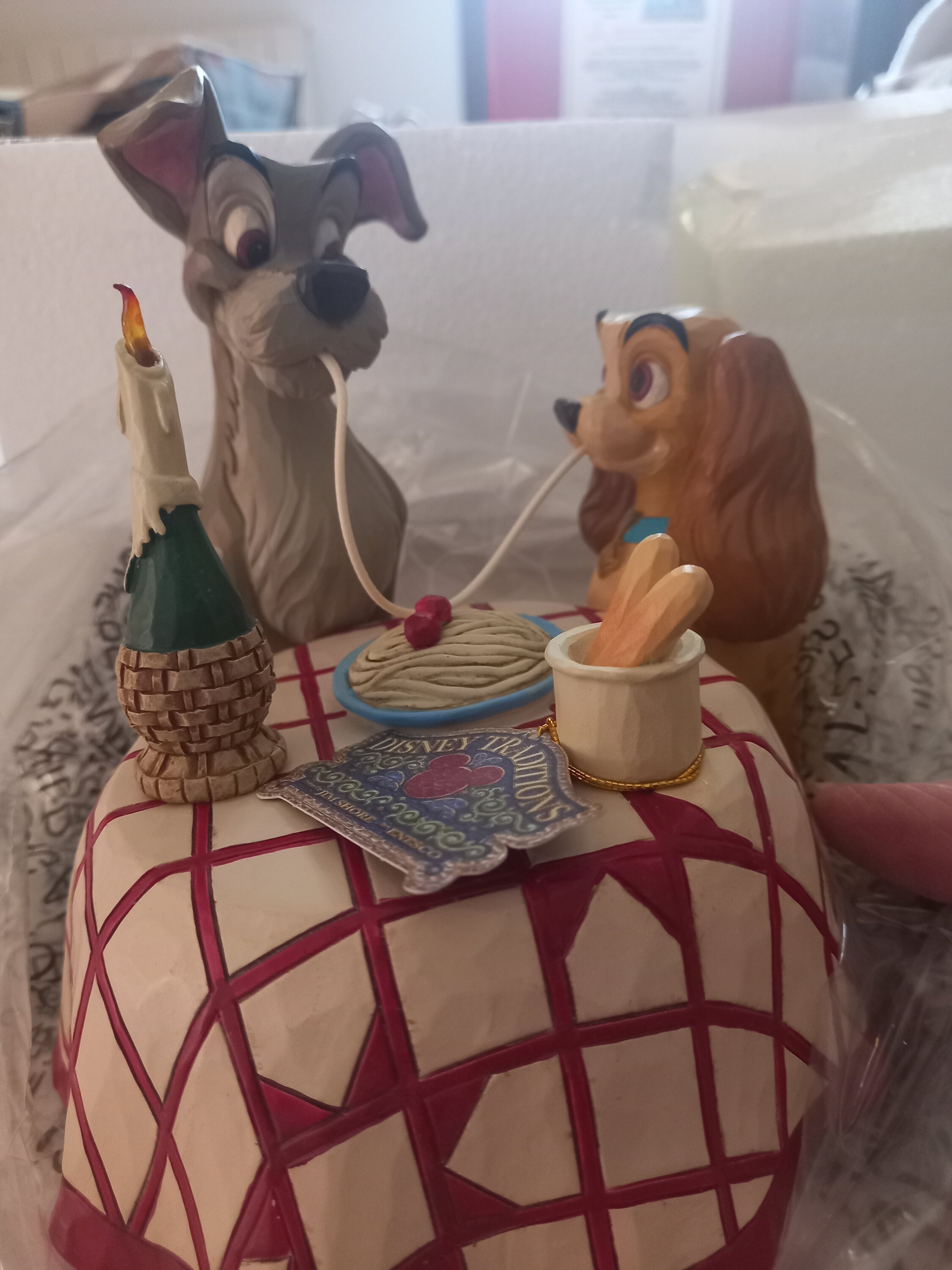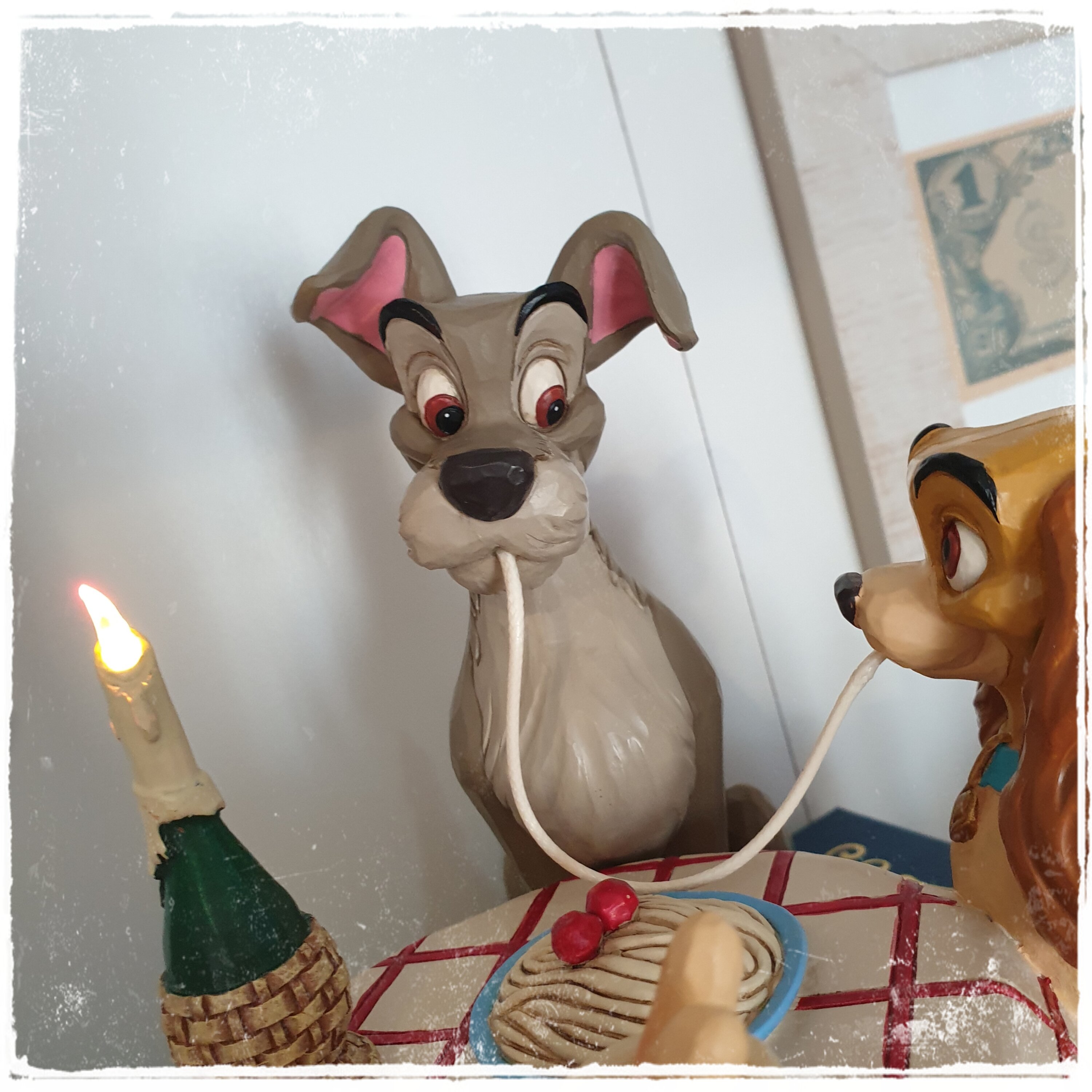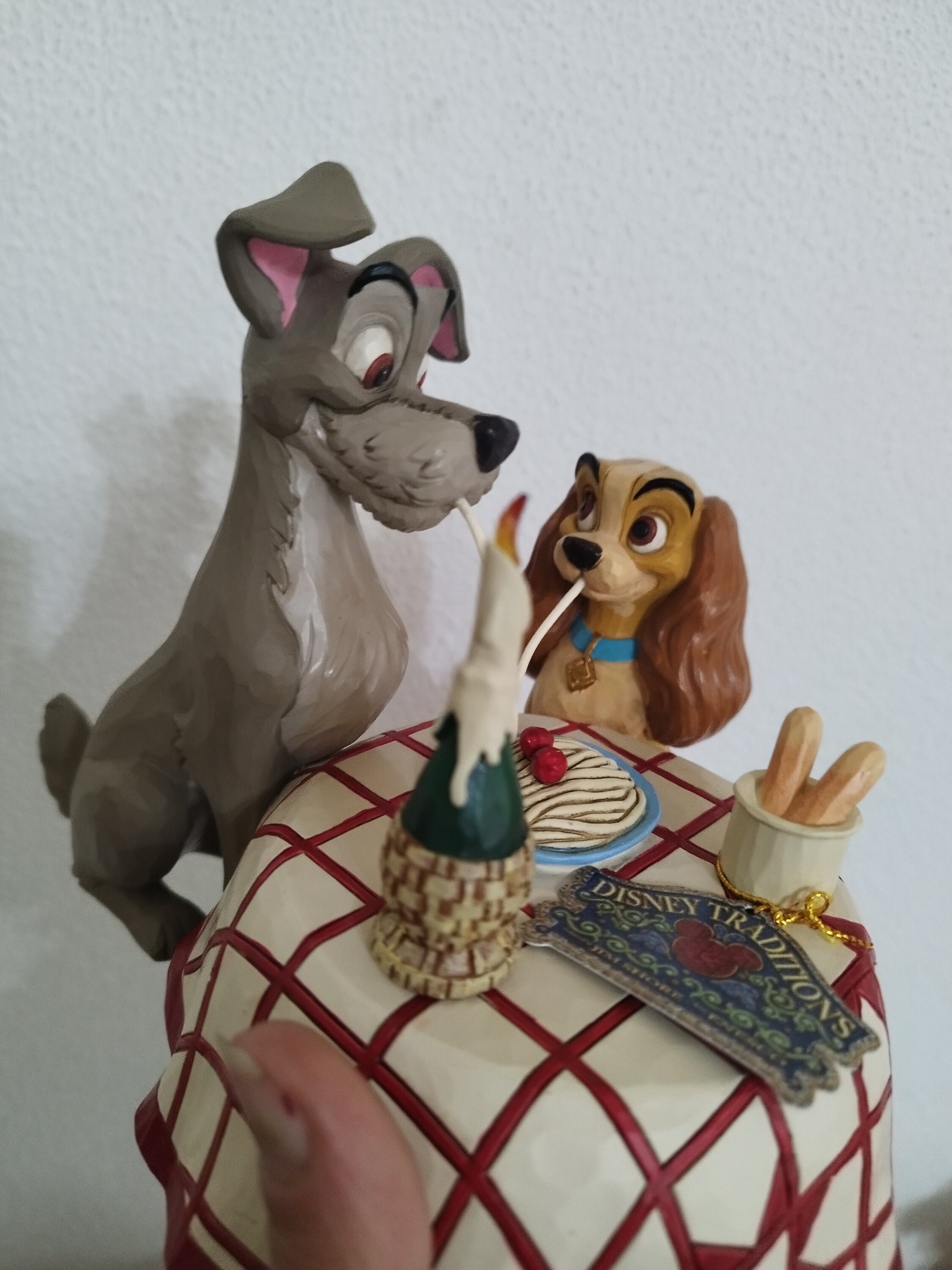 A beautiful figurine depicting the iconic scene from the movie Lady and the Tramp at the Italian restaurant ♥️. We love it. 🥰
