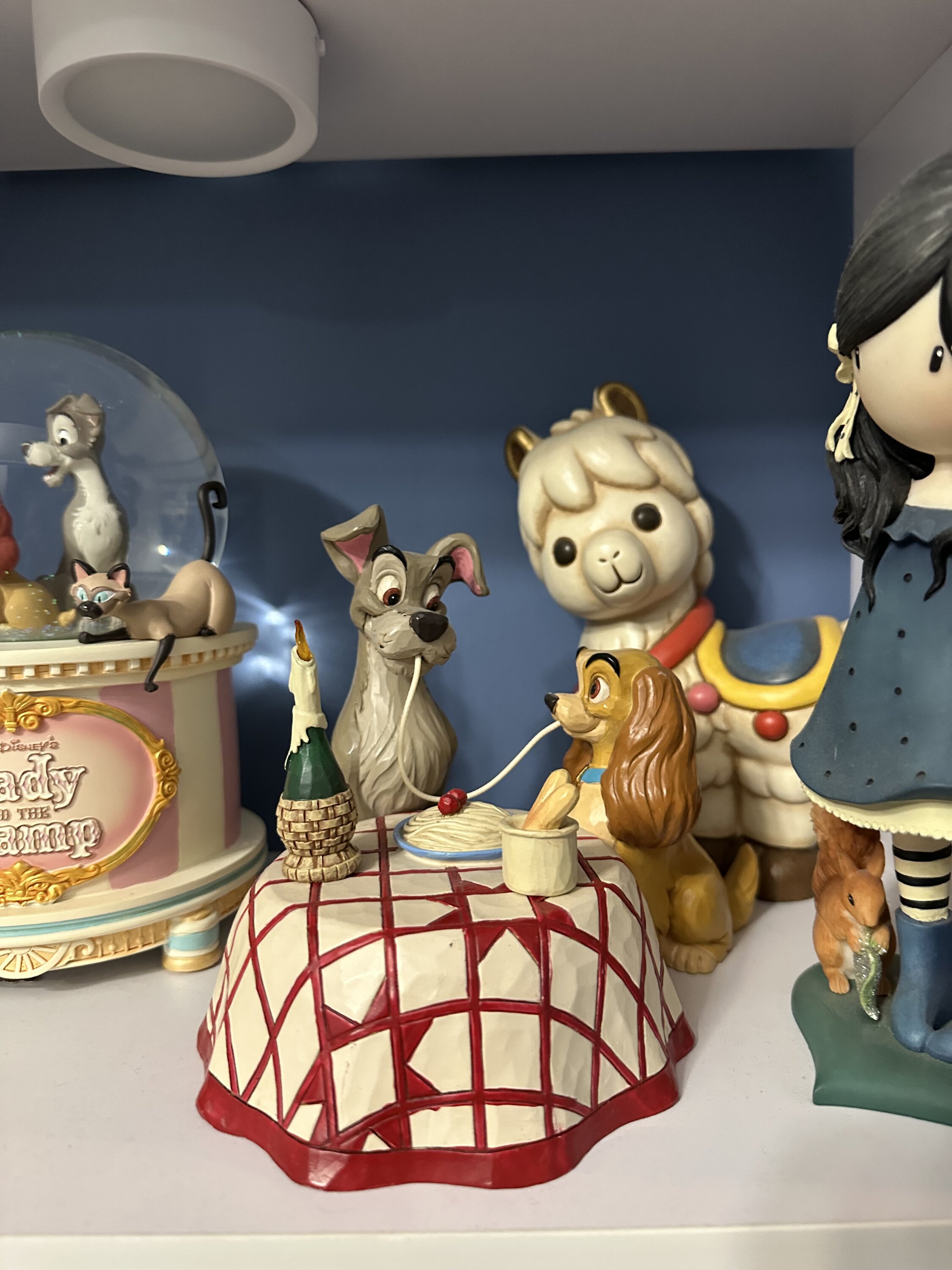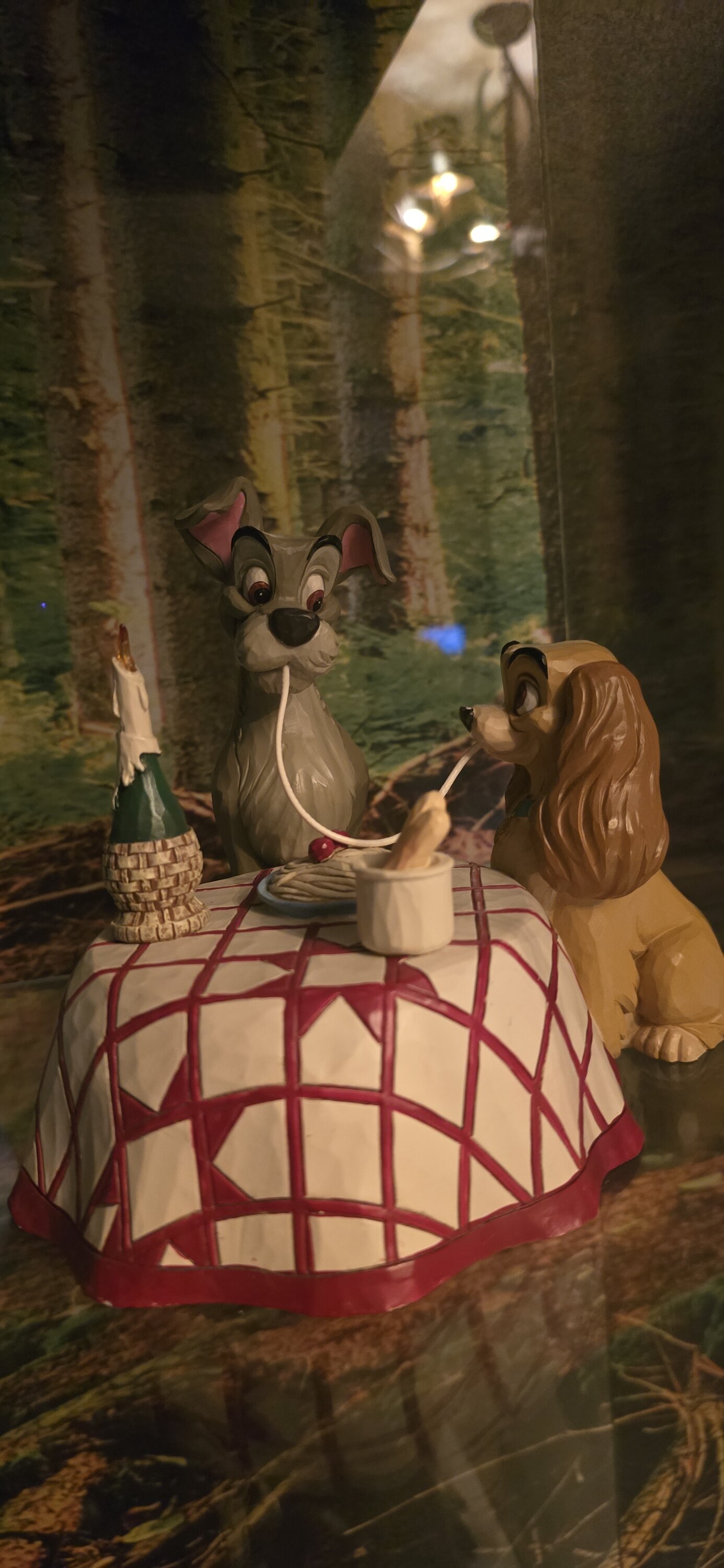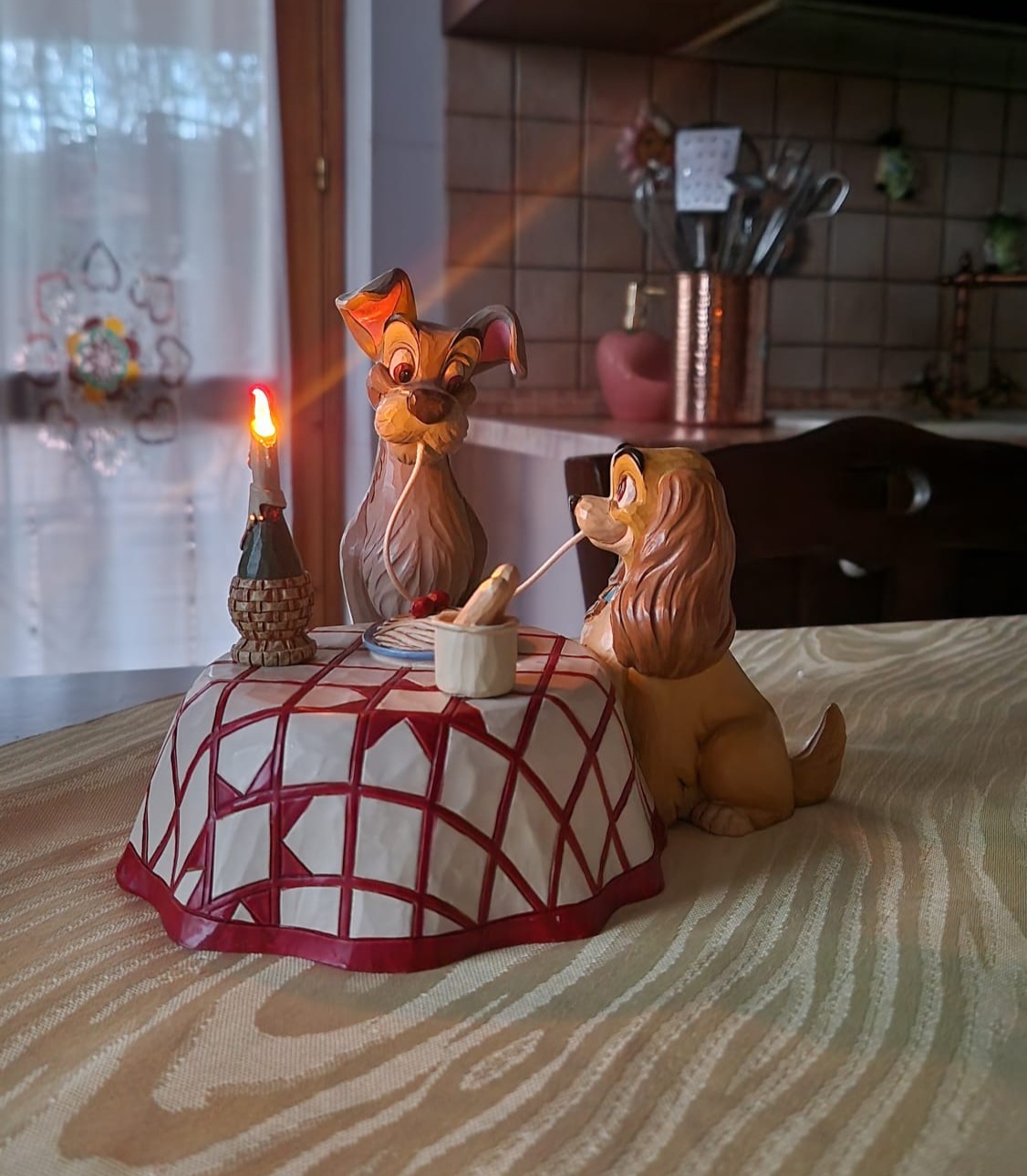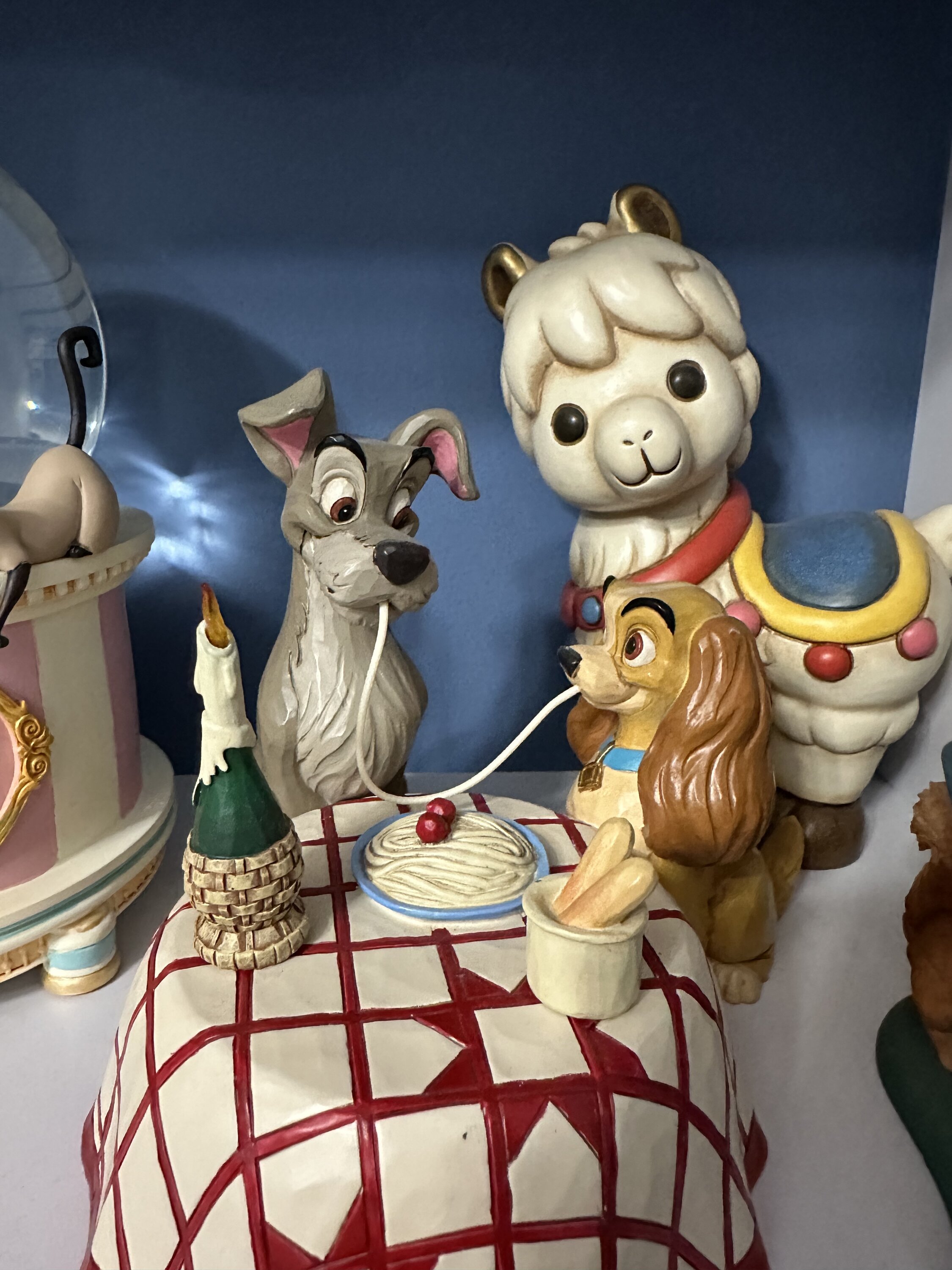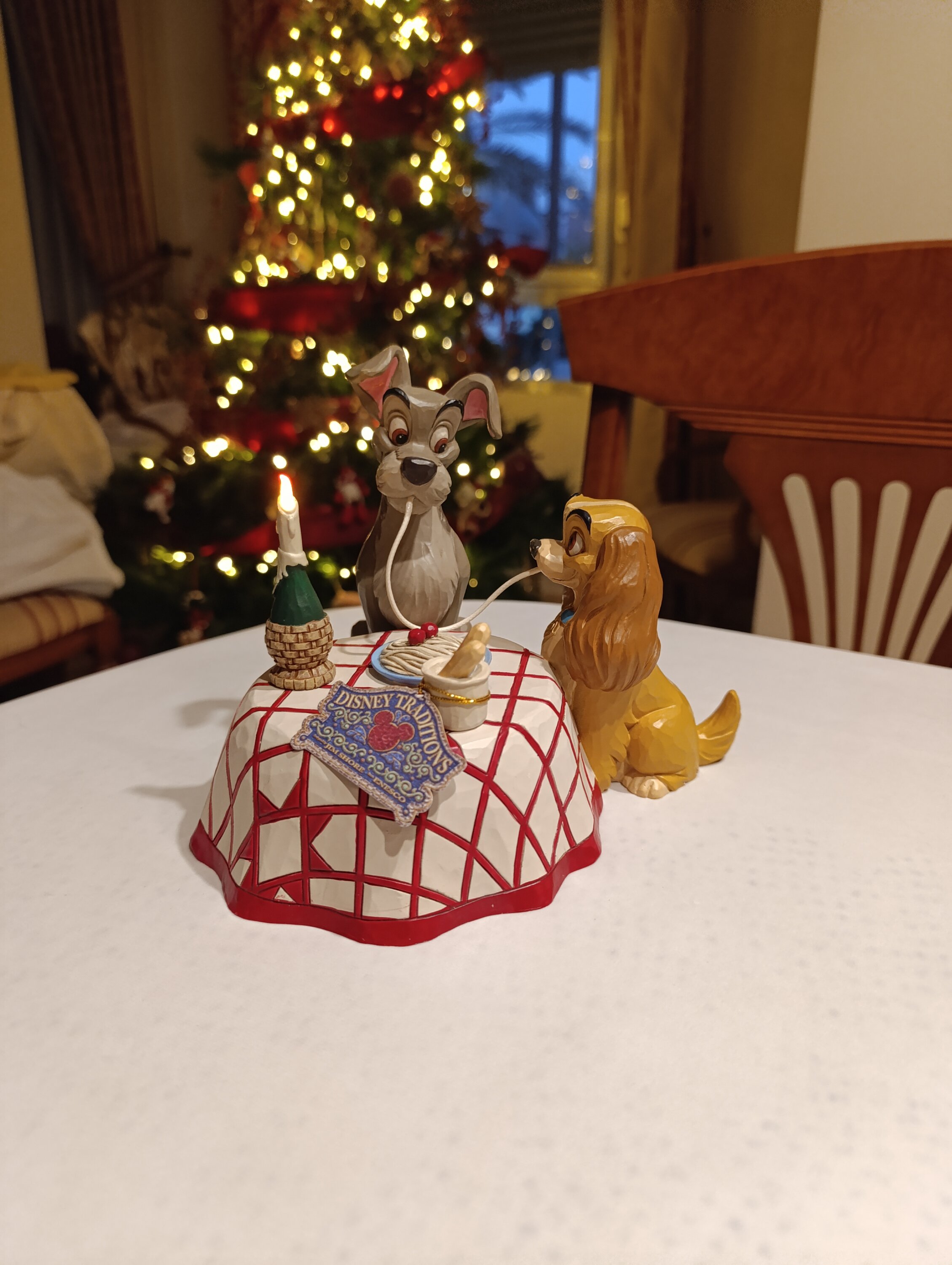 A beautiful figurine depicting the iconic scene from the movie Lady and the Tramp at the Italian restaurant ♥️. We love it. 🥰