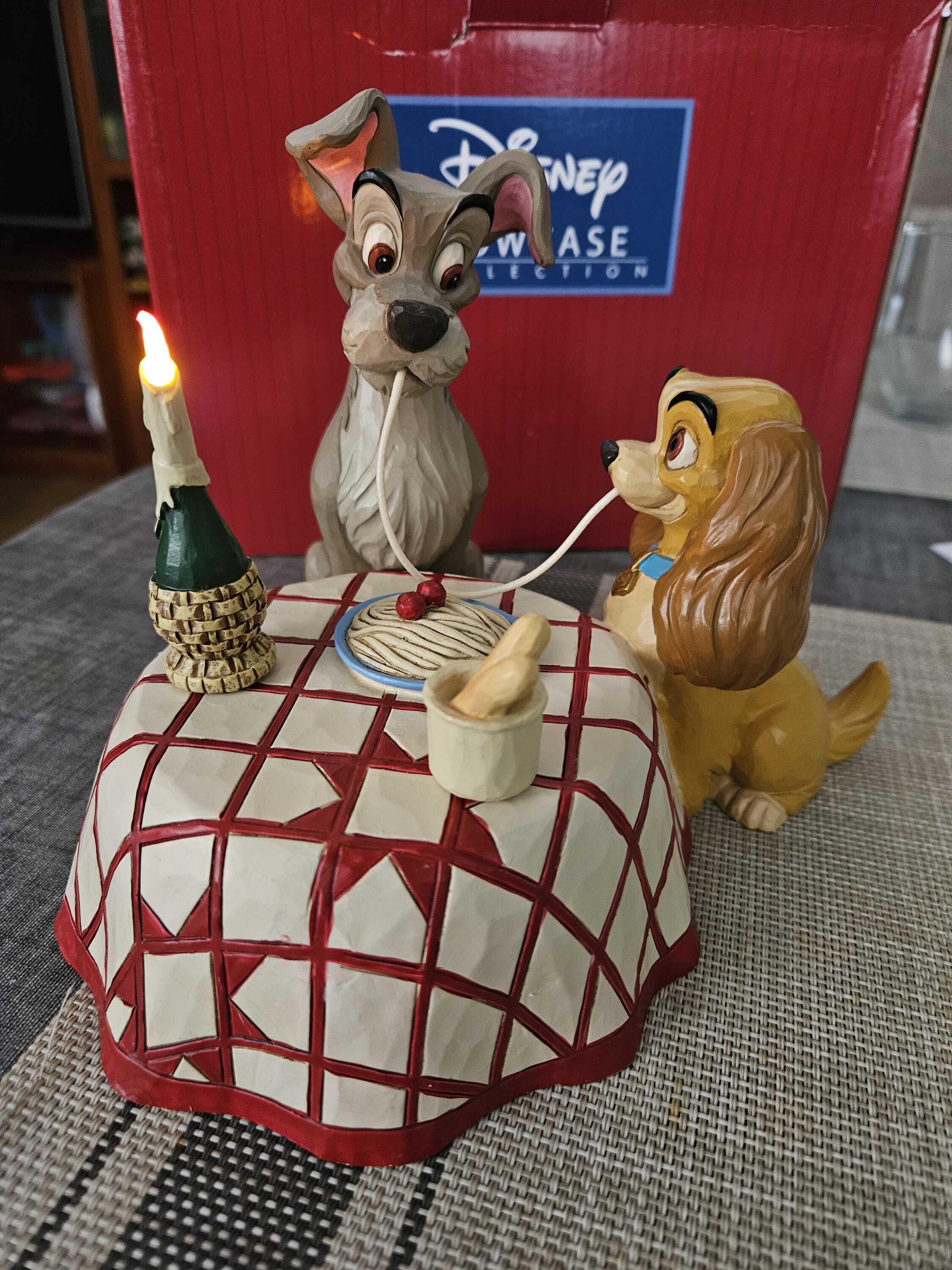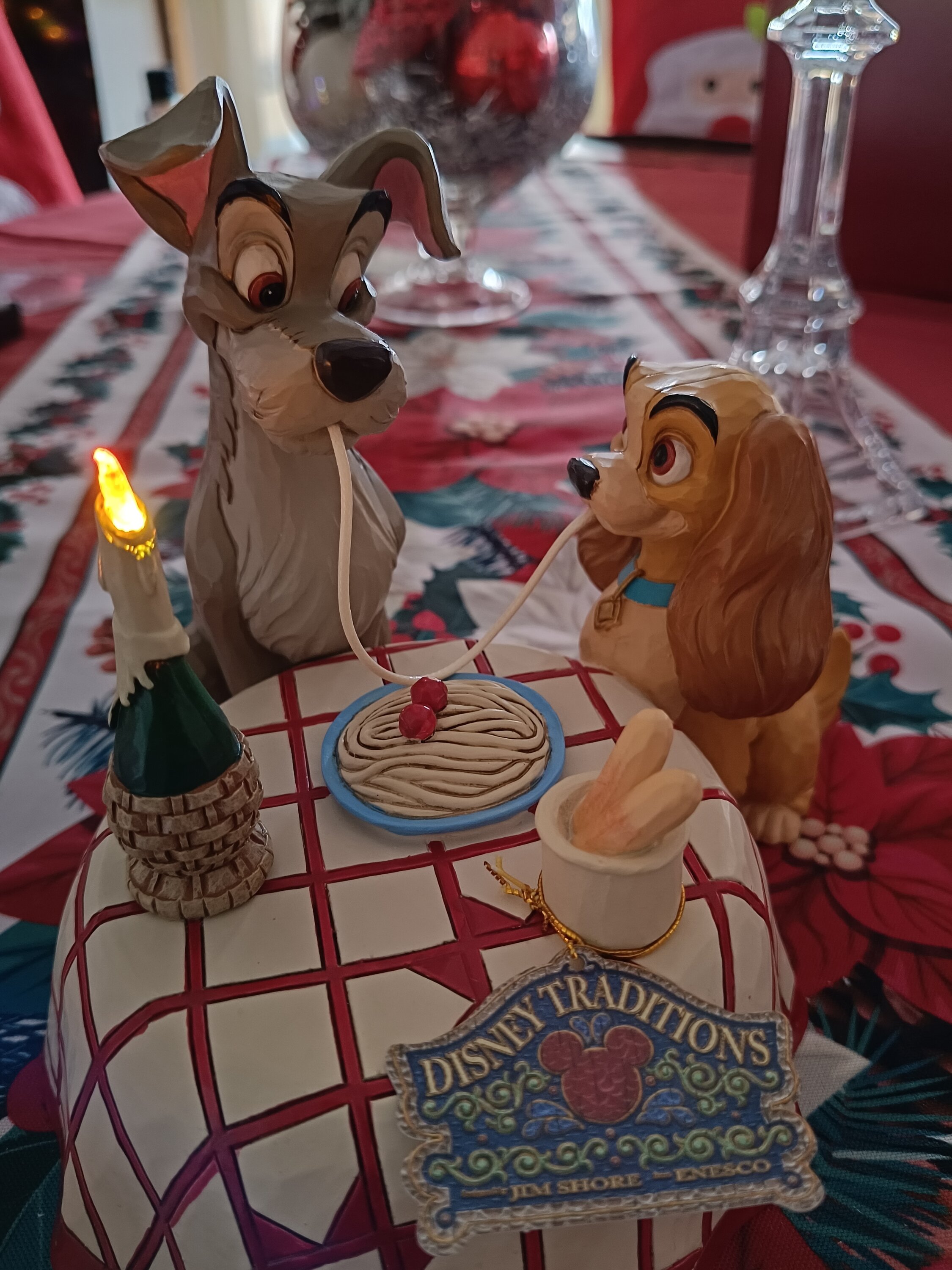 Très belle figurine représentant la scène mythique du film La Belle et Clochard au restaurant italien ♥️. On adore.🥰