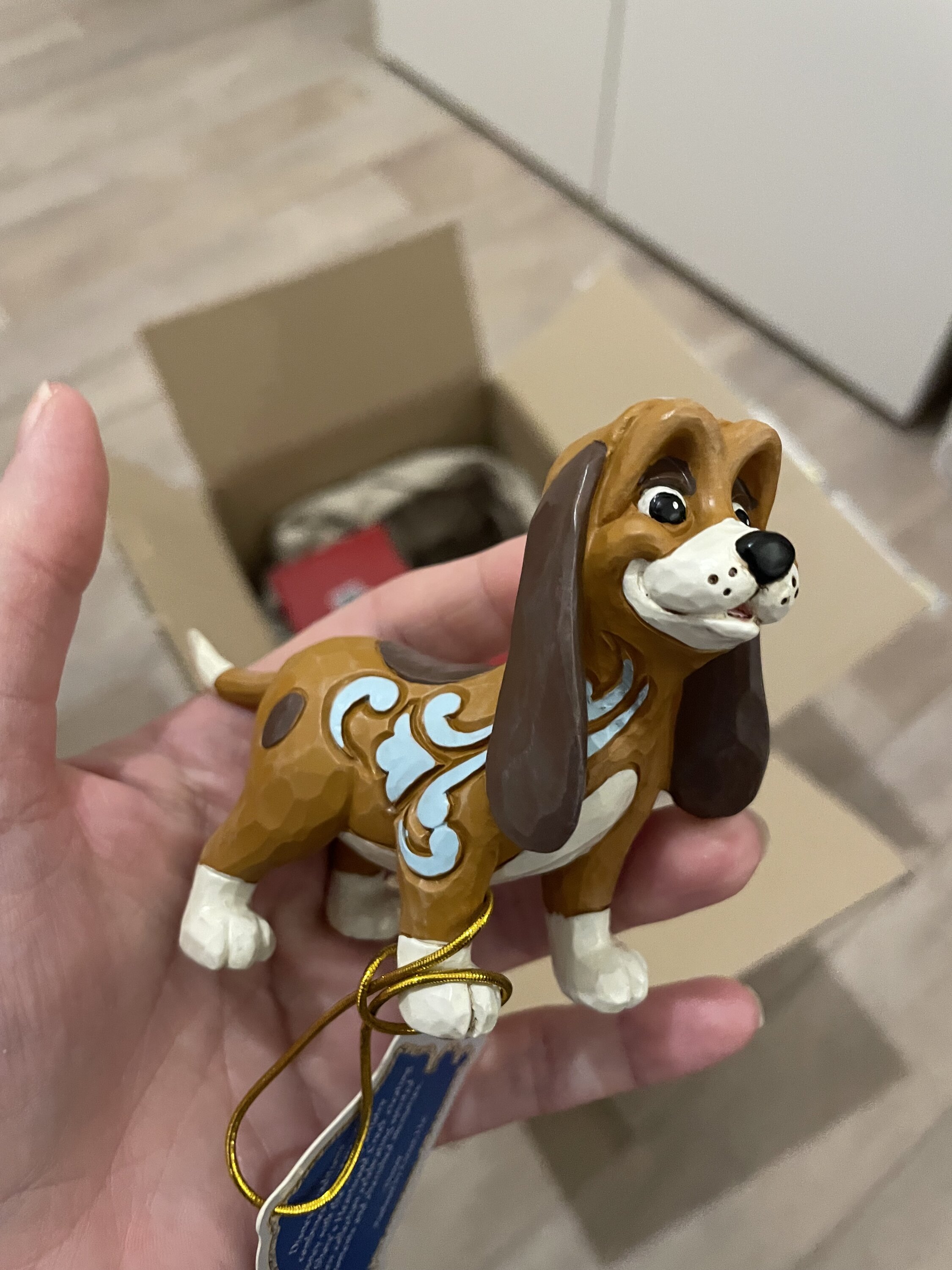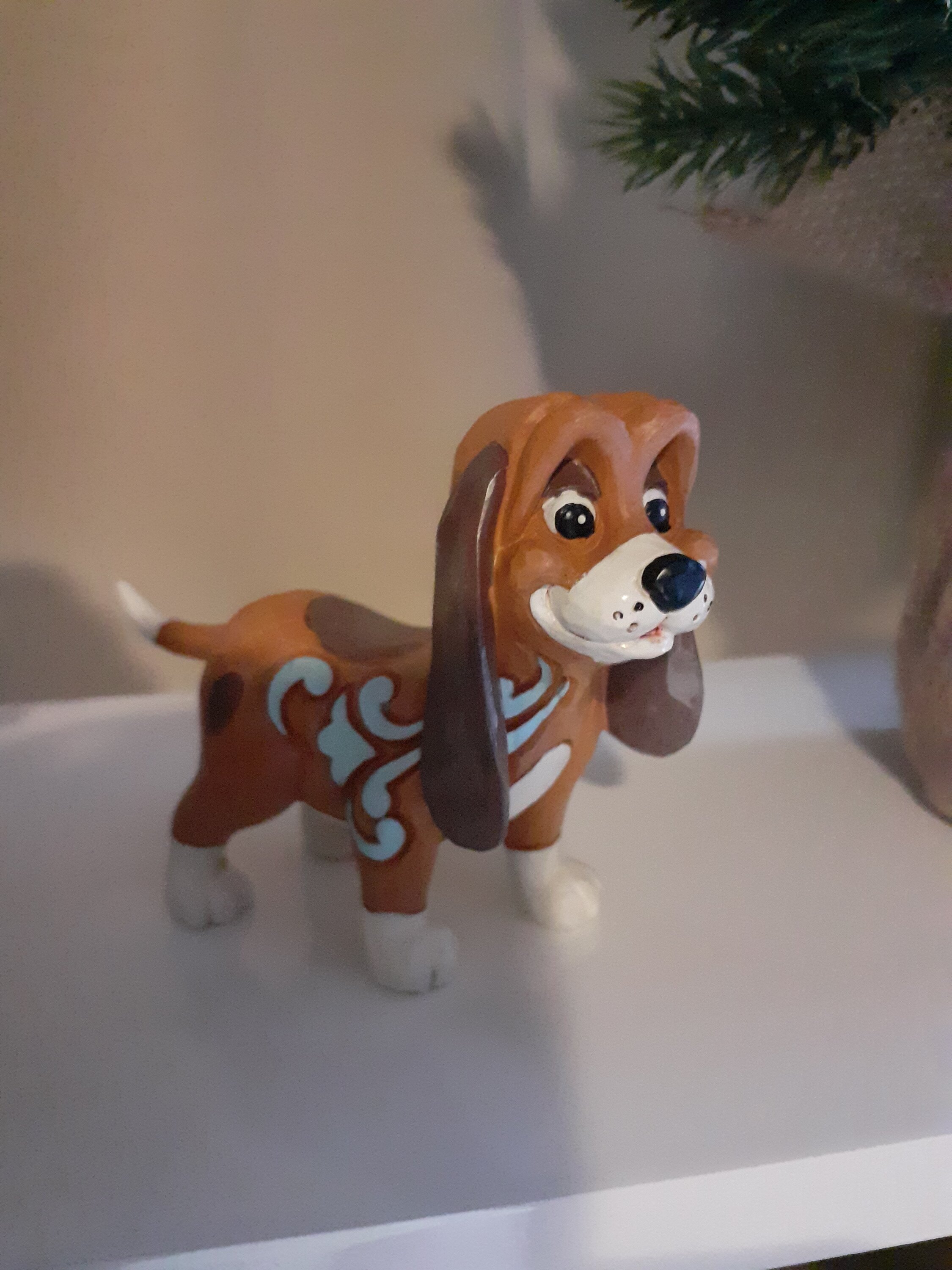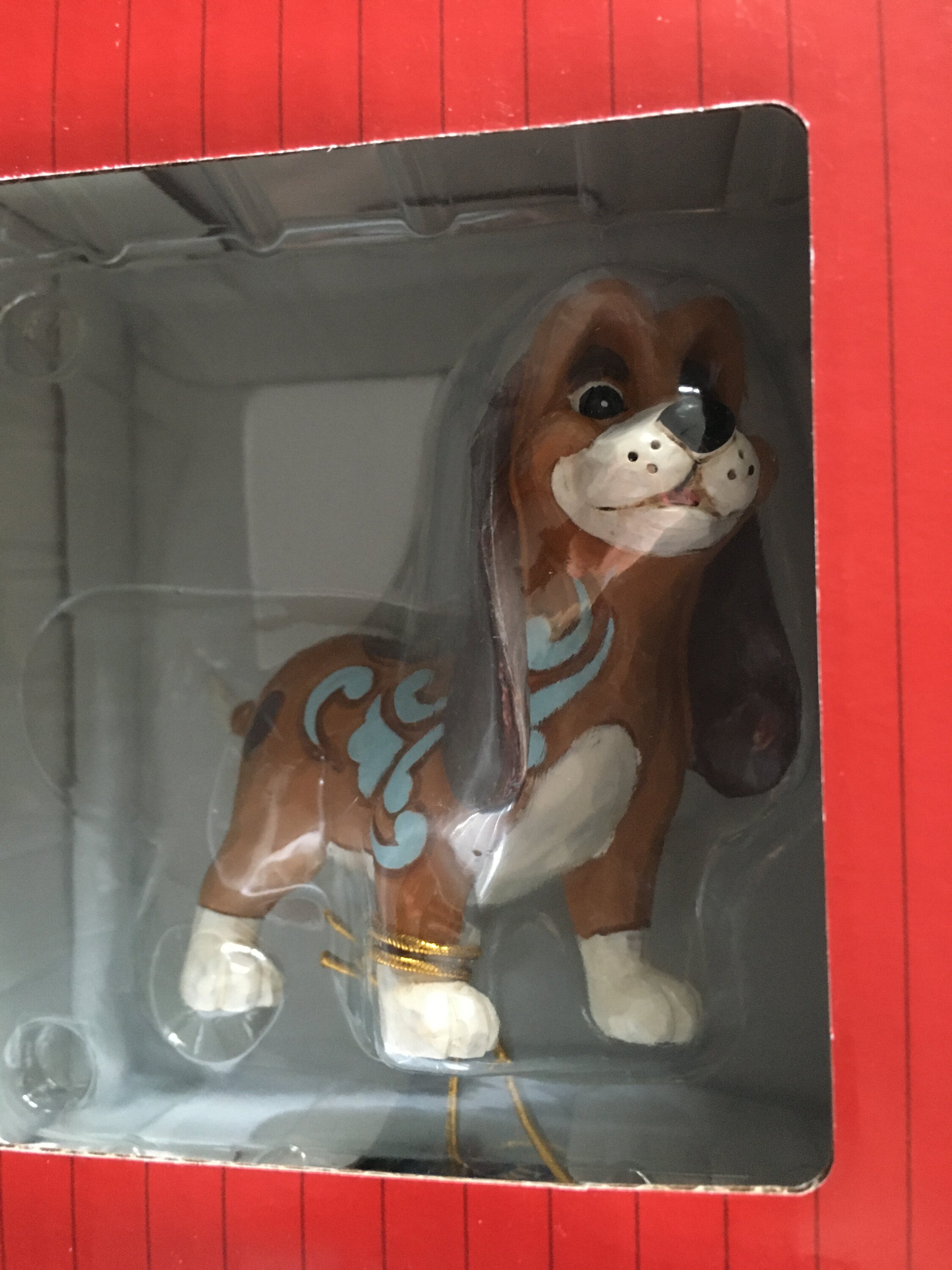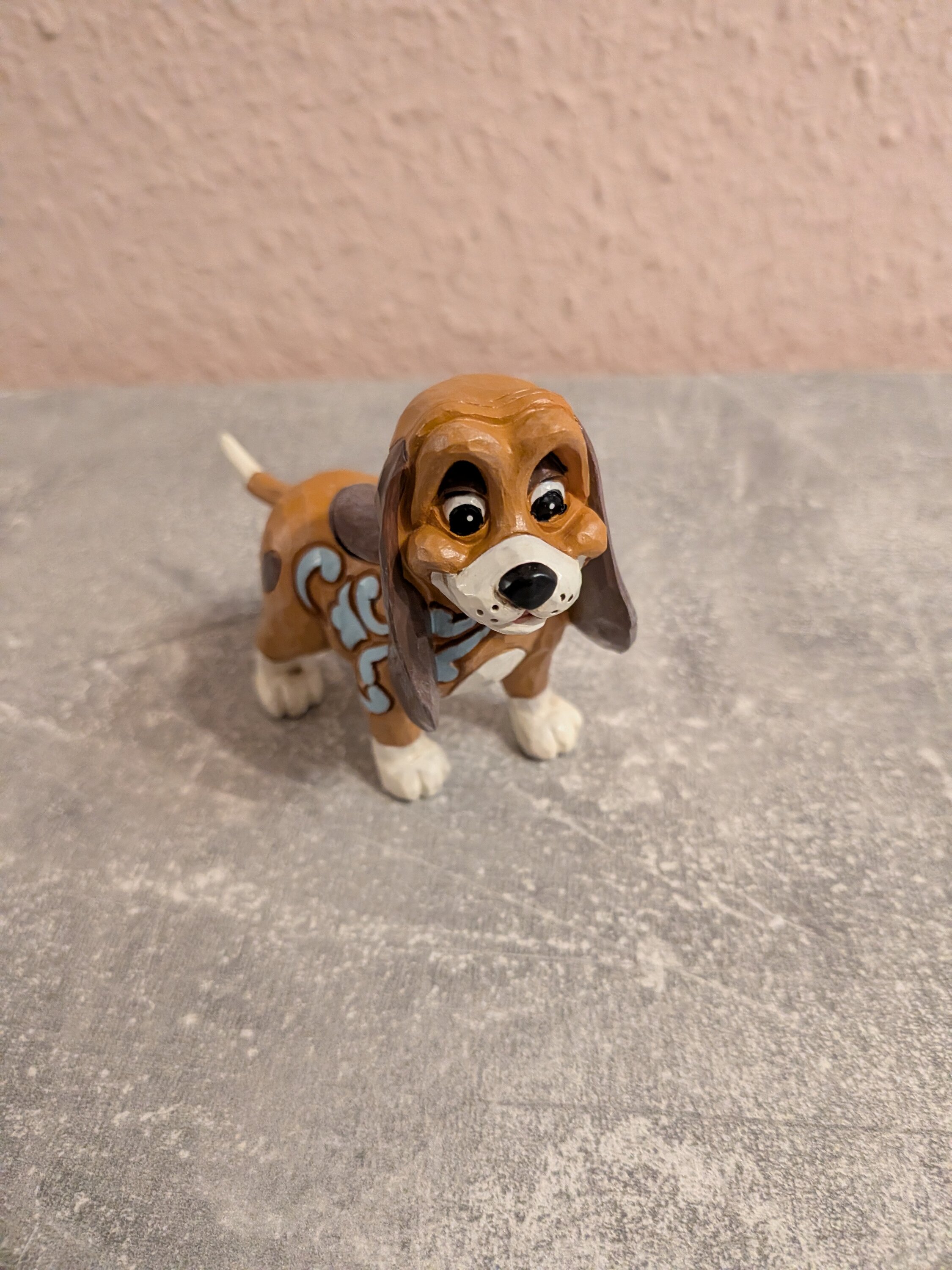 This darling Jim Shore miniature features Copper, the hound, with intricate rosemaling patterns and a heartfelt expression. He's likely on the lookout for his pal, the Fox, ready for their next adventure together in the woods.