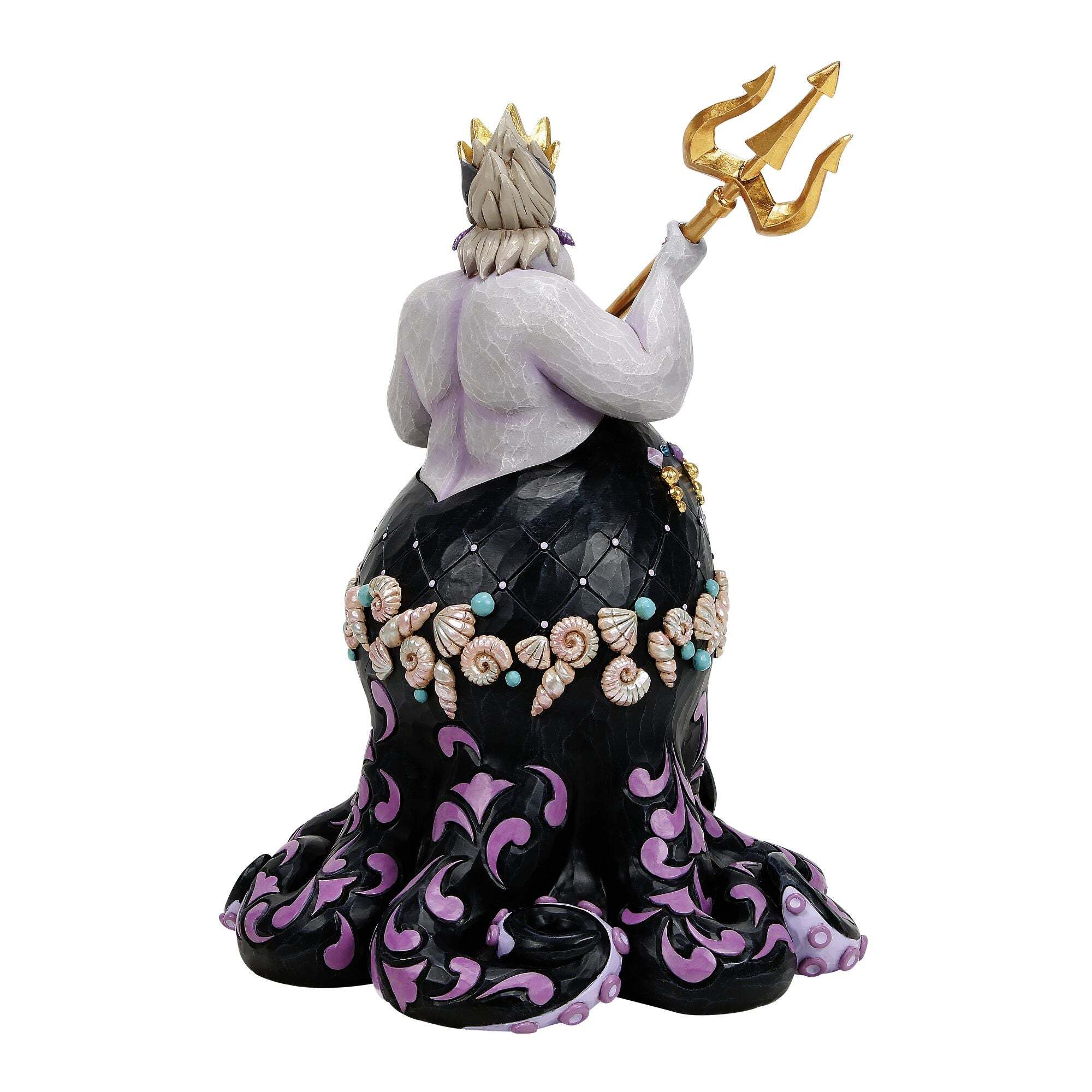 Powerful and theatrical, Ursula is magnificently reimagined in this deluxe Disney Traditions sculpture. Holding her golden trident, the Sea Witch stands with commanding presence, adorned with intricate patterns, rich textures, and elegant decorative details inspired by folk art. A bold and dramatic centerpiece that perfectly captures the villain’s larger-than-life personality.