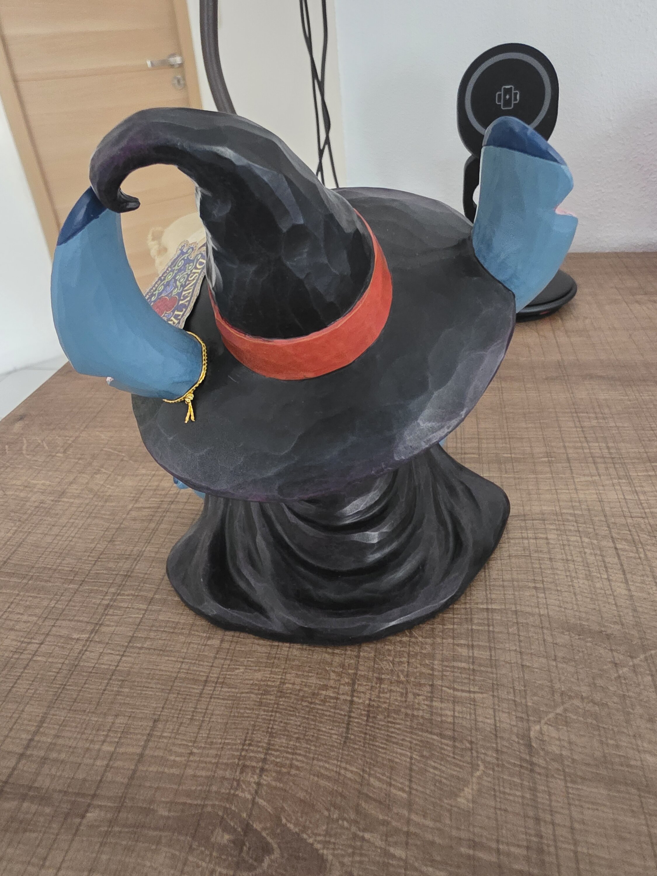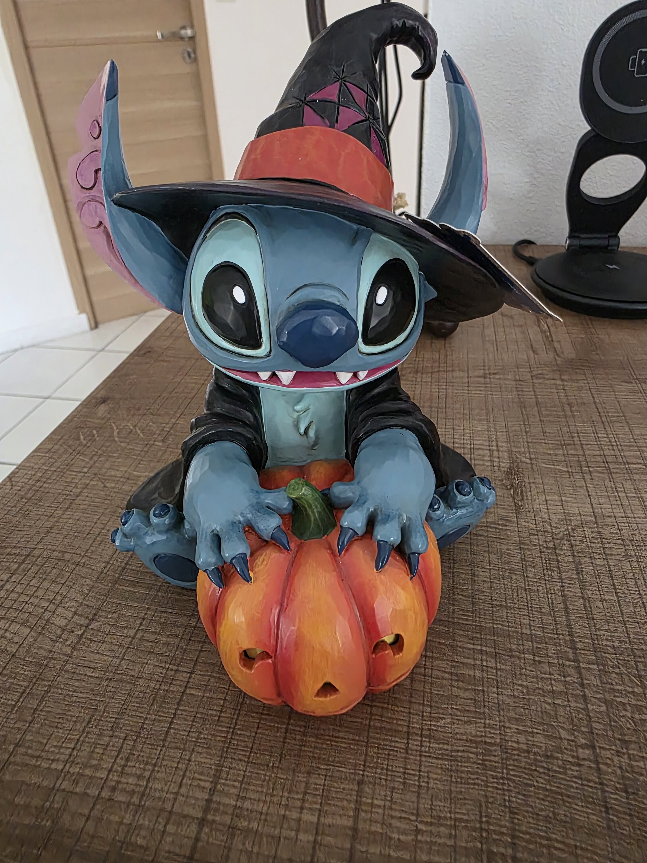 Playful and mischievous, Stitch embraces the spooky spirit of Halloween in this delightful Disney Traditions sculpture. Dressed as a little witch, he sits beside a glowing jack-o’-lantern, bringing a touch of magic and fun to the scene. With its integrated LED light, this charming piece creates a warm Halloween ambiance while perfectly capturing Stitch’s irresistible personality.