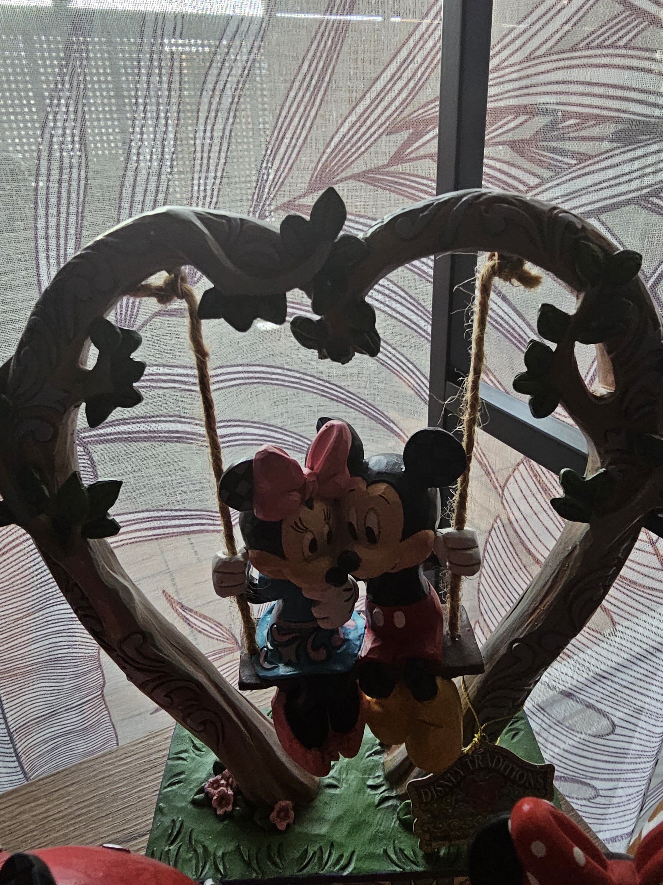 Beautiful figurine that makes it more than realistic with the Mickey and Minnie swing that actually swings. The details are worked: tree branches, leaves... the branches form a heart which makes it sublime and suitable for a gift to a person you love. I recommend
