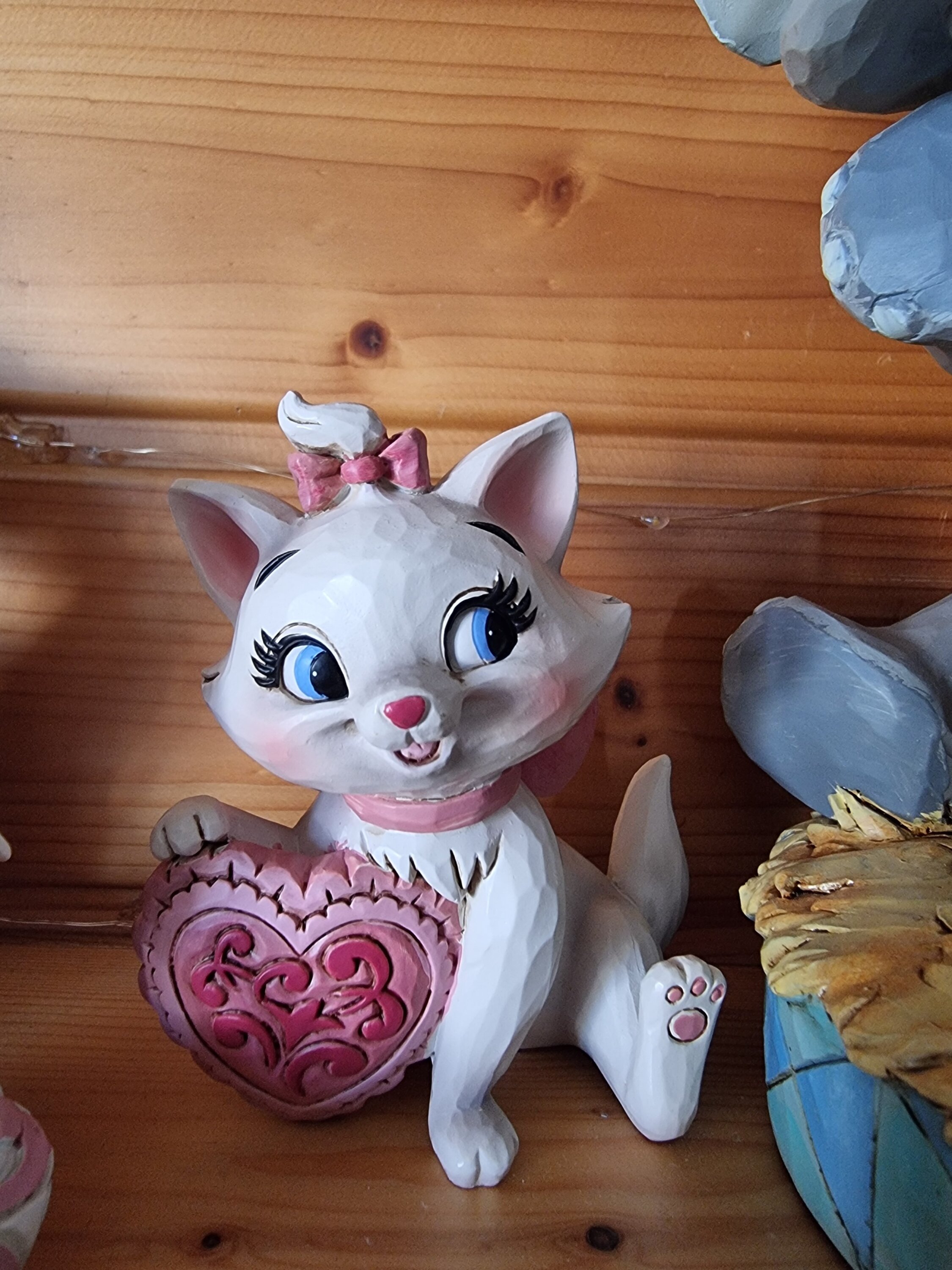 The Walt Disney classic, The Aristocats, followed three kittens and their mother through the Paris countryside after they were abducted from their home by a butler. Mary, the only girl in the gang holds a pink heart in this adorable Jim Shore figurine