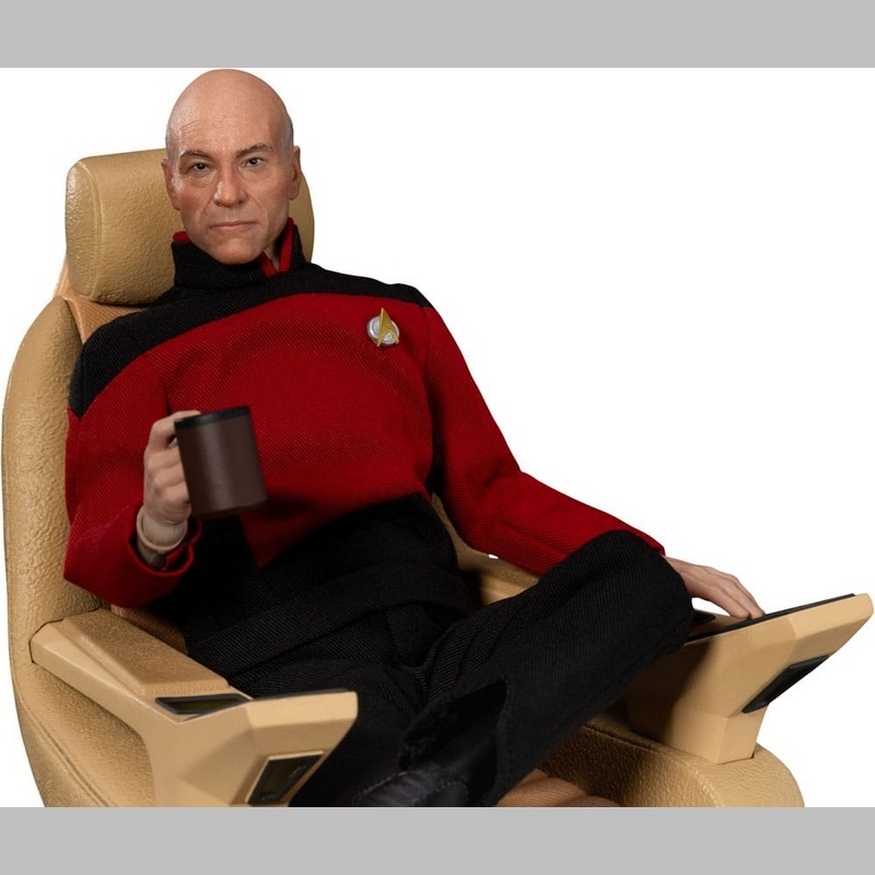 Expertly sculpted with meticulous attention to detail, Picard features his signature Starfleet uniform, command insignia, and distinguished posture. The high-quality paintwork highlights every texture, from the folds of his uniform to the subtle details of his facial expression, perfectly reflecting his on-screen appearance.