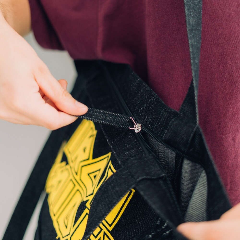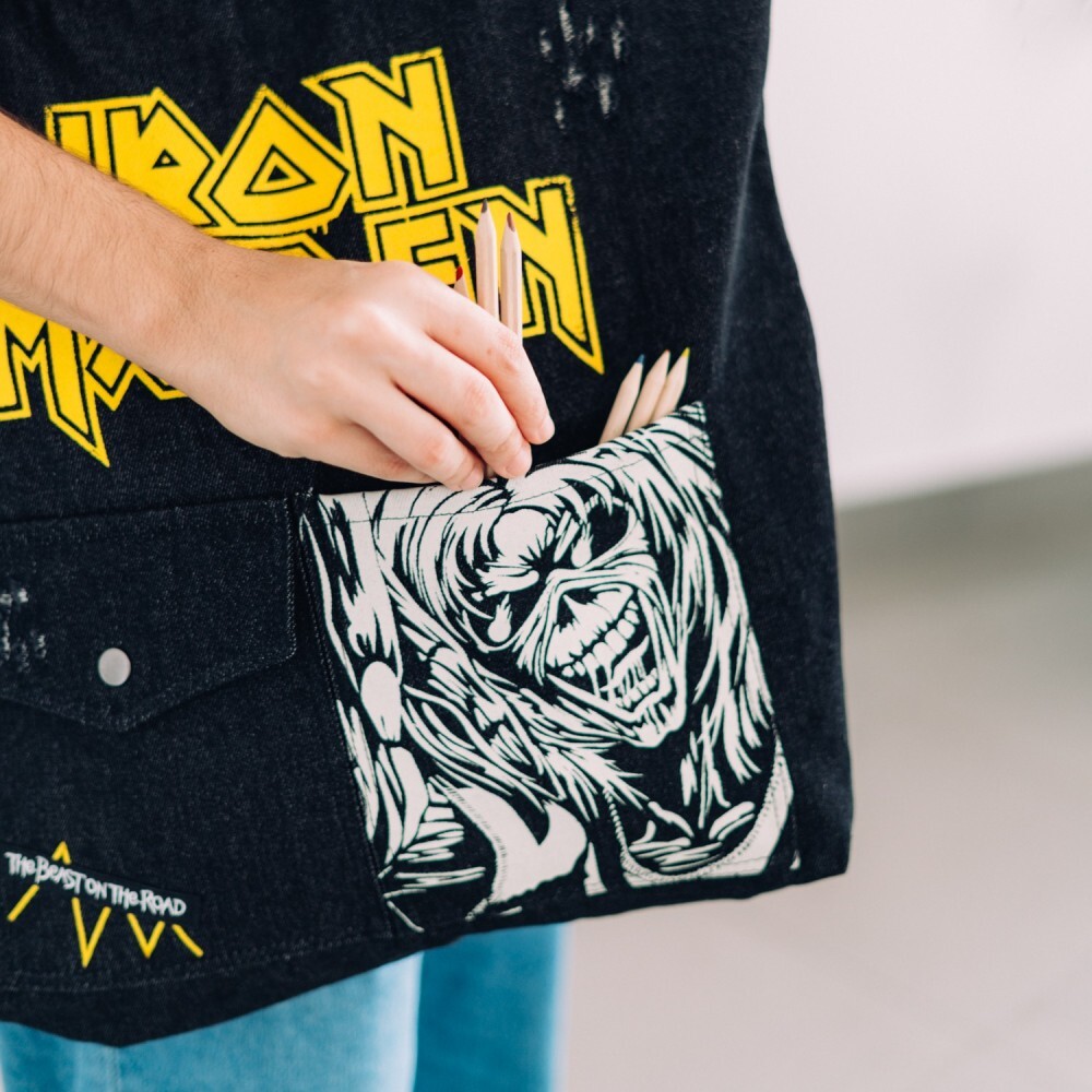 Rock your style with this Premium Iron Maiden tote bag! Made from 100% cotton, it features two handles, a zipper closure, a small interior pocket, and two exterior pockets, one secured with a metal clasp. Decorated with a patch and screen-printed designs inspired by the legendary band, it’s perfect for fans who want both style and functionality.