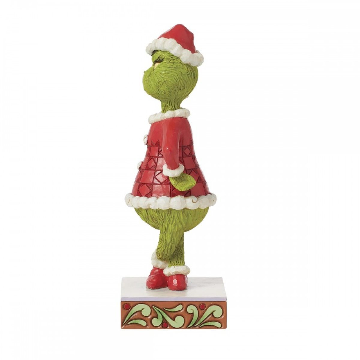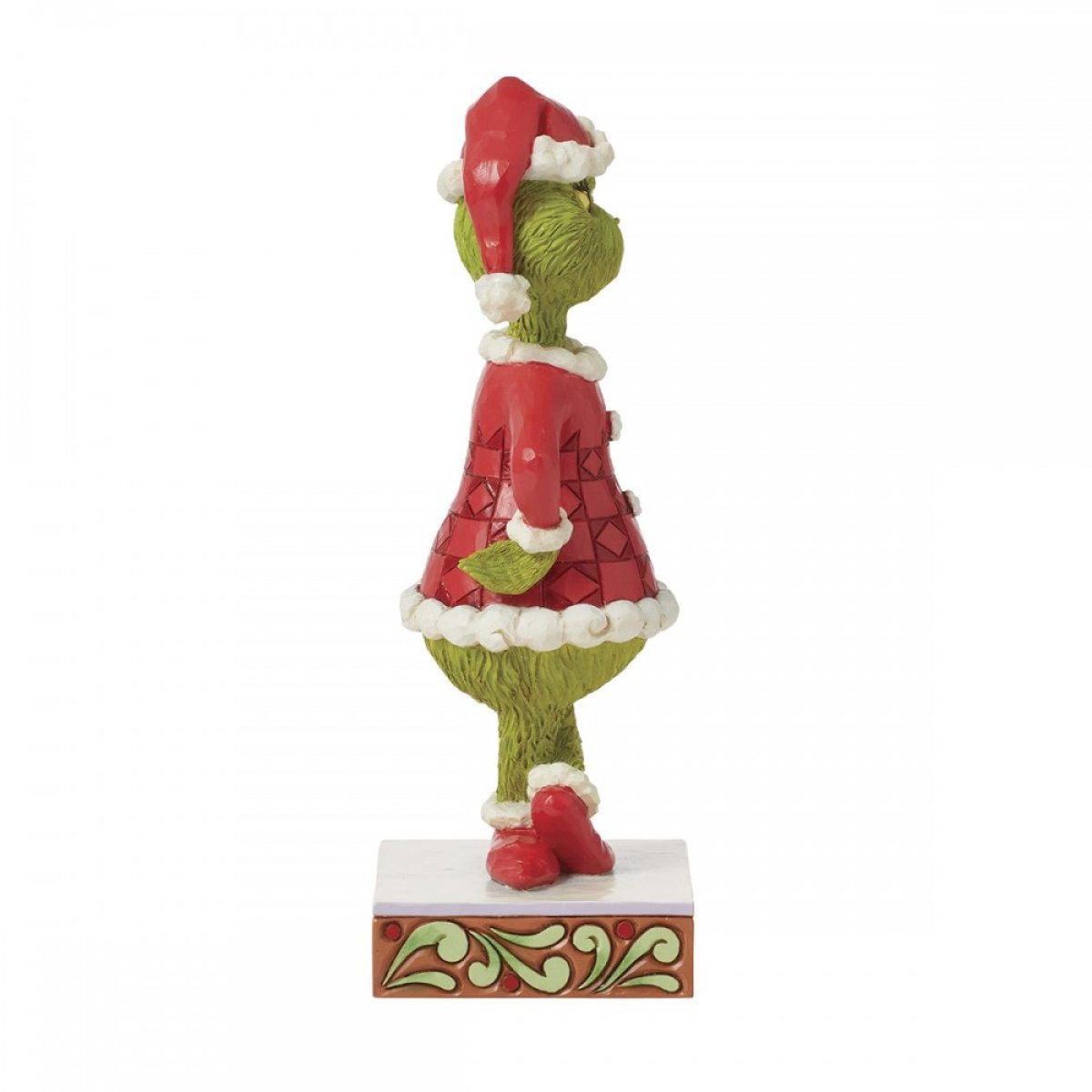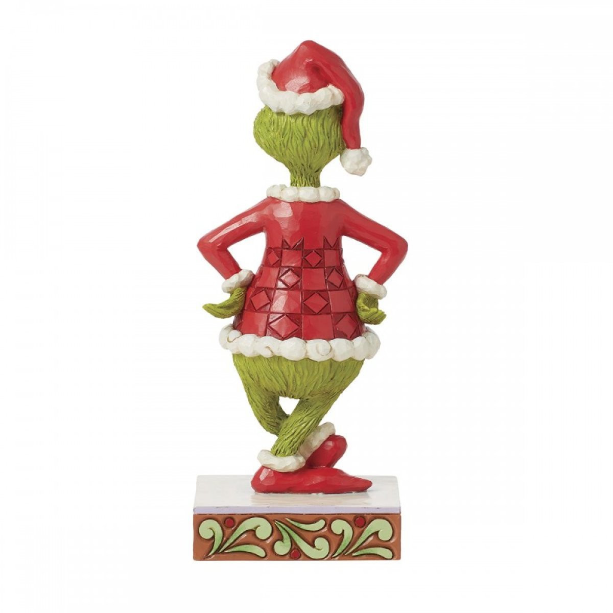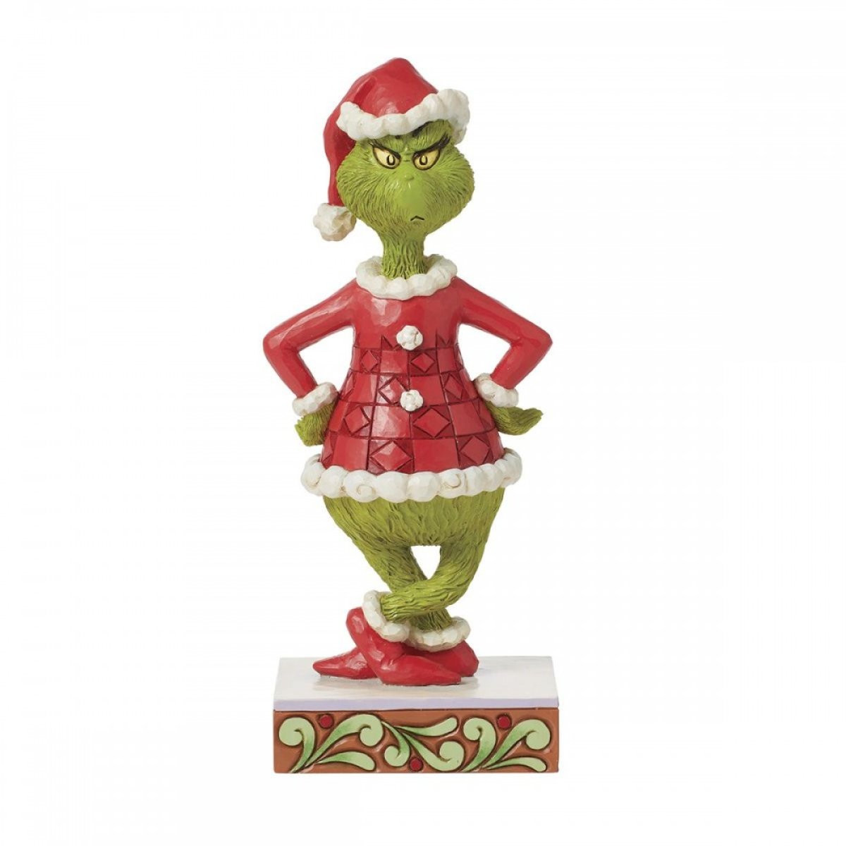 This Jim Shore figurine depicts the Grinch with his hands on his hips and frowning. Dressed as Santa, the Grinch plots to steal the Christmas spirit with style and irony! From the Grinch Collection, designed by award-winning artist and sculptor Jim Shore. Each figurine is hand painted and slight color variations are expected, making each piece unique. Packaged in a gift box. These items are not children's toys. Intended for adults only.