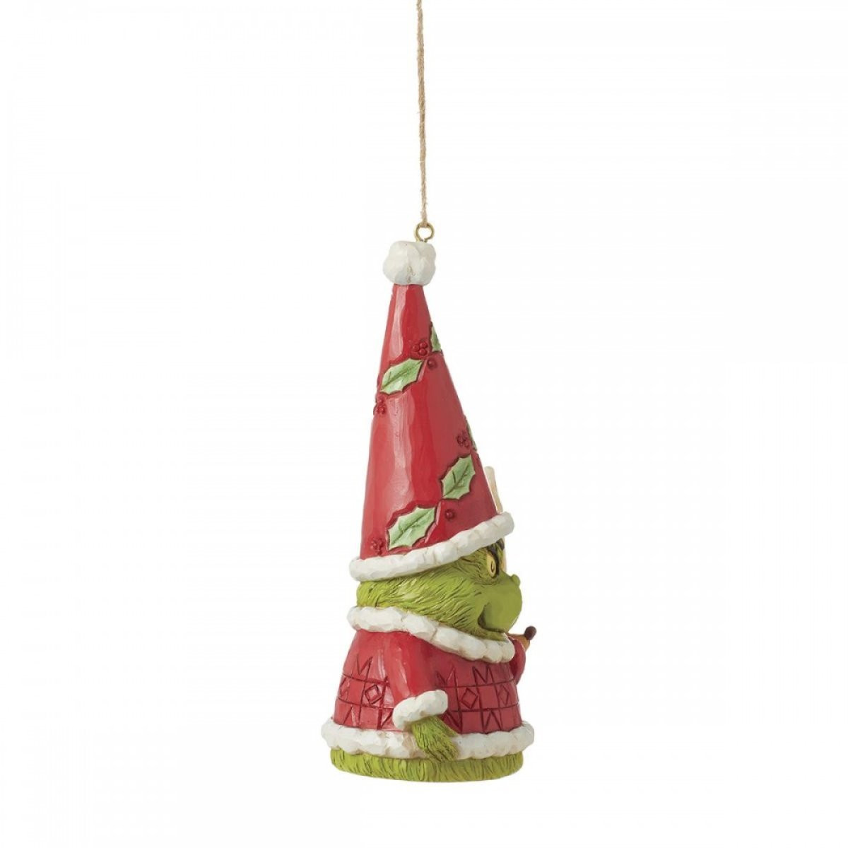 This Gnome pendant from Jim Shore's Grinch is like no other! Inspired by the Grinch, this pendant light features the green grinch's signature smirk and yellow eyes. Grinch wears a mistletoe-patterned hat and a big heart next to his faithful dog, Max. From the Grinch Collection, designed by award-winning artist and sculptor Jim Shore. Each figurine is hand painted and slight color variations are expected, making each piece unique. Packaged in a gift box. These items are not children's toys. Intended for adults only.
